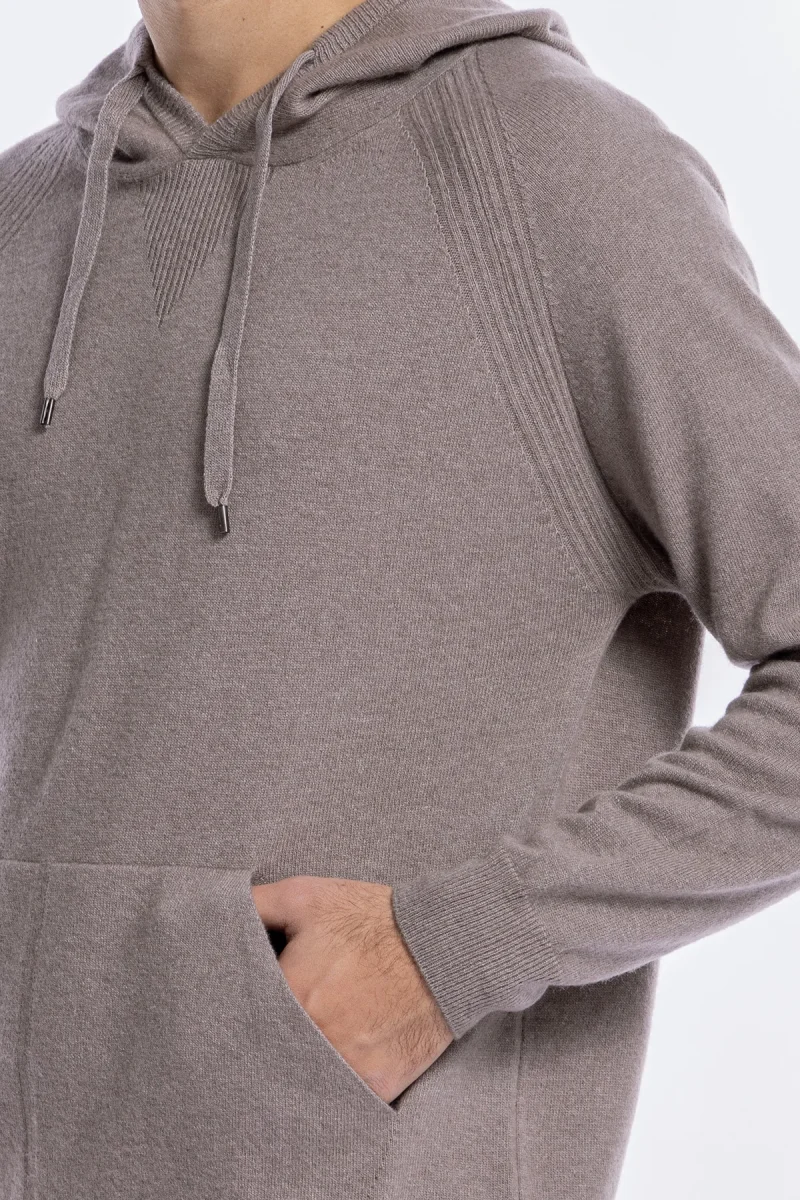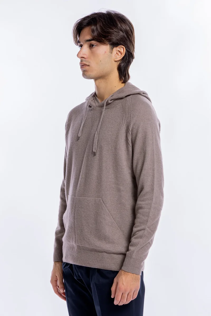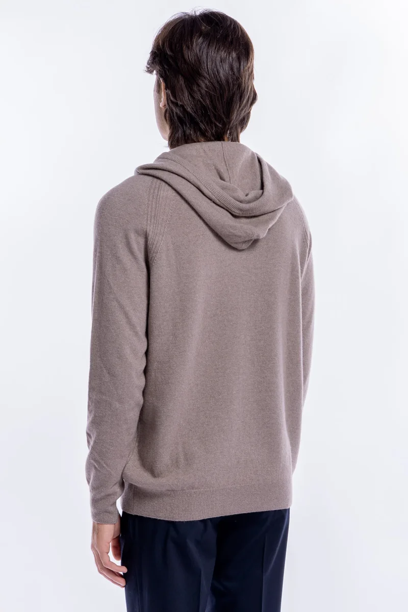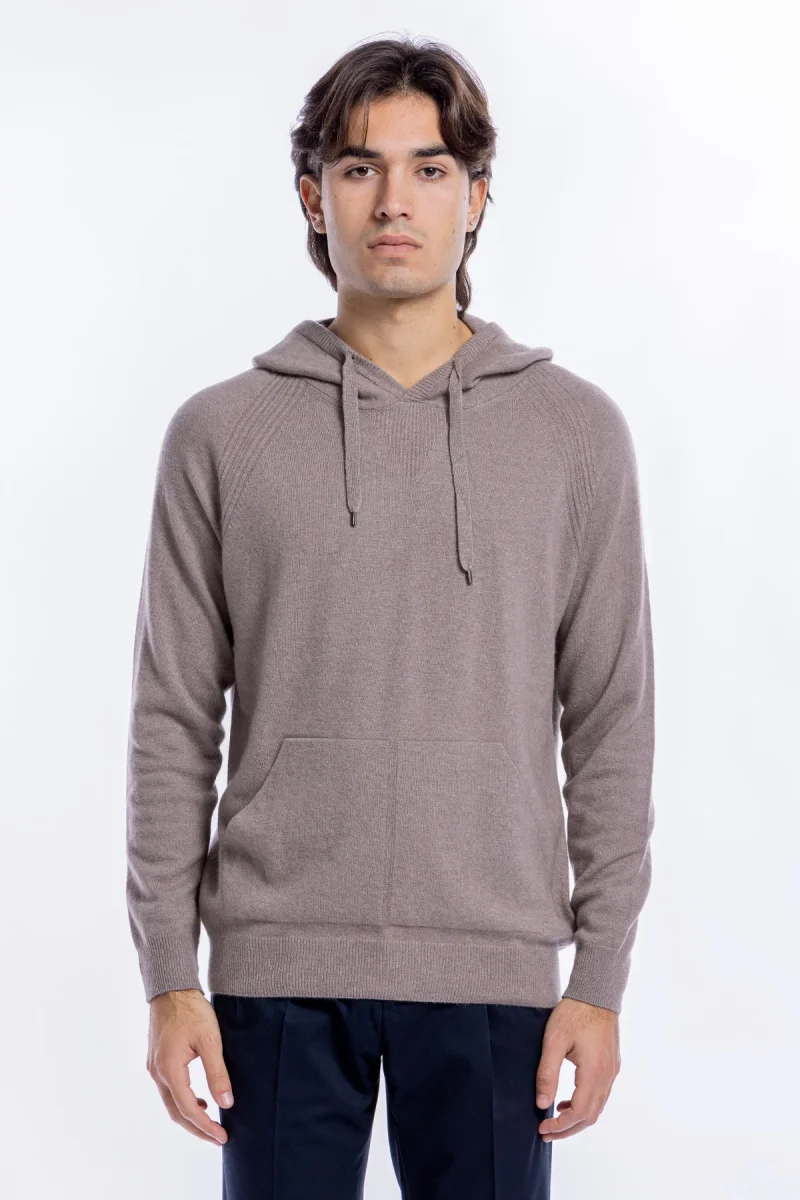 FELPA DA UOMO BEIGE IN LANA E CASHMERE CON CAPPUCCIO E TASCHE SUL DAVANTI