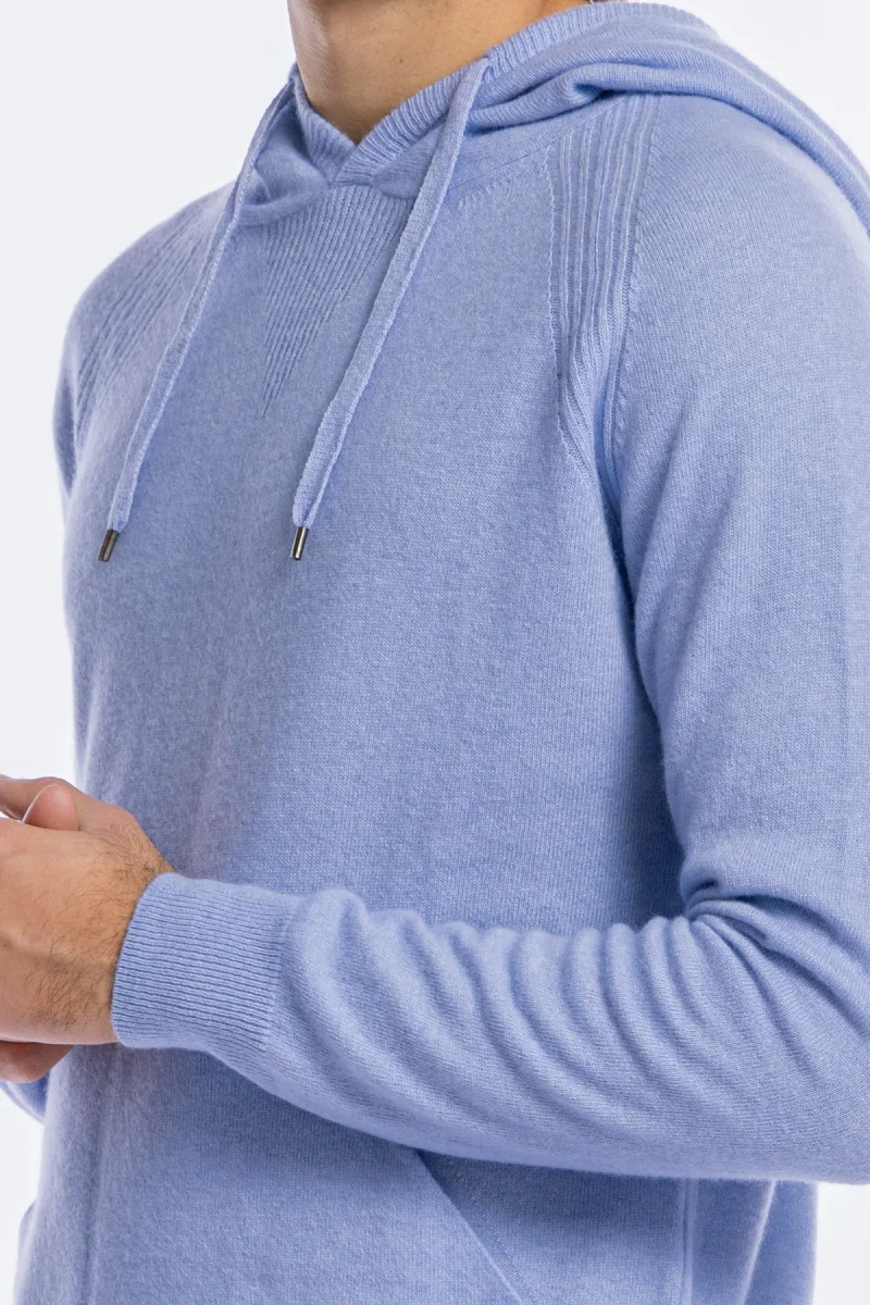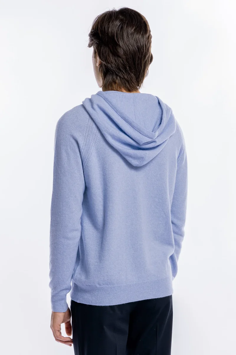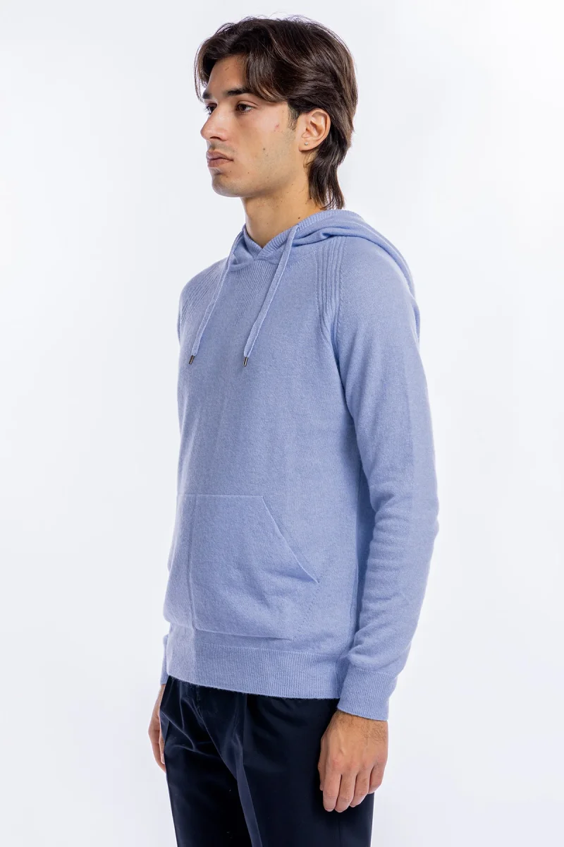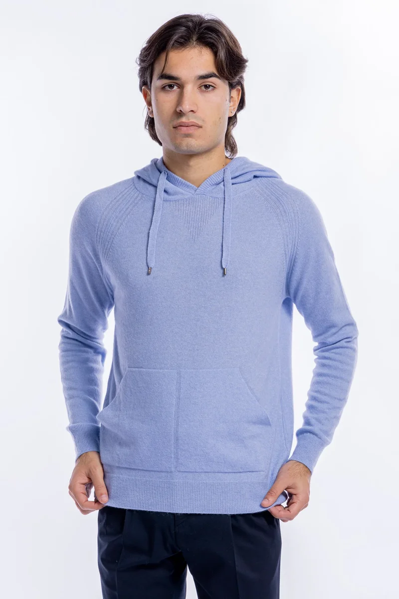 FELPA DA UOMO CELESTE IN LANA E CASHMERE CON CAPPUCCIO E TASCHE SUL DAVANTI