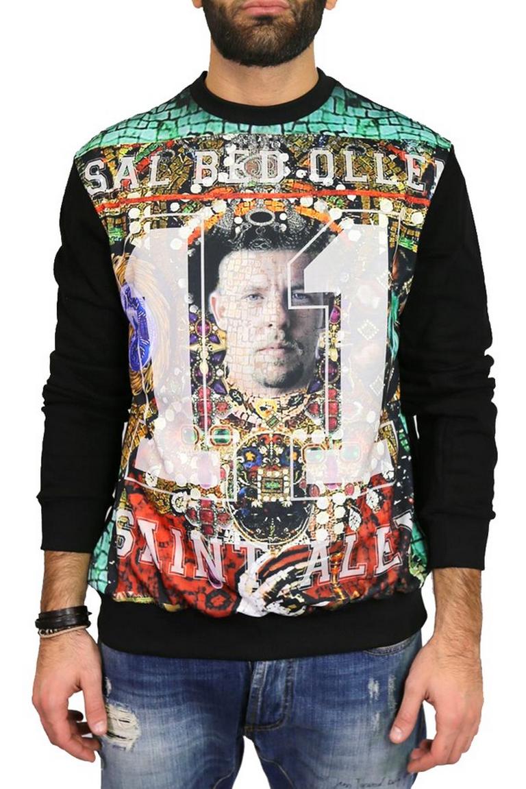 Felpa da uomo casual invernale modello girocollo in cotone con stampa multicolor in raso sul davanti