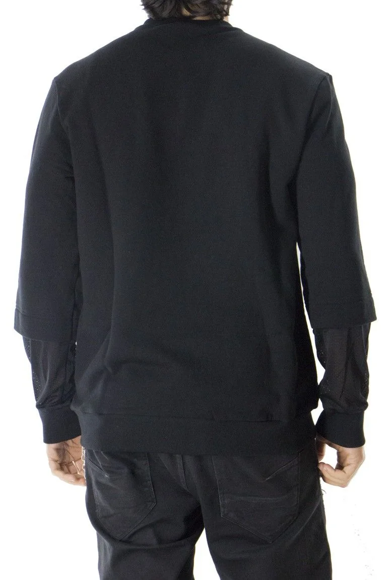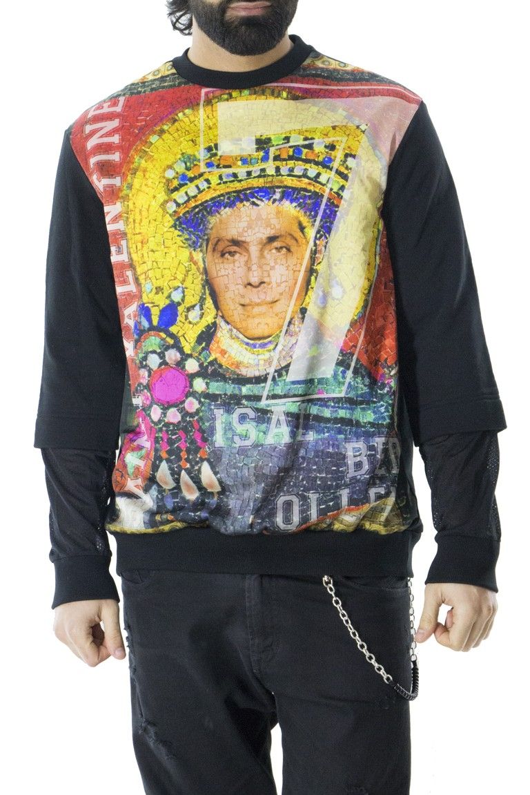 Felpa uomo girocollo, con stampa in raso sul davanti e maniche con fondo traforato.