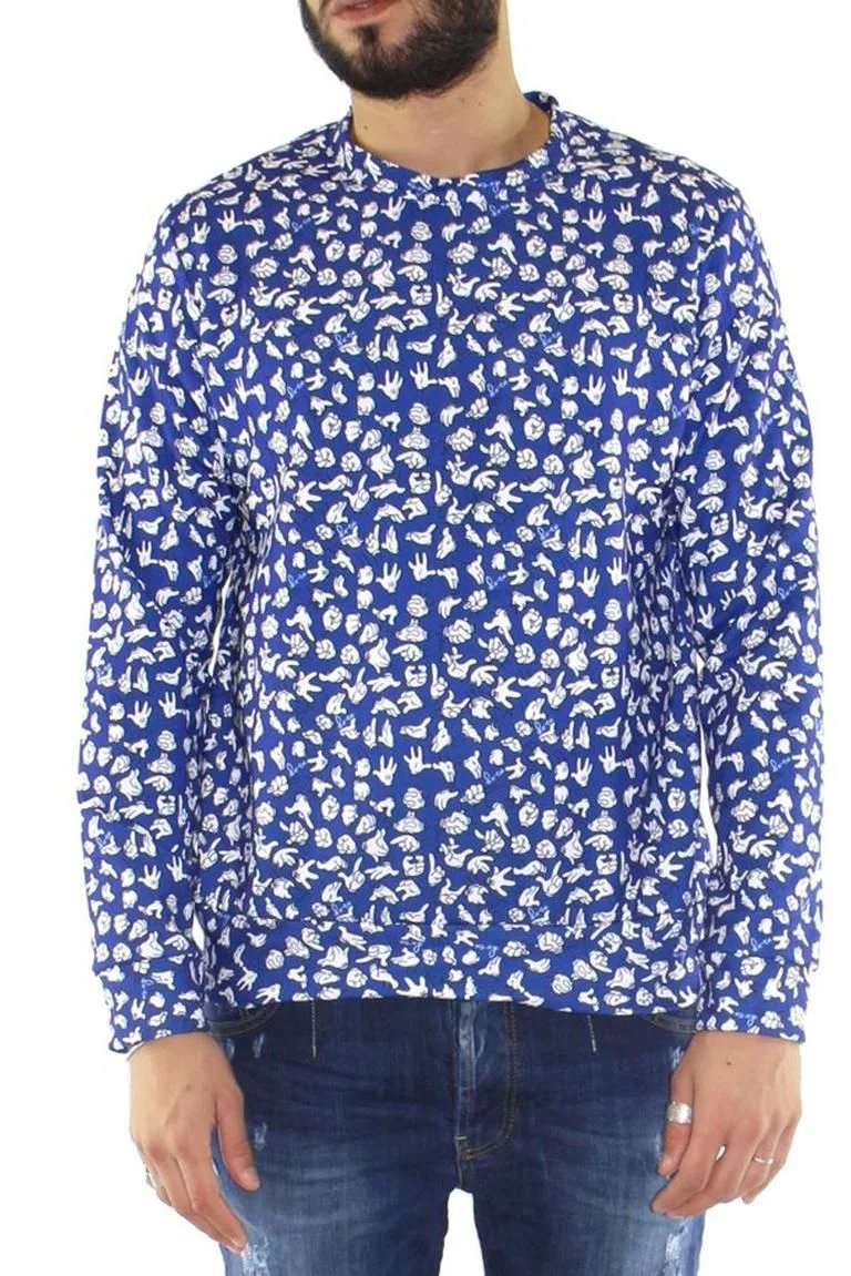 Felpa uomo girocollo, fondo blu fantasia mani Mickey Mouse.