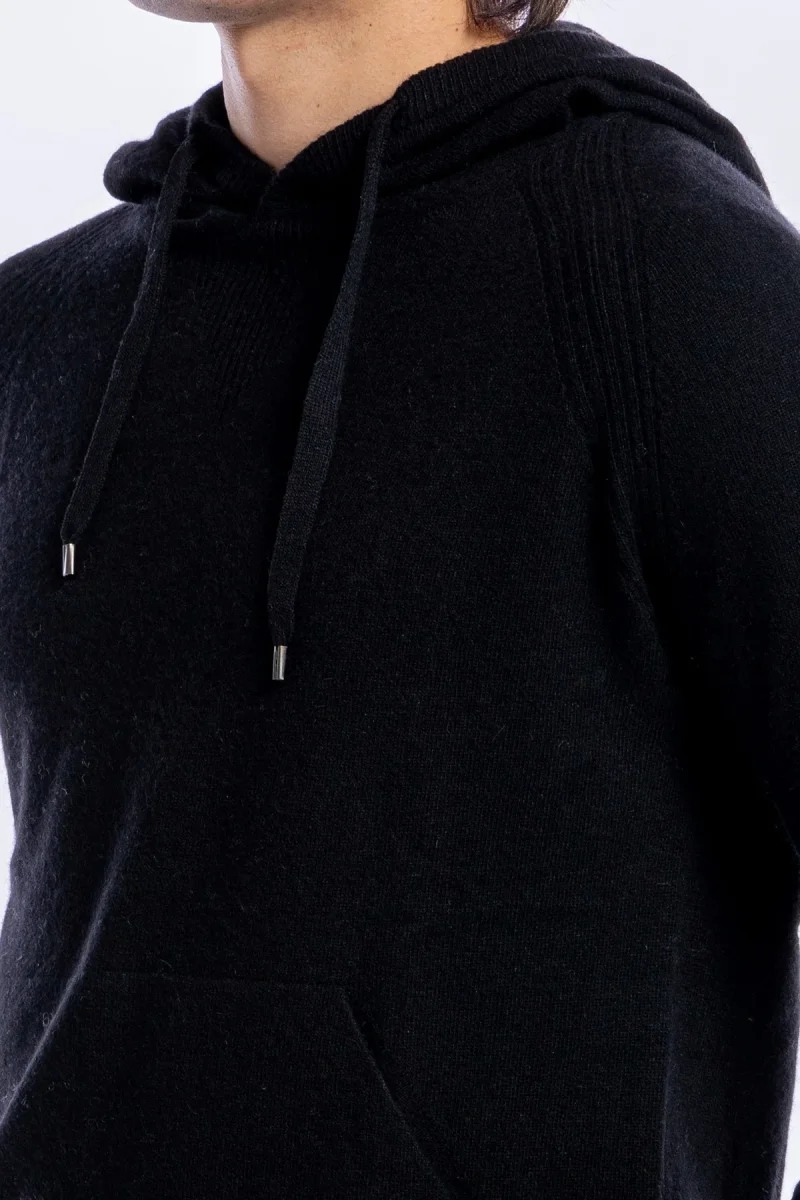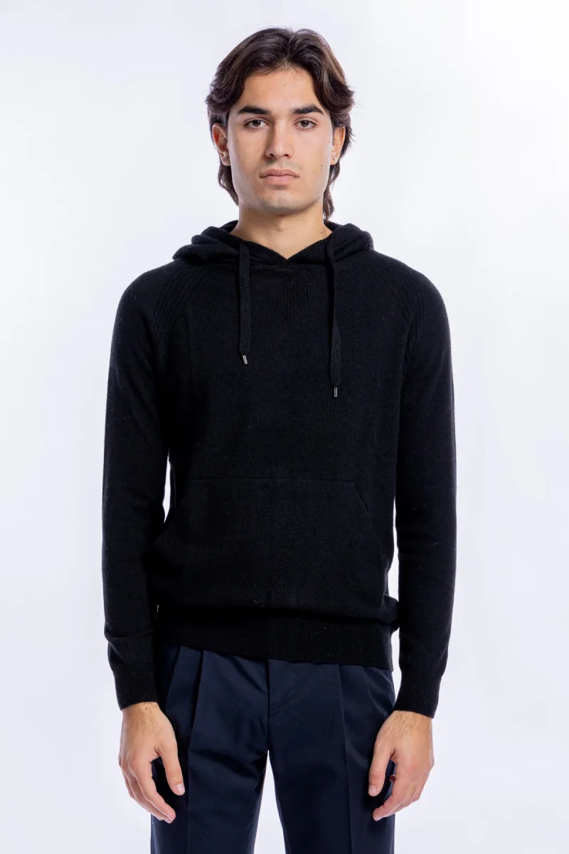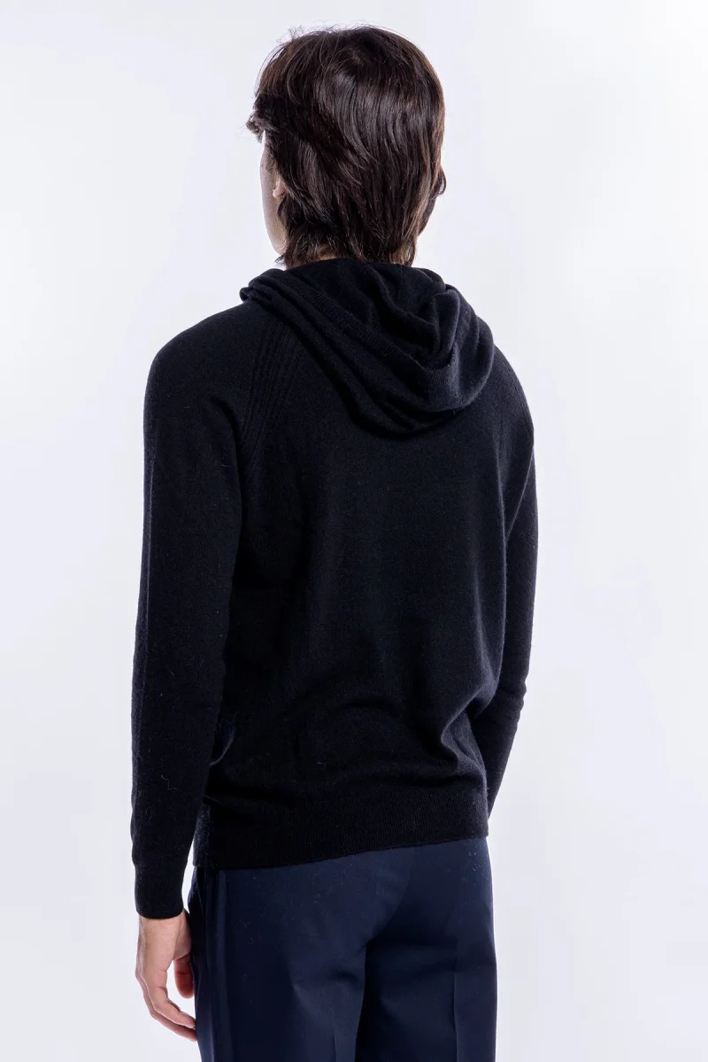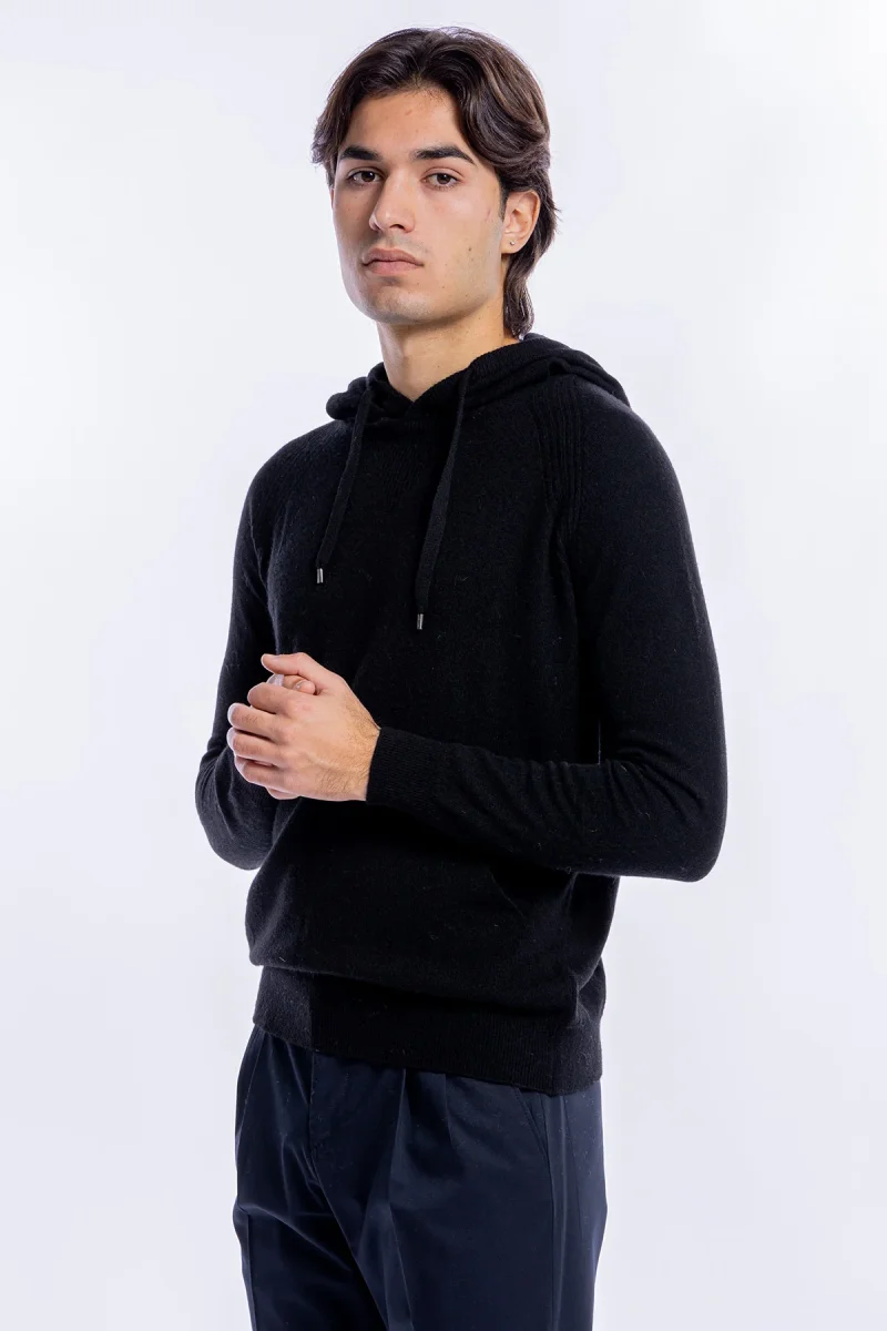 FELPA DA UOMO NERA IN LANA E CASHMERE CON CAPPUCCIO E TASCHE SUL DAVANTI