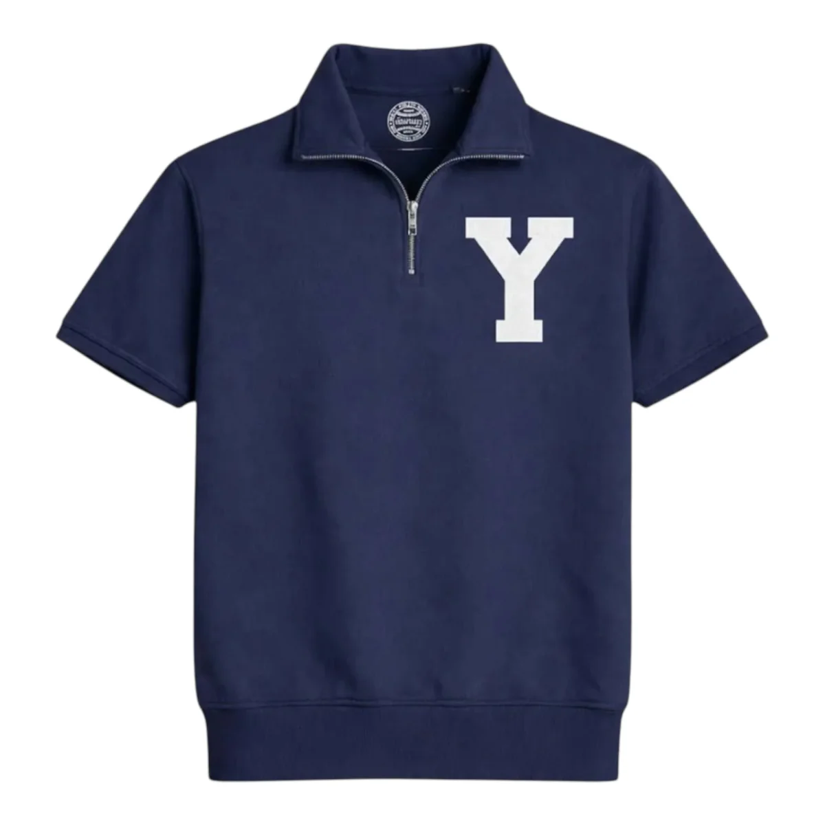 Felpa mezza zip a maniche corte dallo stile sportivo e contemporaneo, perfetta per un look casual dal carattere deciso. Realizzata in morbido cotone, garantisce comfort e vestibilità regolare, ideale per la stagione primaverile ed estiva.!l design è arricchito da colletto alto con chiusura a zip frontale, che permette di modulare l’apertura per uno stile più dinamico. Il maxi logo “Y” applicato sul petto dona un tocco college e richiama l’estetica varsity americana. Fondo rifinito a costine per una migliore vestibilita e struttura del capo.