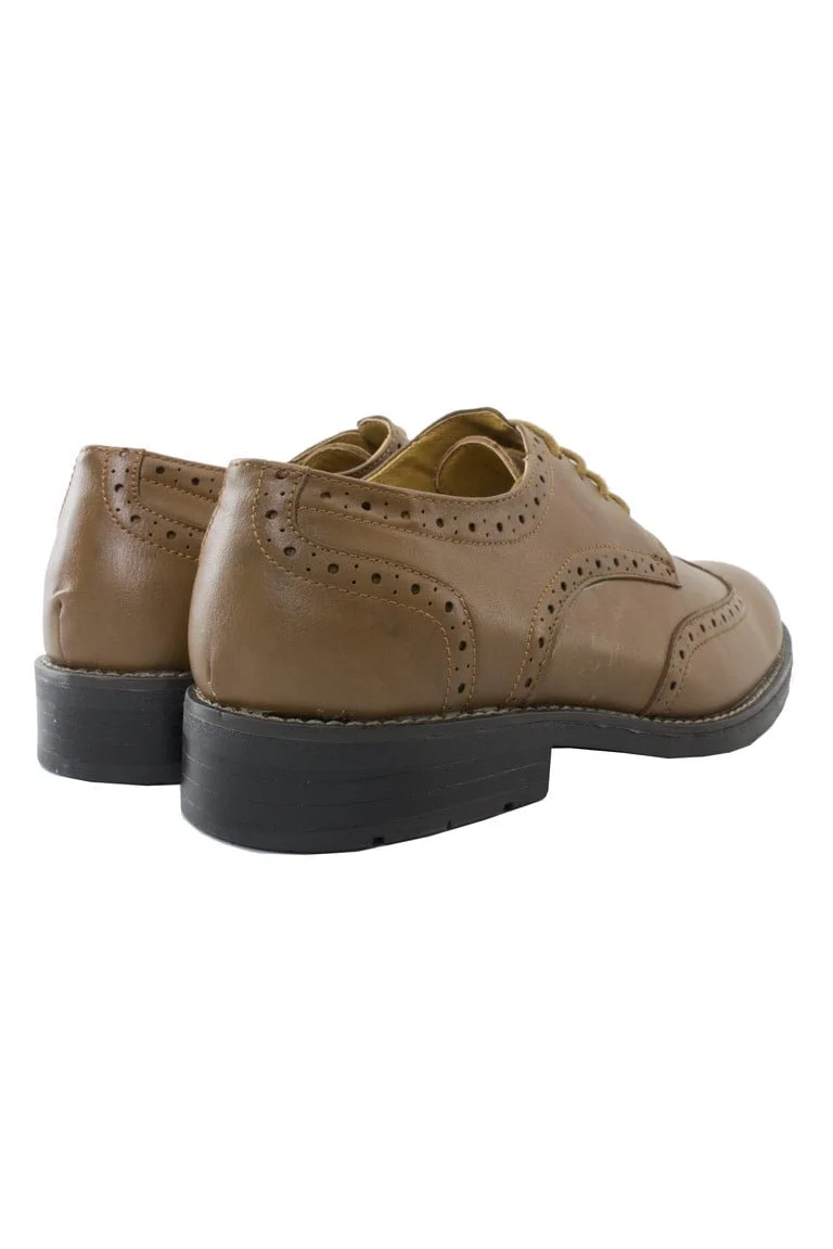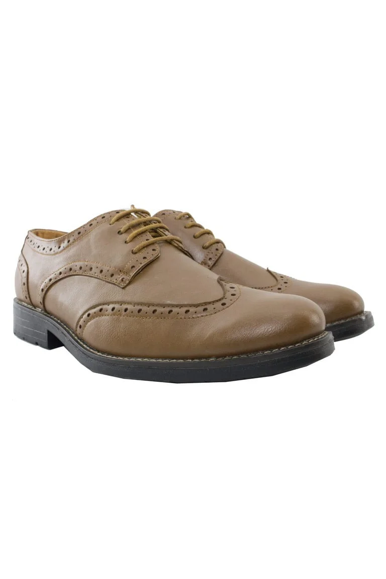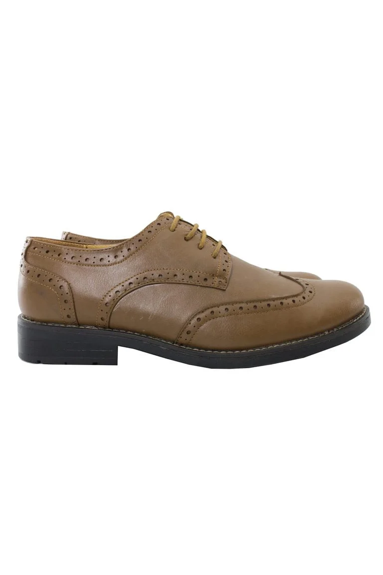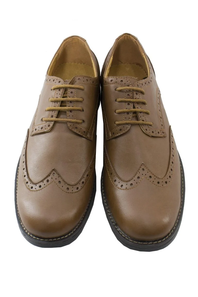 Francesine uomo color cuoio eleganti classiche pelle matta per cerimonia matrimonio oo evento casual modello stile inglese con suola in gomma nera e cuoio lacci e cuciture cuoio tono su tono.