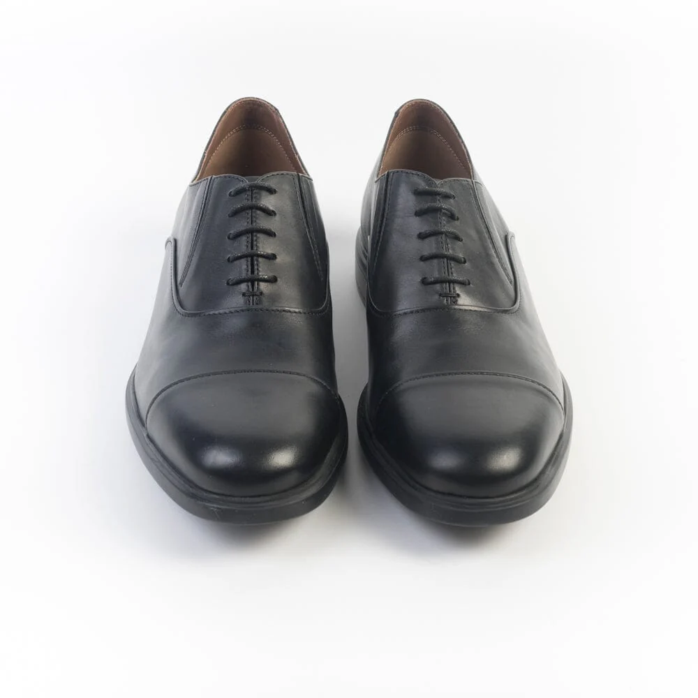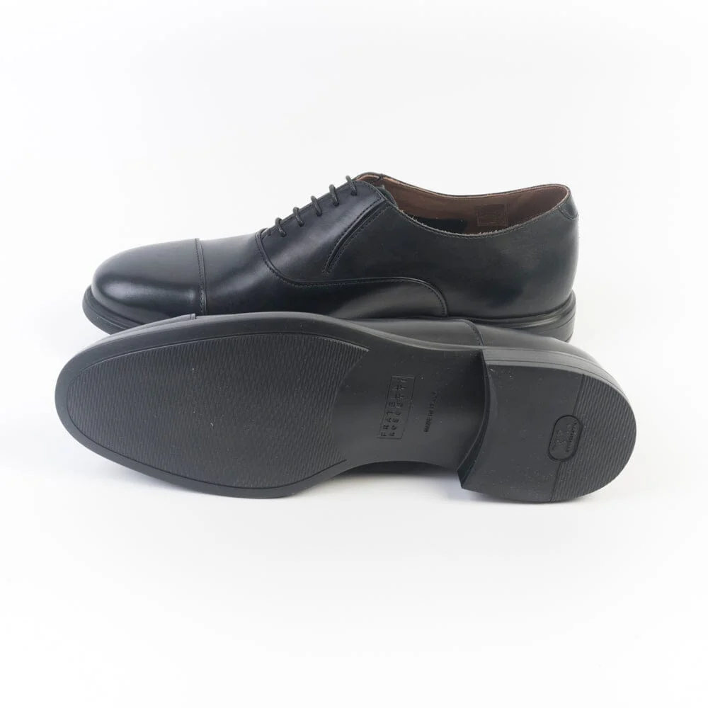 Scarpa francesina di Fratelli Rossetti a cinque fori, realizzata in morbidissima pelle di colore nero, con puntale. Interno Sfoderato. Punta affusolata. Inserimento di doppio elastico vicino all’allacciatura per una calzata estremamente comoda. Lacci in cotone cerato in nuance. Interno in pelle. Soletta interna estraibile. Suola in gomma extralight.