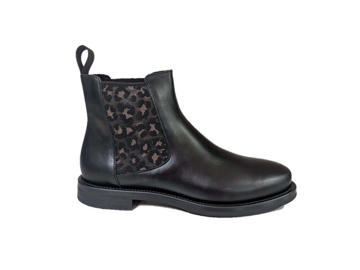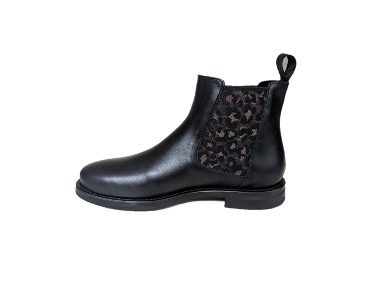 • Tomaia in morbida pelle con elastici bilaterali con trama leo