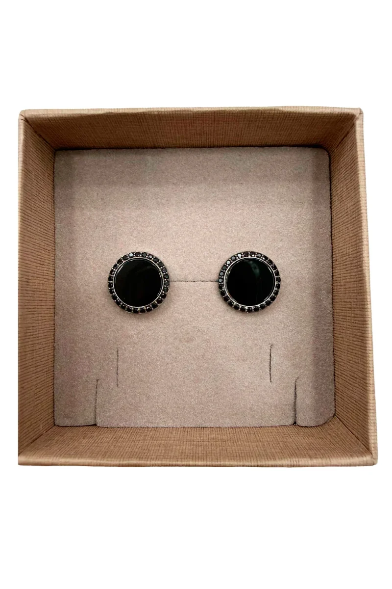 Gemelli da camicia in argento 925 lucido e madreperla nera forma tonda con zirconi incassati a mano