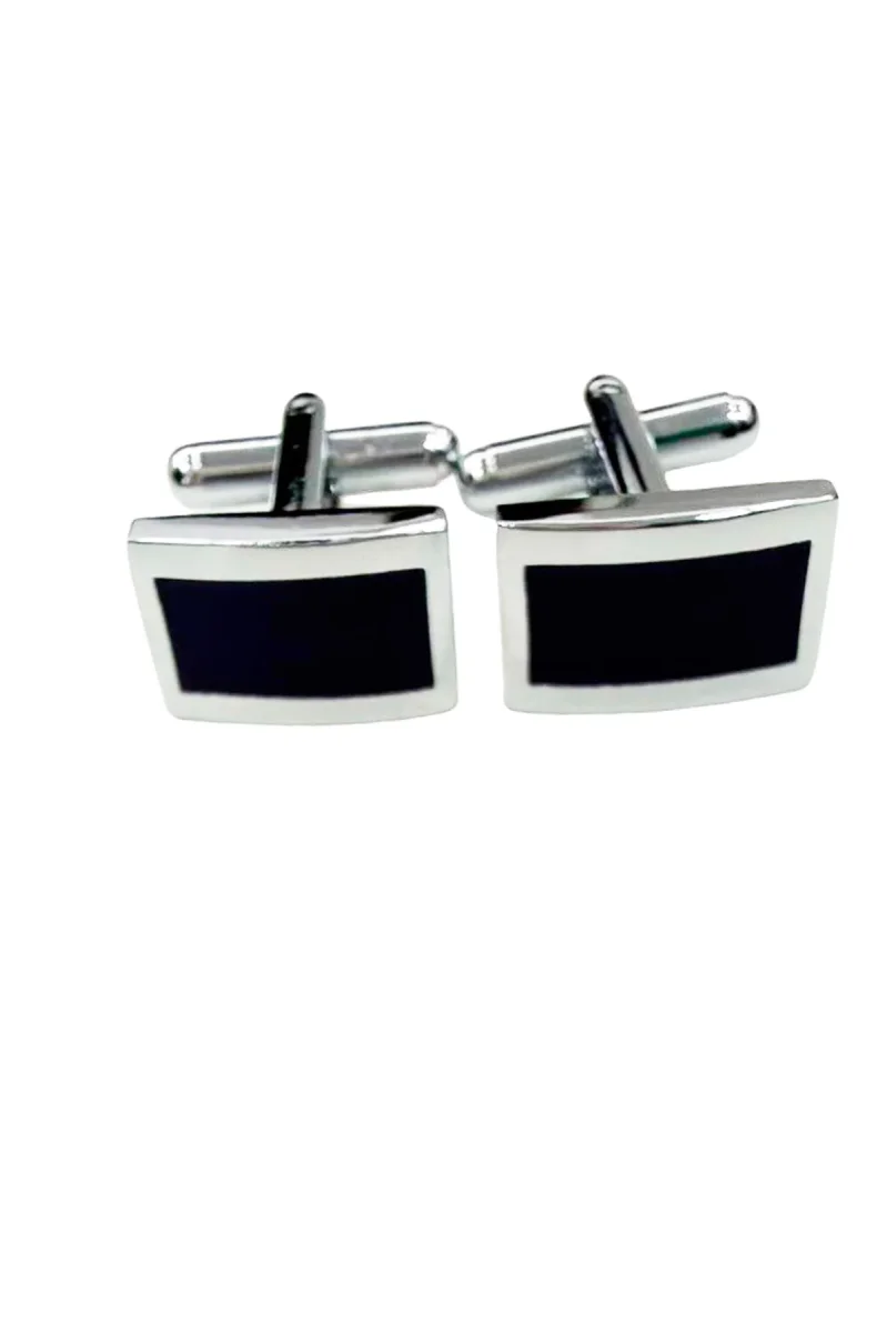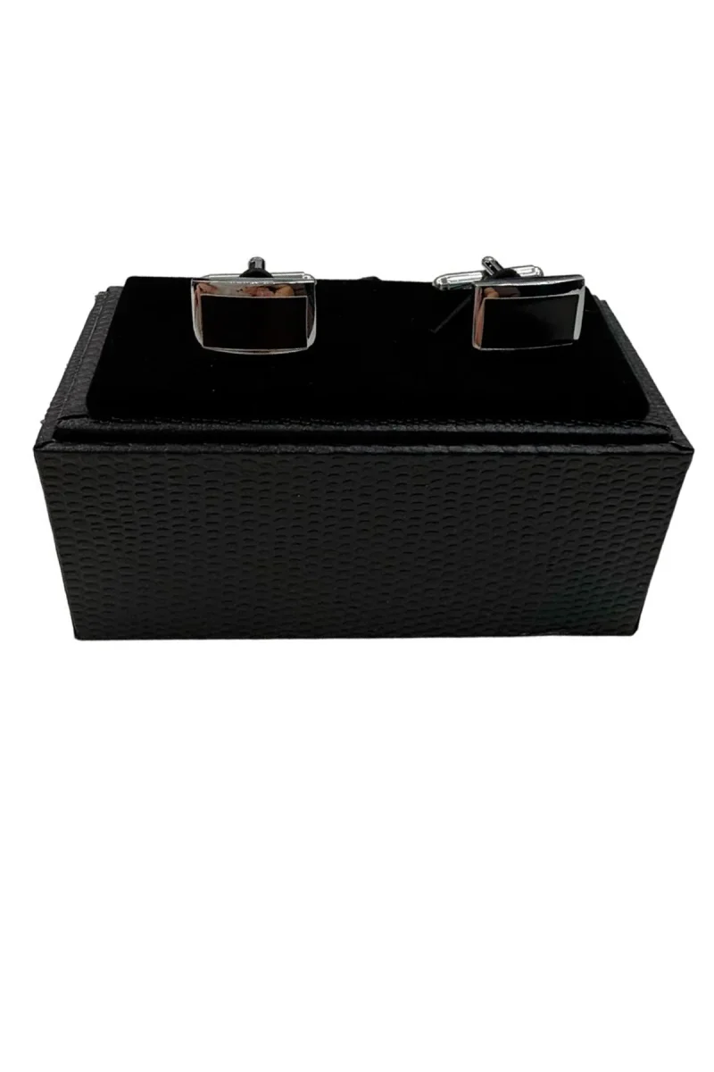 Gemelli da camicia neri rettangolari in vernice con base in acciaio silver