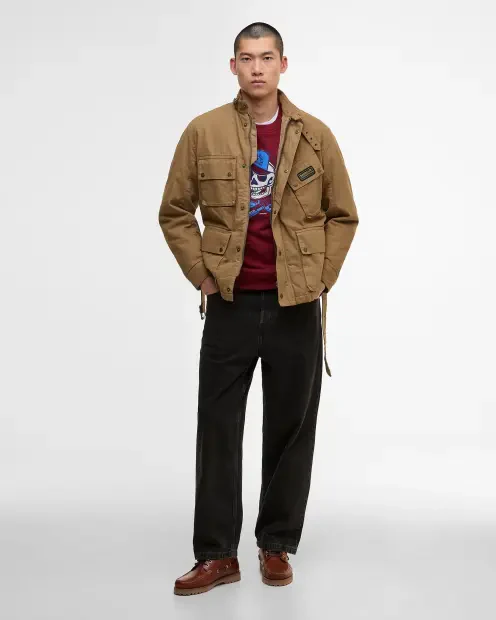Nel 1936, Duncan Barbour, membro della terza generazione della famiglia e appassionato motociclista, introdusse nella gamma del brand l’iconica giacca cerata A7. Realizzato in cotone cerato pesante e dotato di un collo a listino e tasche rompicatena, questo modello vantava un’elevata resistenza. Questa stagione, Barbour International ha deciso di reintrodurre l’A7 nella sua vasta selezione, presentandola però in una nuova veste: la giacca casual A7 di B.Intl, che si contraddistingue per la sua struttura in leggero cotone lavato. Dotata inoltre di un cinturino sotto il mento, questa versione rappresenta un vero e proprio must-have per chi vuole sfoggiare un capo dall’inconfondibile stile Barbour International.