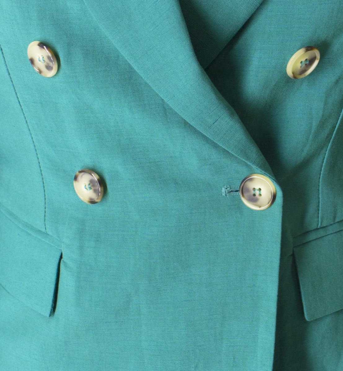 Giacca donna blazercorto sfoderato in lino modello doppiopetto bottone tartarugato e spalline tasche a pattina modello affiancato