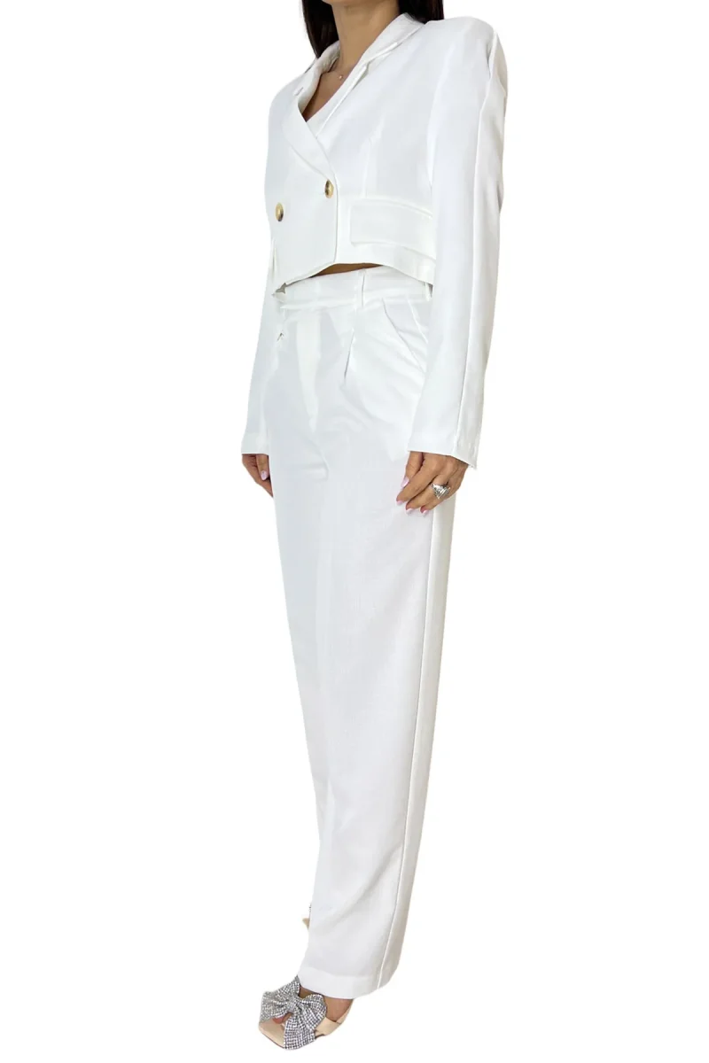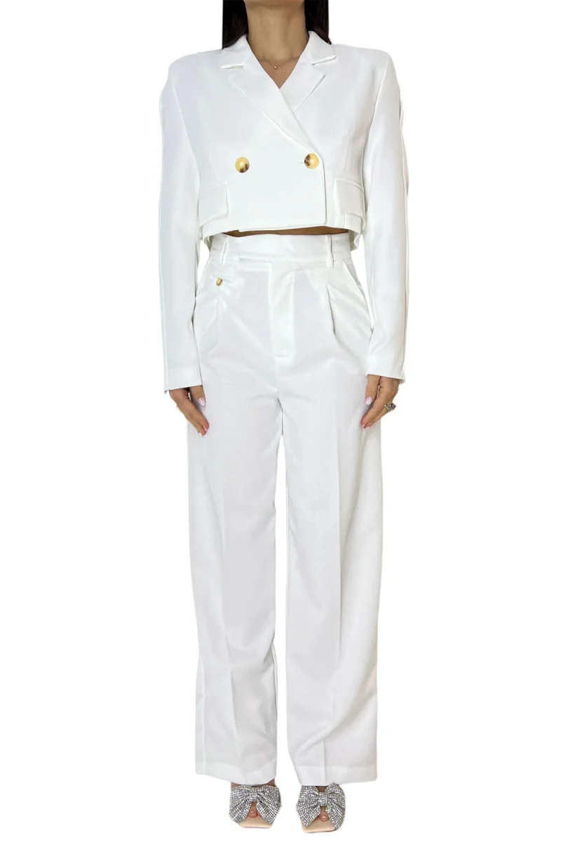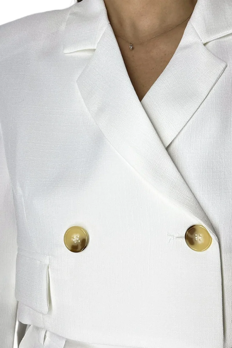 Giacca donna cort in cotone lino con spalline finta abbottonatura doppiopetto
