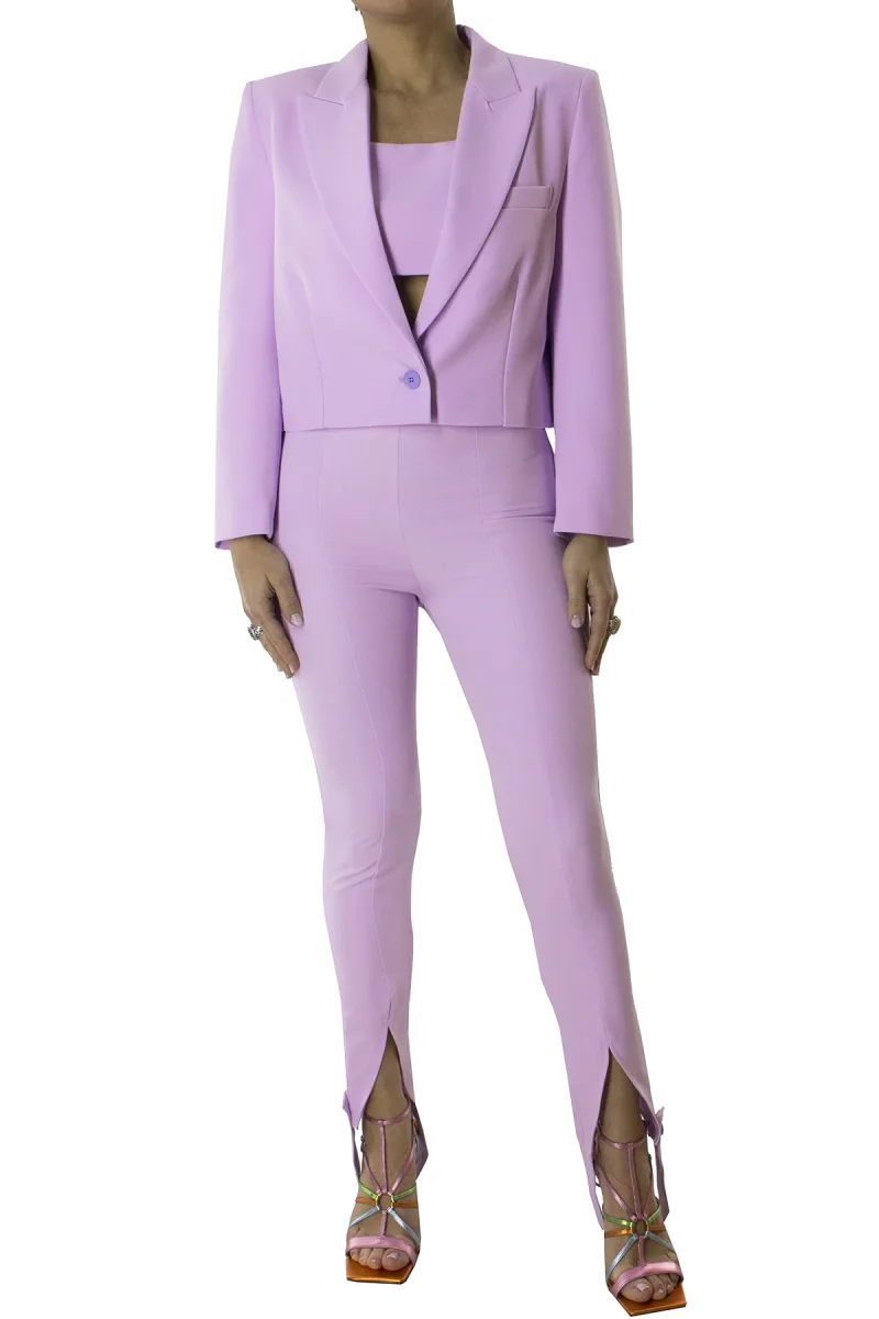 Giacca donna corta con rever a lancia un bottone sfoderata con spalline