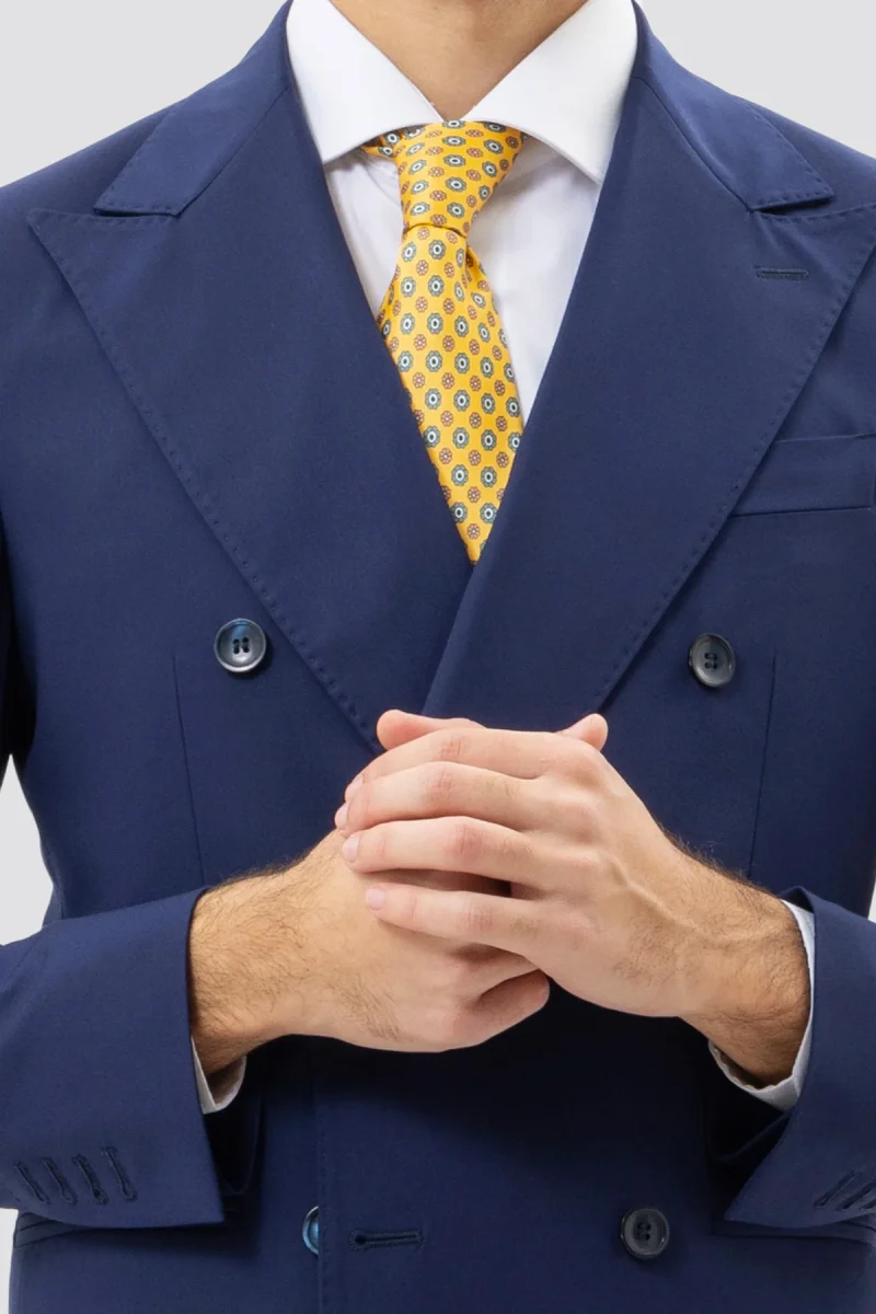 - Design: La giacca doppiopetto è caratterizzata da un rever a lancia 13 cm, un dettaglio che ne esalta l’eleganza e dona un aspetto sofisticato e moderno.