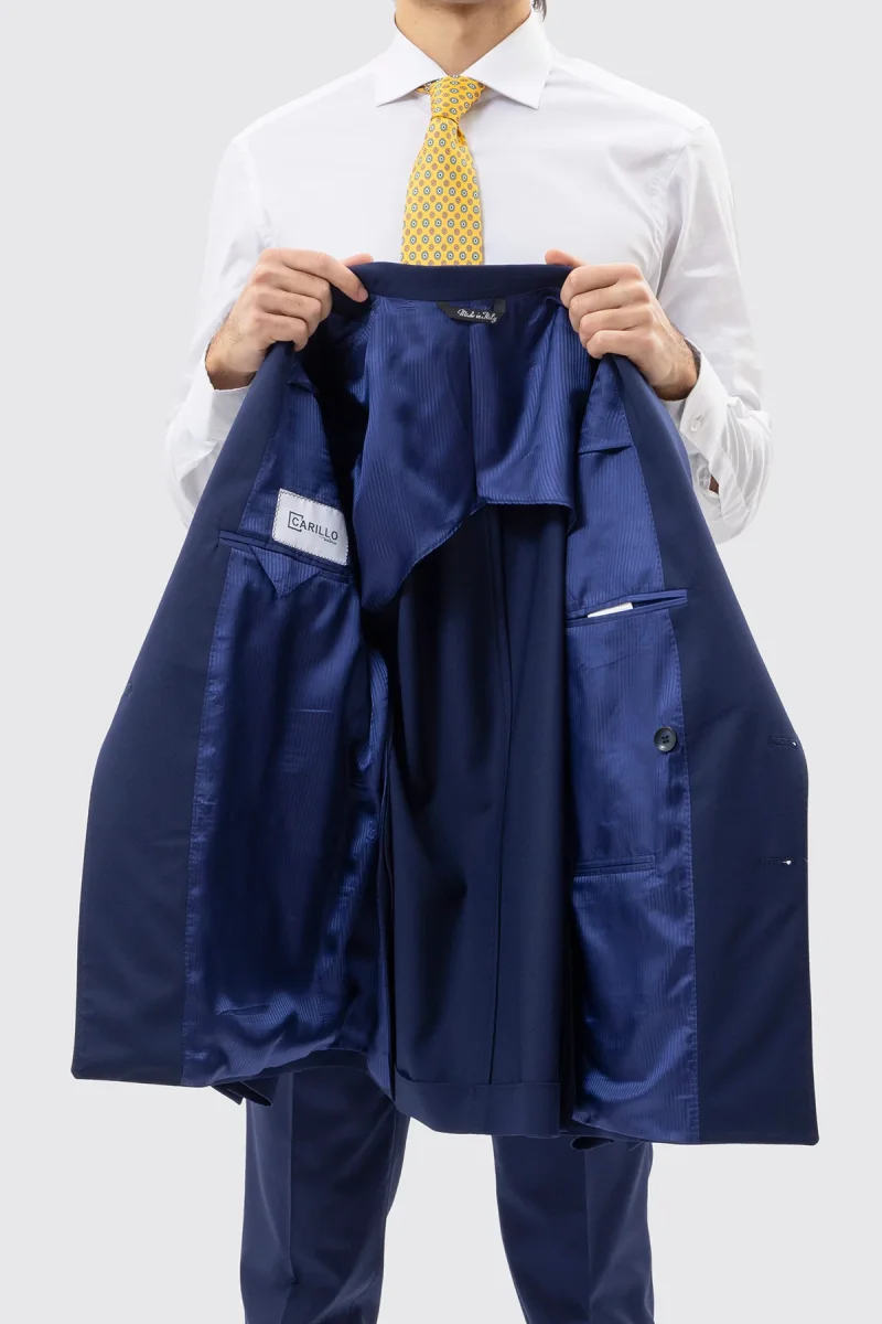 - Colore: Blu tinta unita, una tonalità versatile che si abbina perfettamente con diversi abbinamenti di camicie e pantaloni, perfetta per ogni occasione formale.