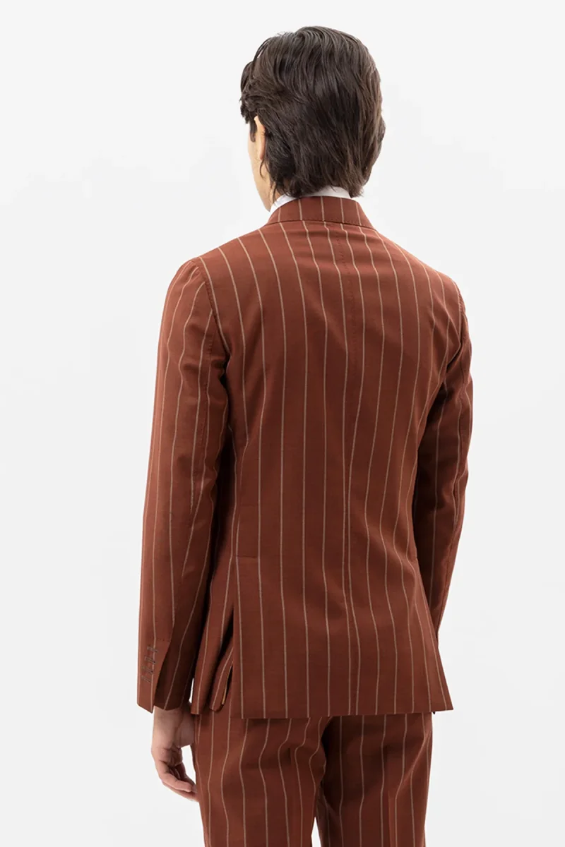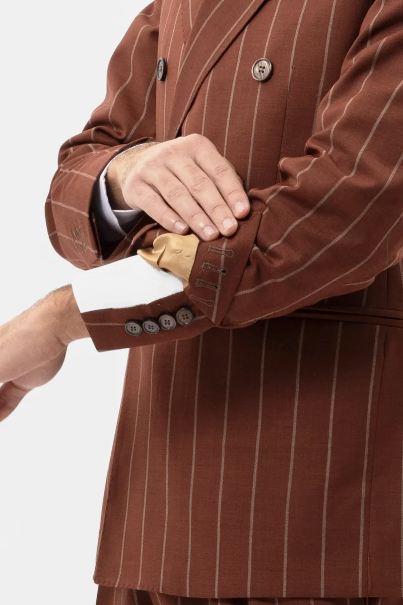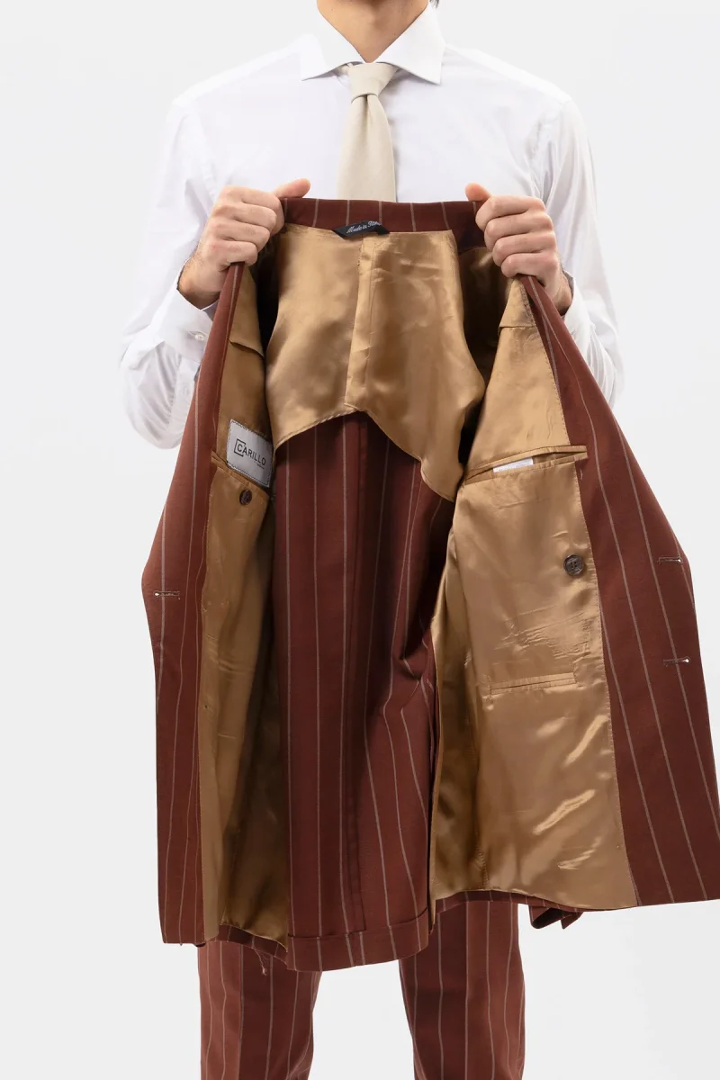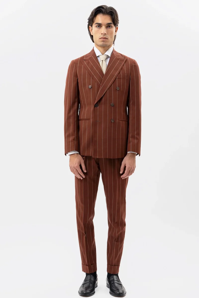 Giacca Doppiopetto Coccio Gessata Beige Uomo Fresco Lana Super 130’s Fordam Tessuti Napoli Rever A Lancia