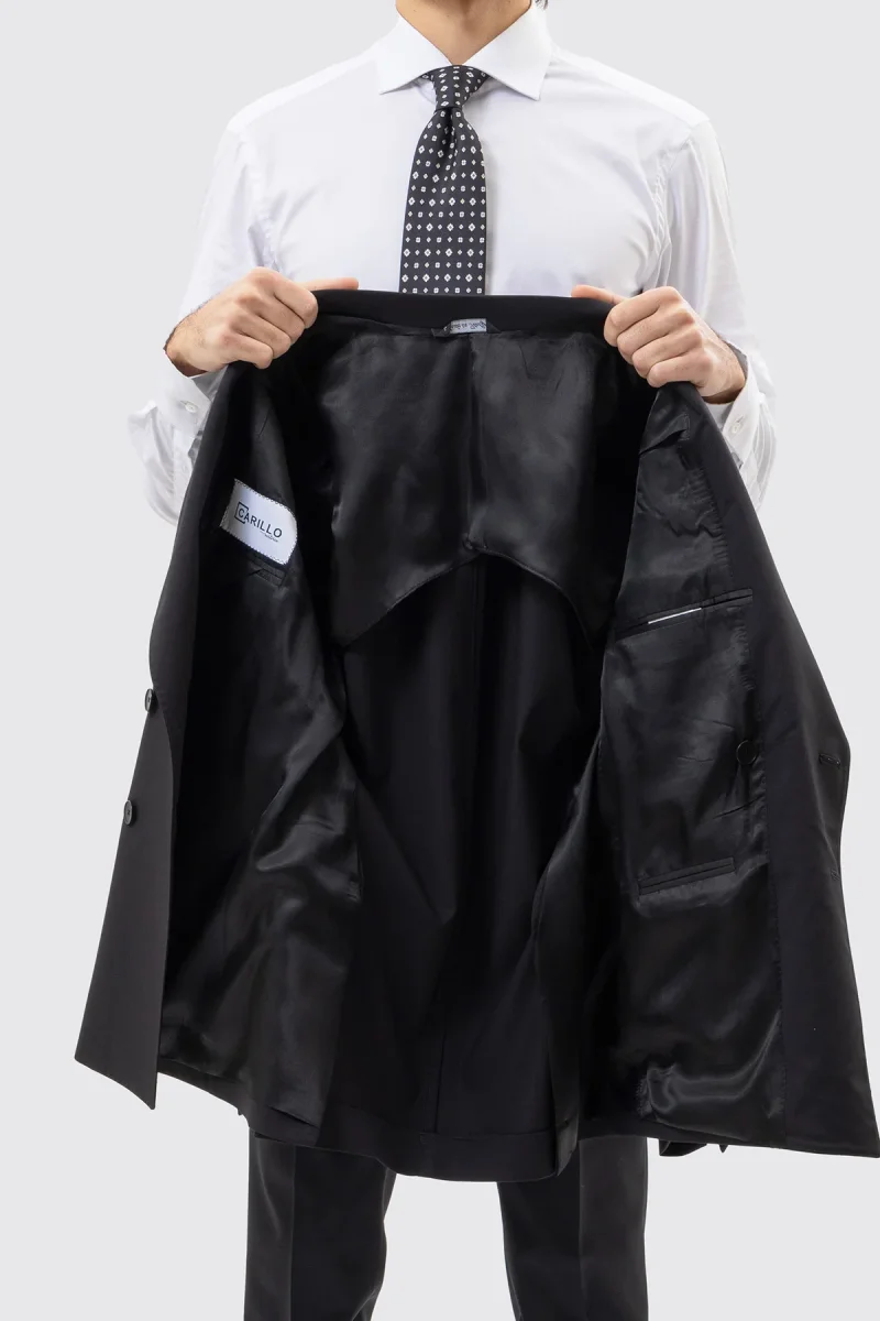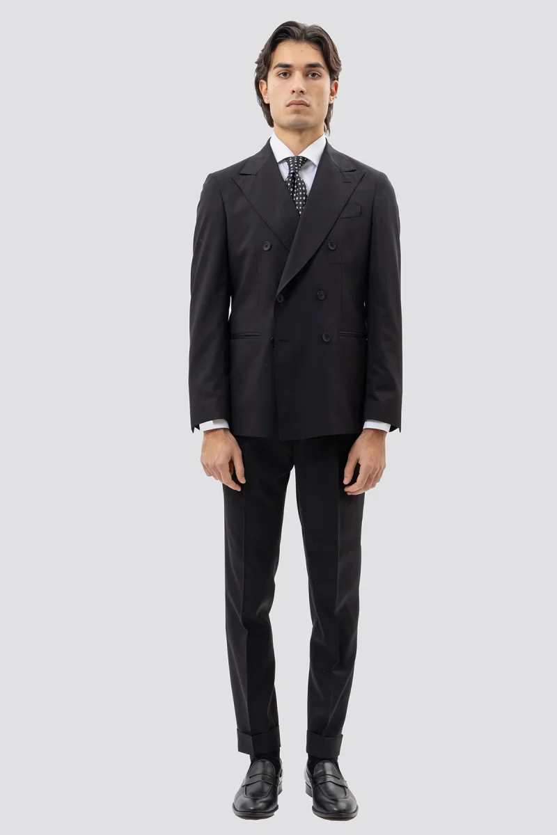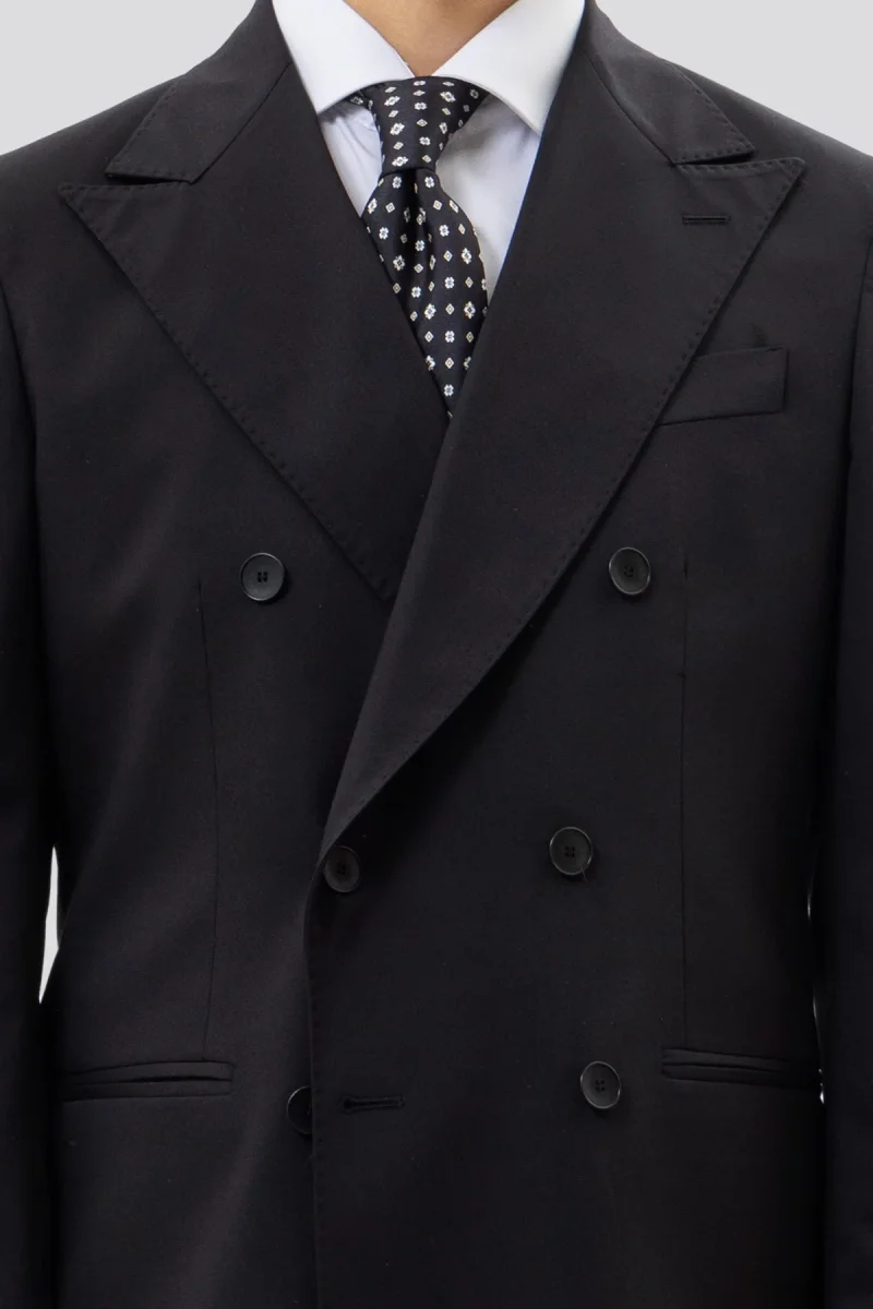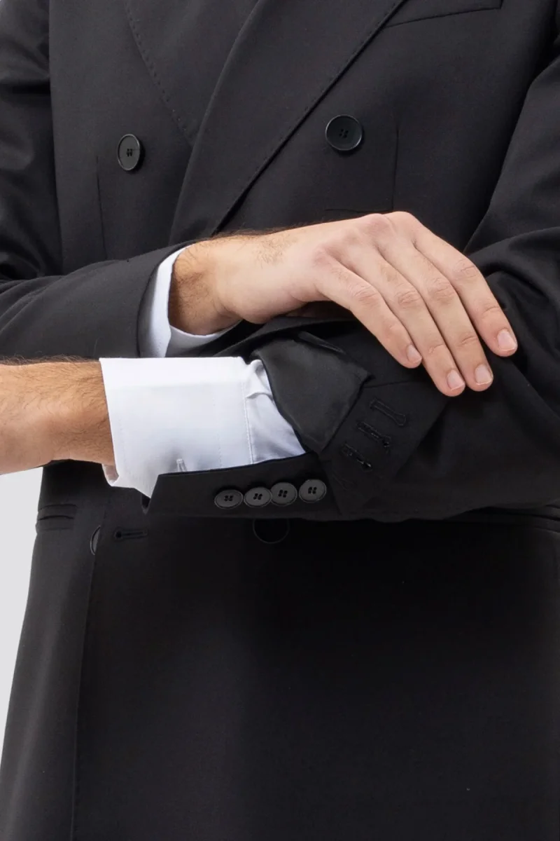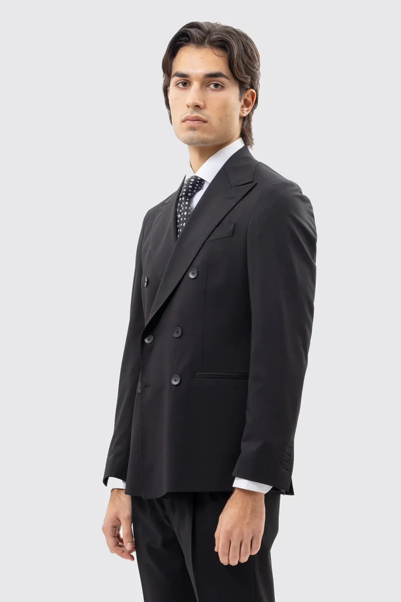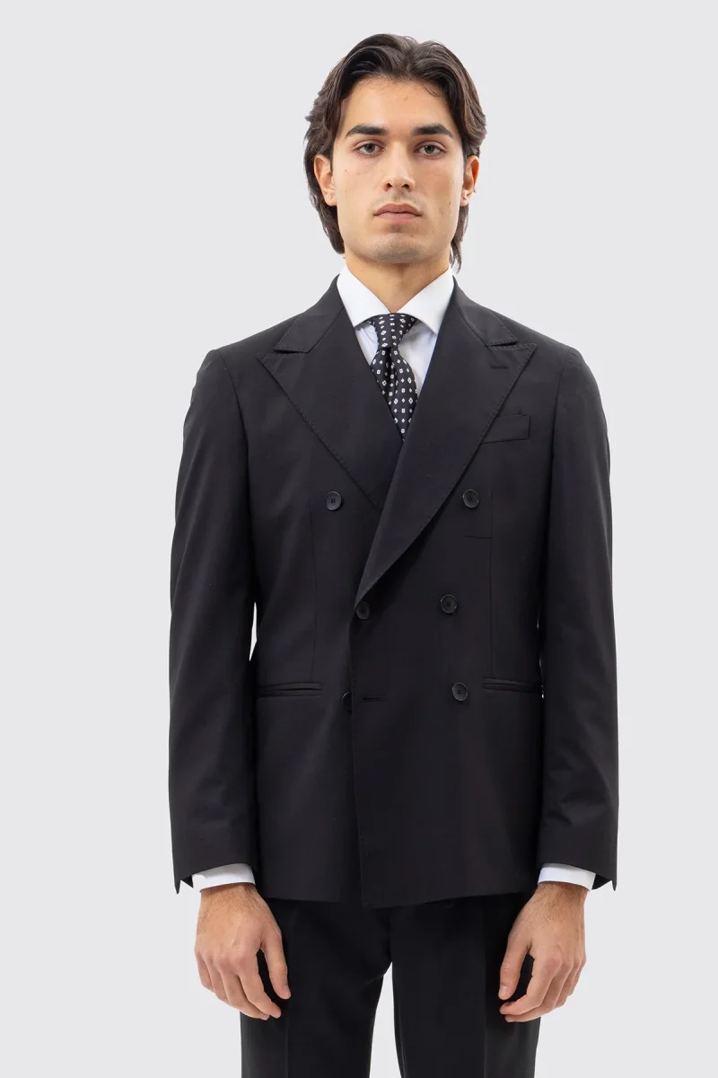 Giacca Doppiopetto Nera Tinta Unita Uomo Rever A Lancia 13cm Tasche A Filo