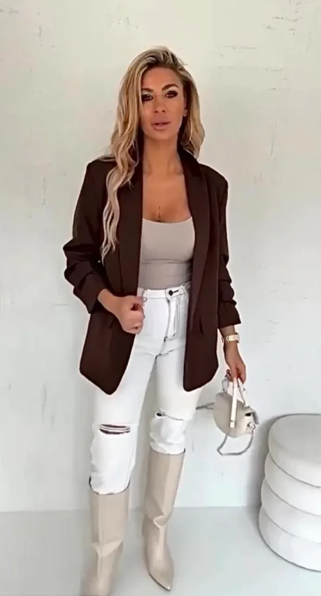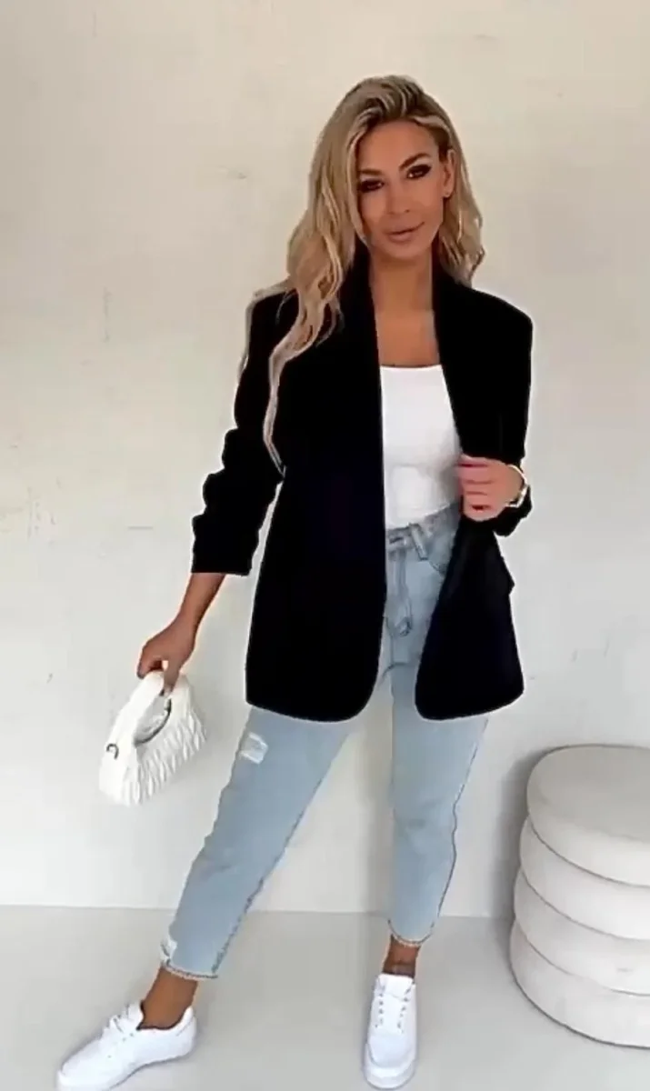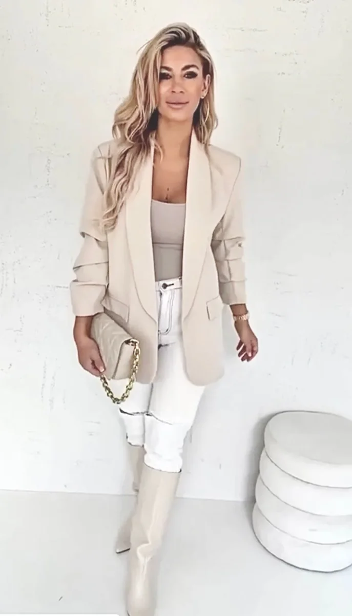 Giacca tessuto scuba crepe in tinta unita. Rever sciallato, spalline interne imbottite, manica arricciata con drappeggio e tasche estetiche. Glamour, si adatta ad una varietà di occasioni, per una mise classy e versatile.