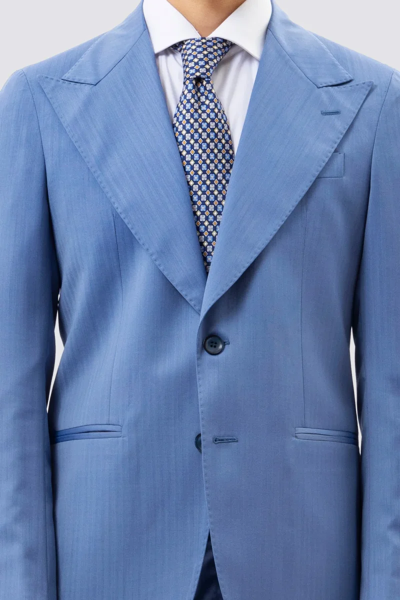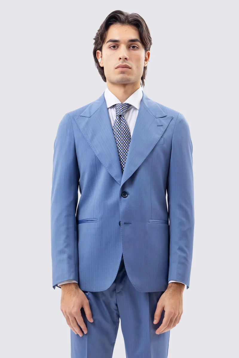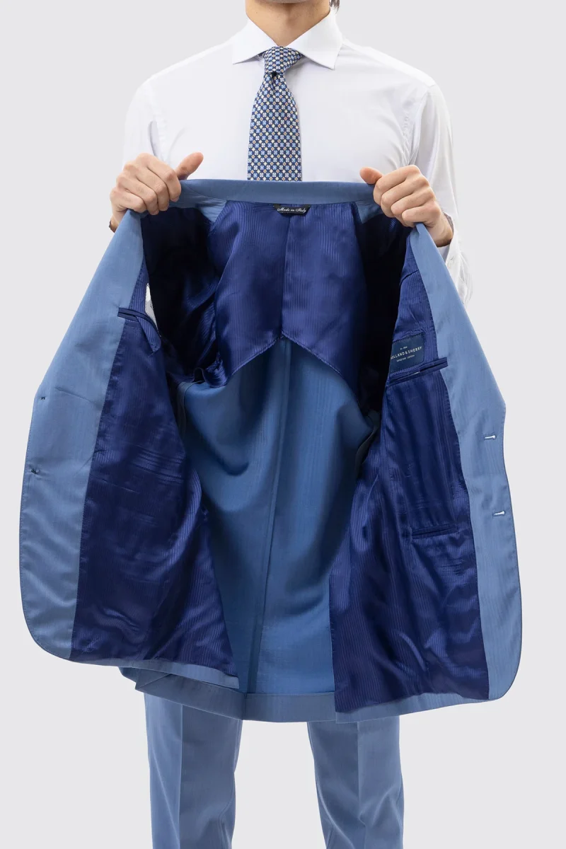 Giacca Monopetto Celeste Solaro Uomo In Lana E Seta Holland & Sherry Rever A Lancia 13cm E Tasche A Filo