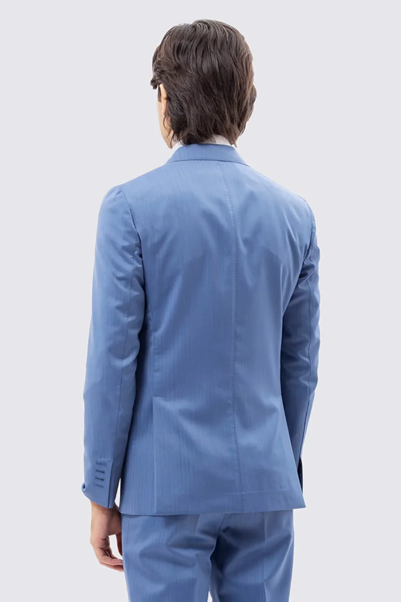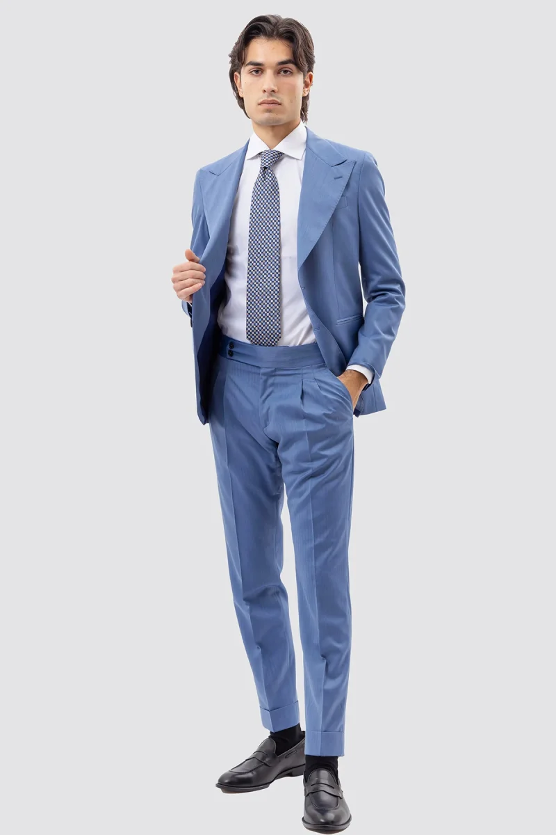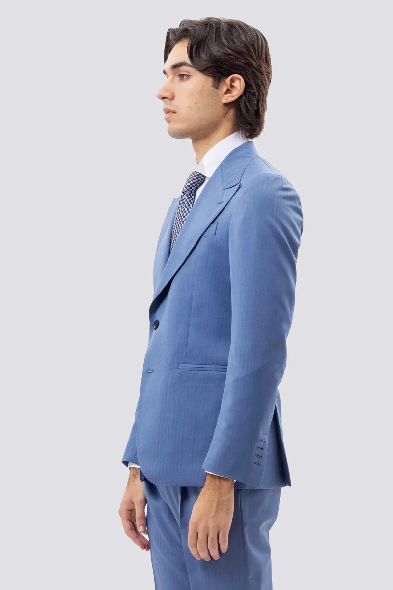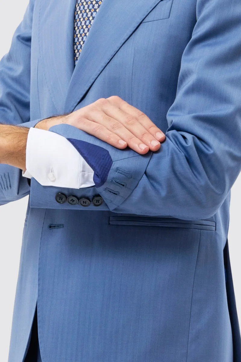 Giacca Monopetto Celeste Solaro Uomo In Lana E Seta Holland & Sherry Rever A Lancia 13cm E Tasche A Filo