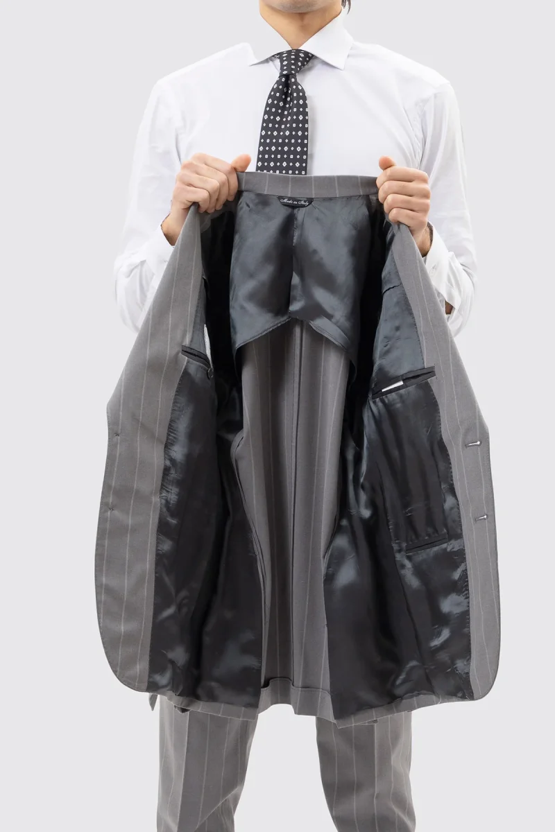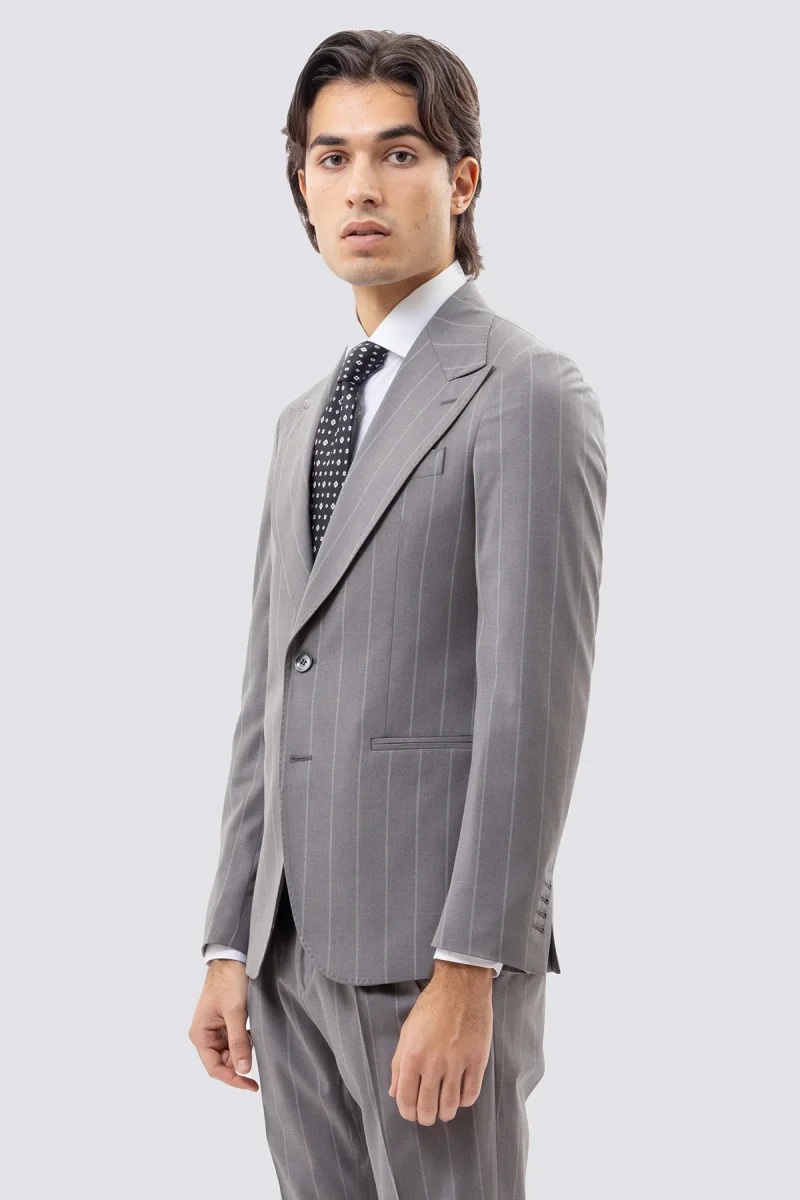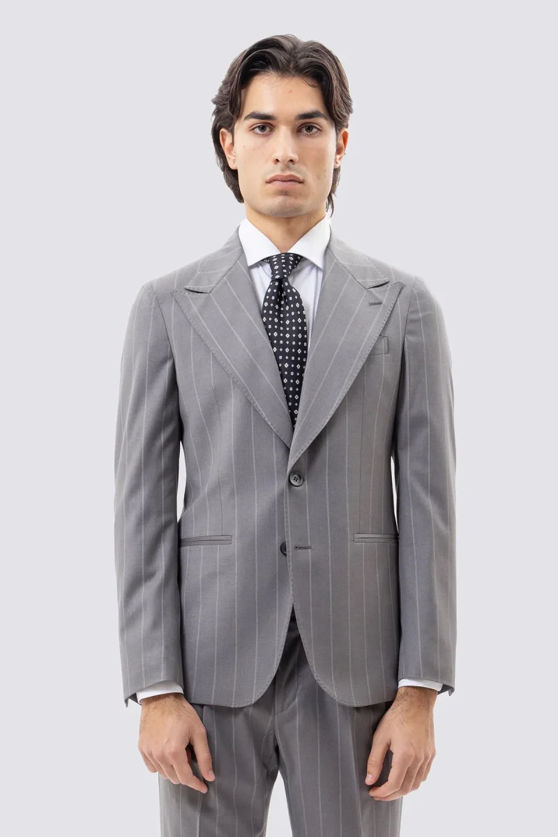 Giacca Monopetto Grigia Gessata Bianca Uomo Rever 13cm Tasche A Filo Made In Italy