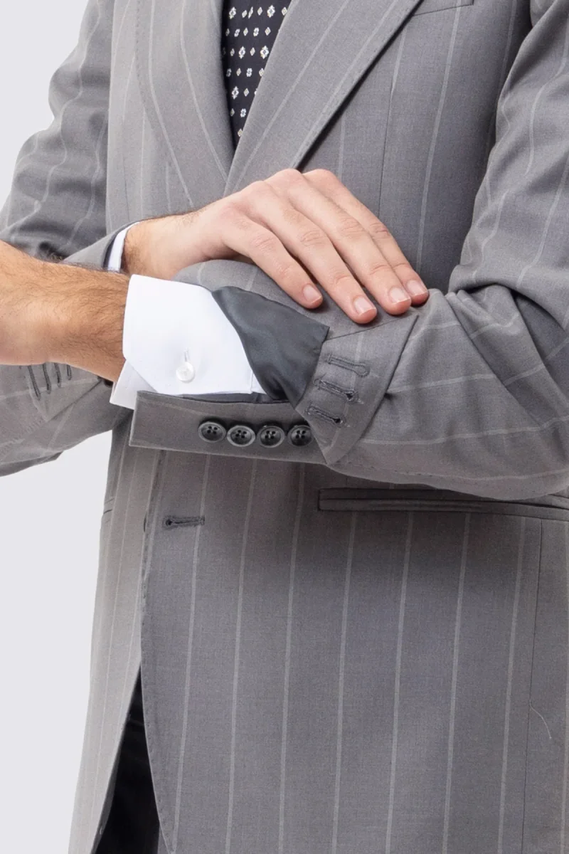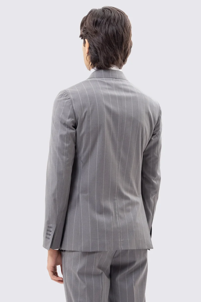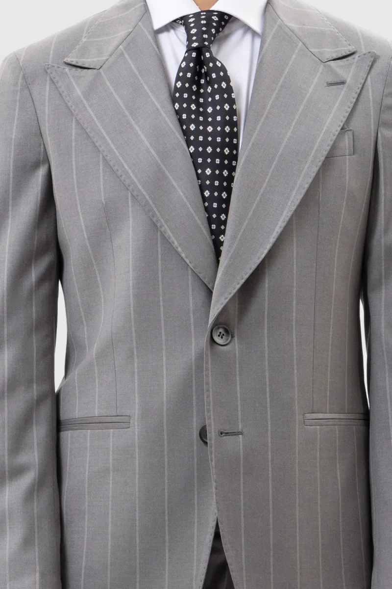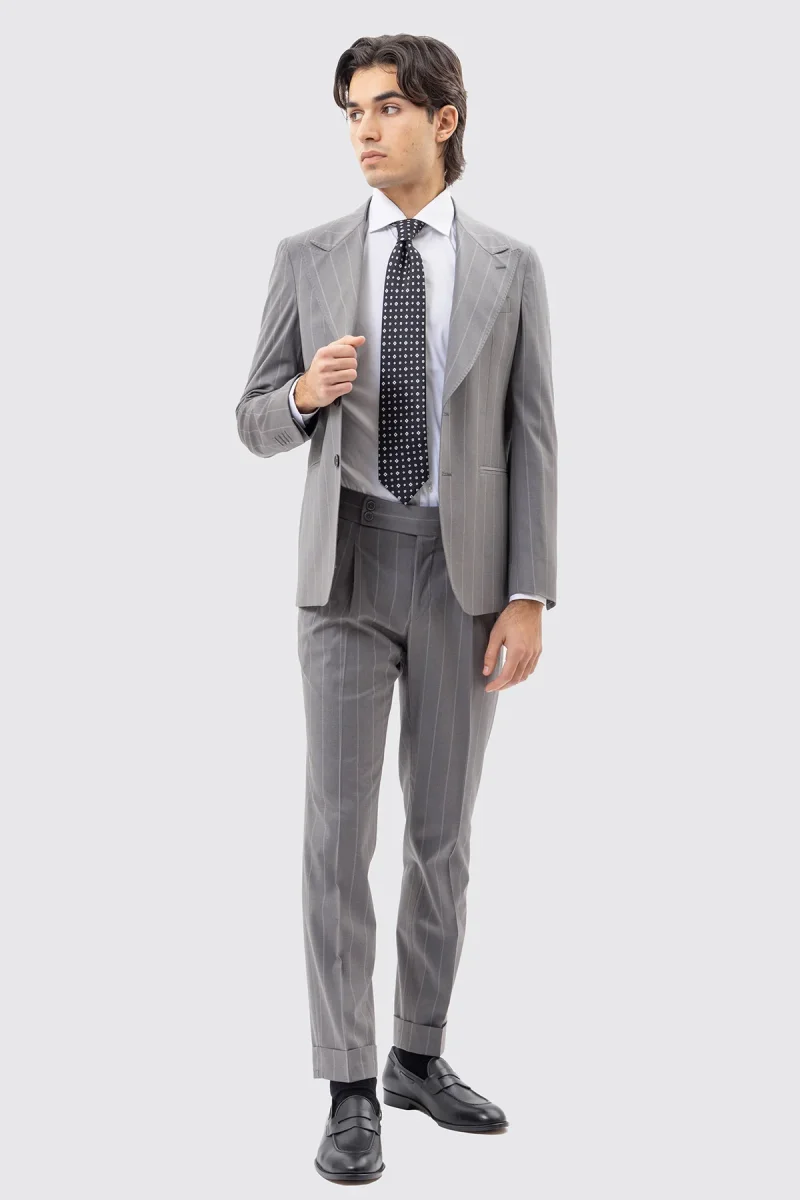 Giacca Monopetto Grigia Gessata Bianca Uomo Rever 13cm Tasche A Filo Made In Italy