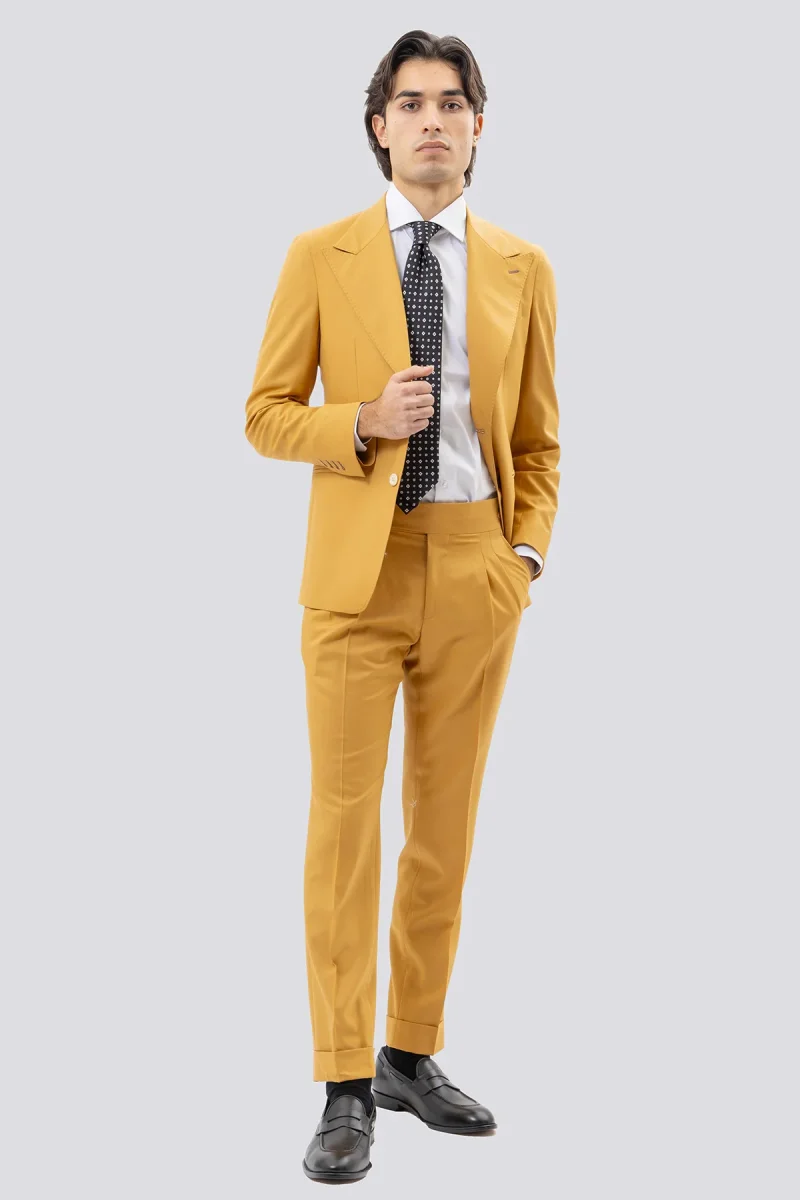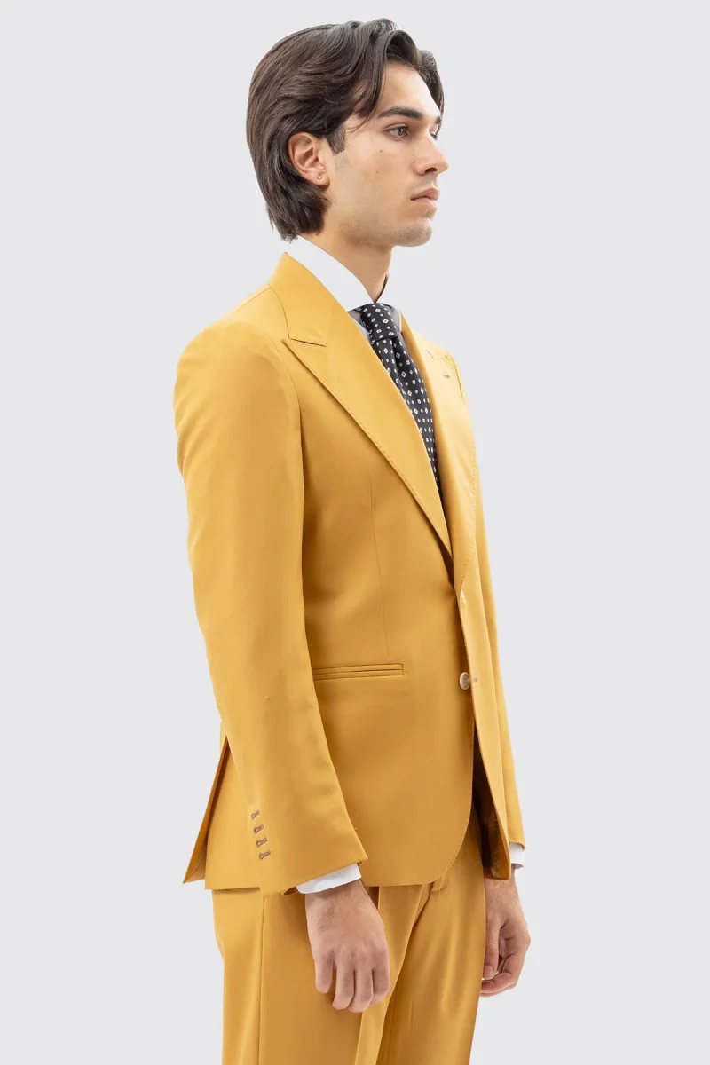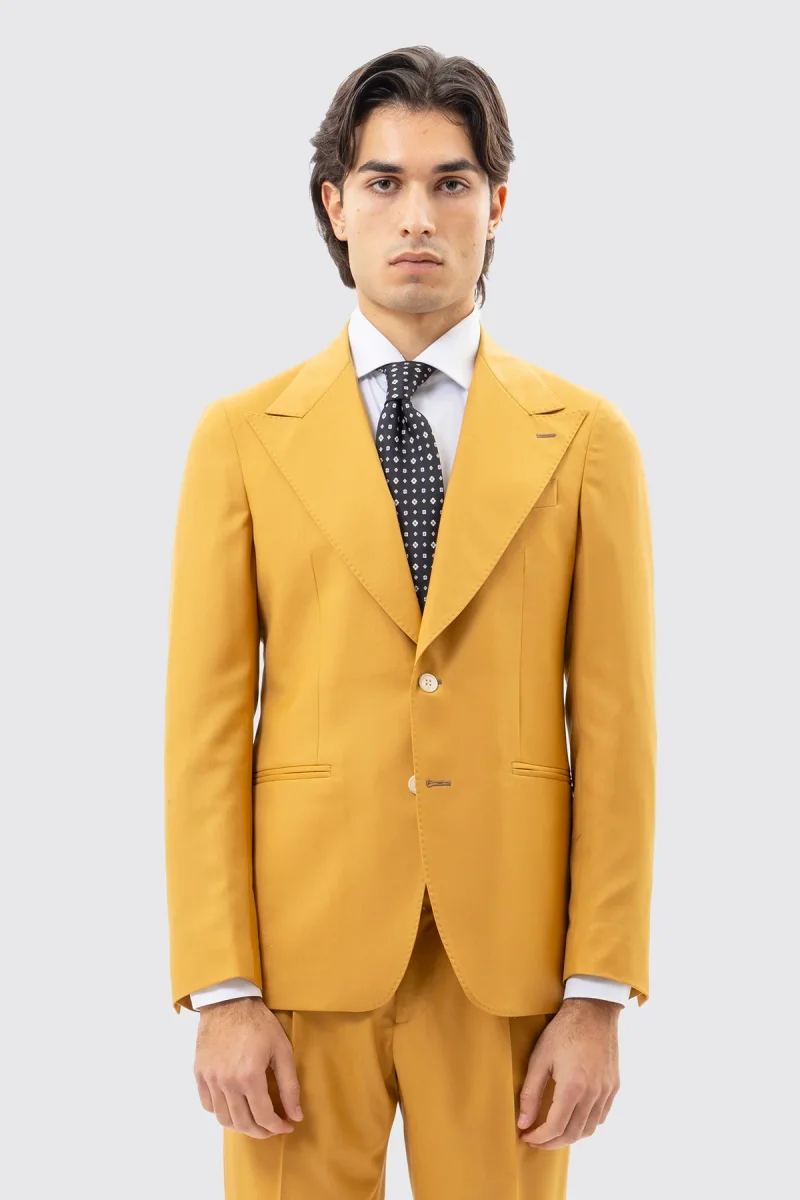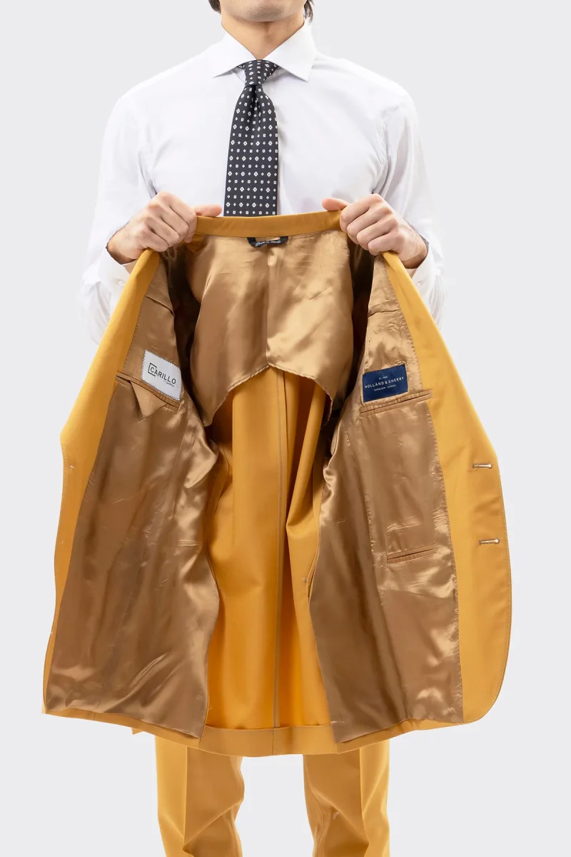 Giacca Monopetto Senape Uomo Fresco Lana Super 140’s Holland & Sherry Rever A Lancia 12cm