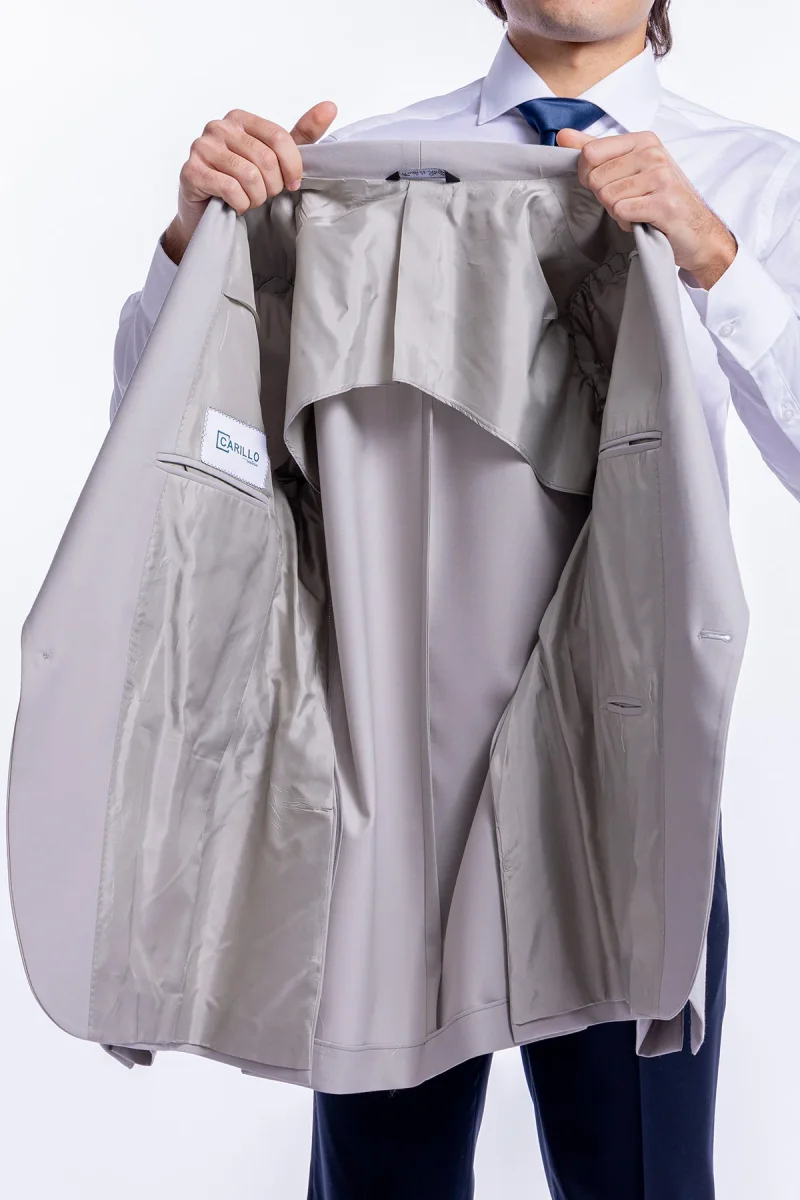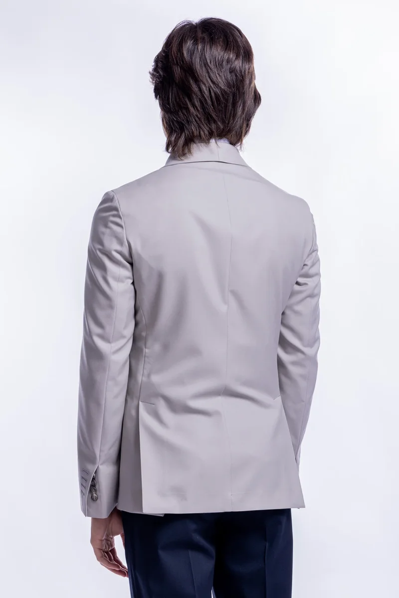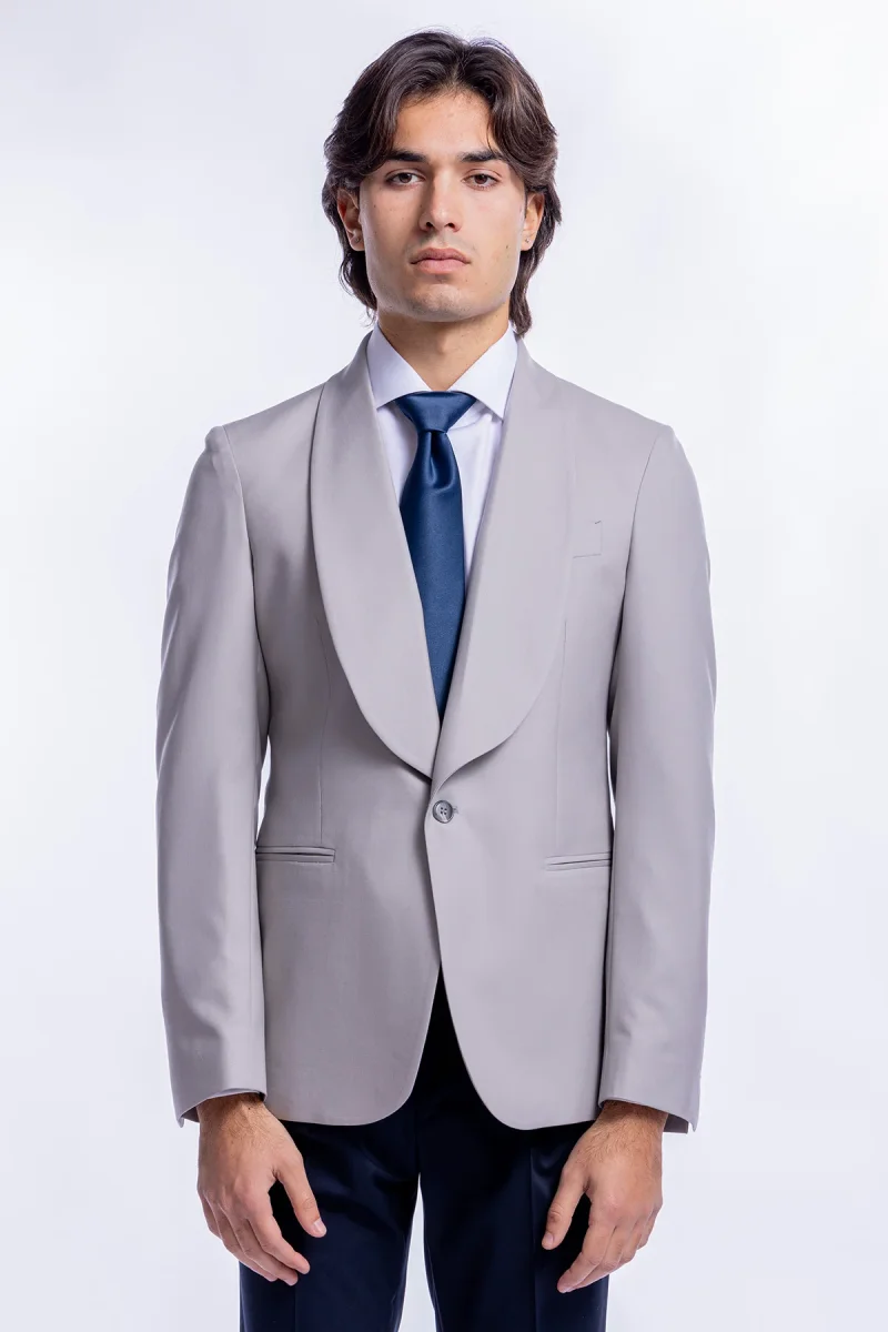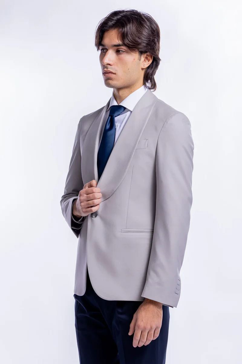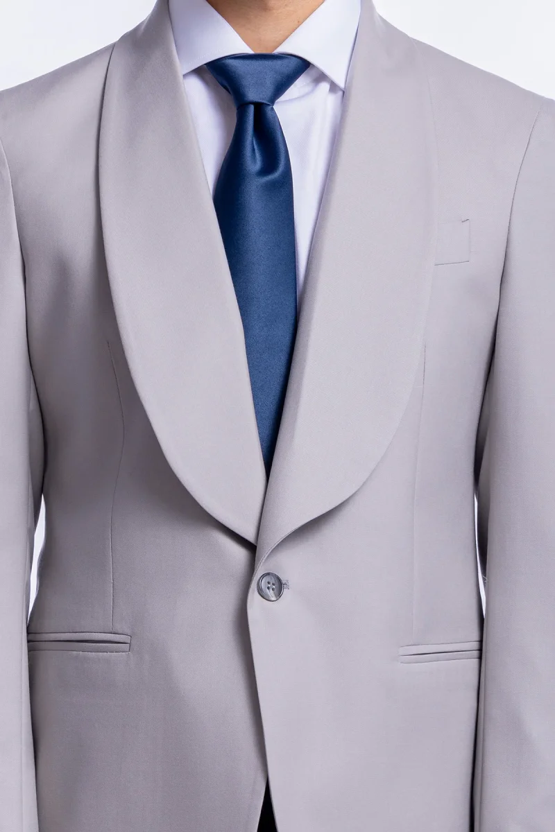 Giacca smoking da uomo grigio chiaro monopetto in fresco lana super 140’s Holland & Sherry con rever a scialle largo