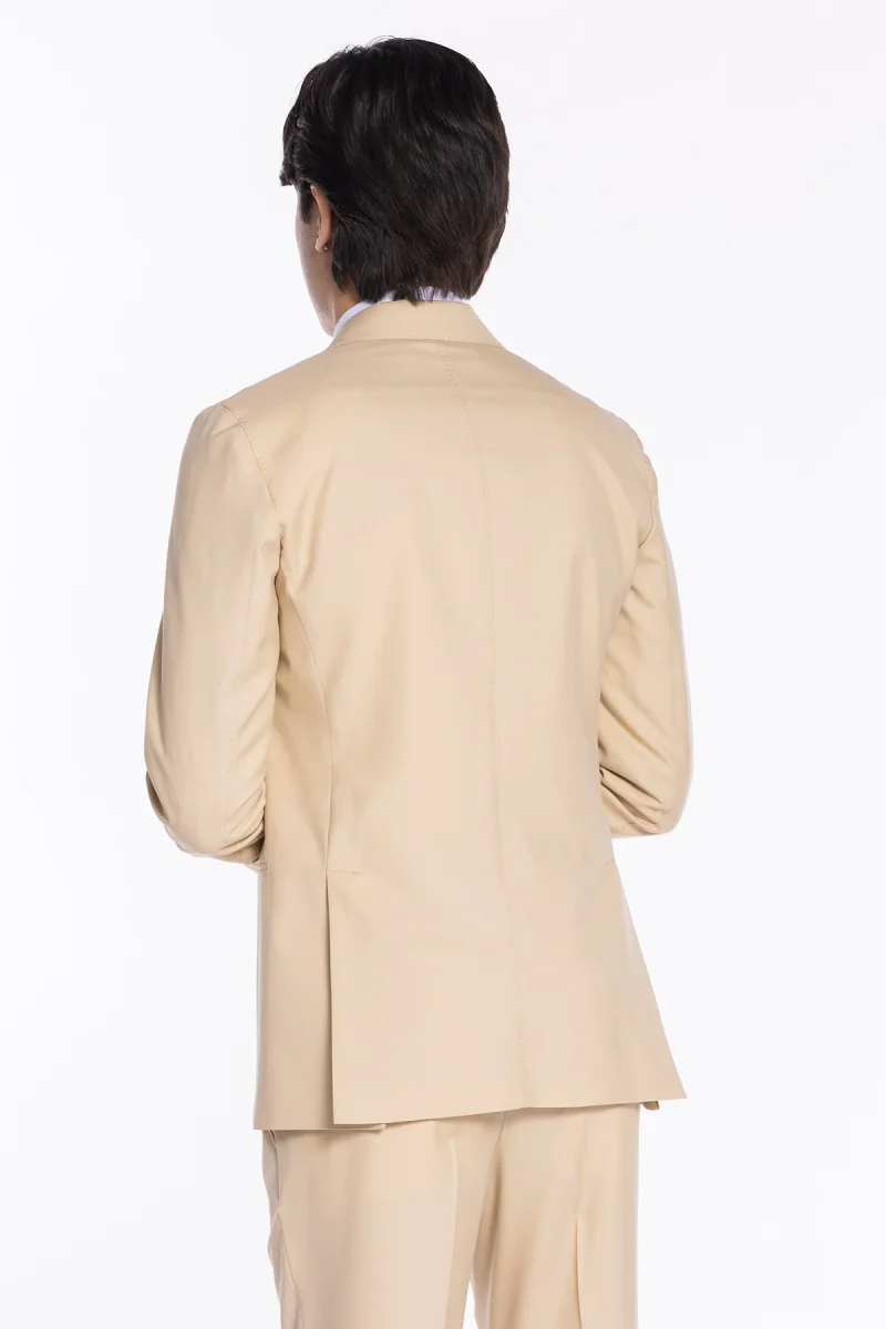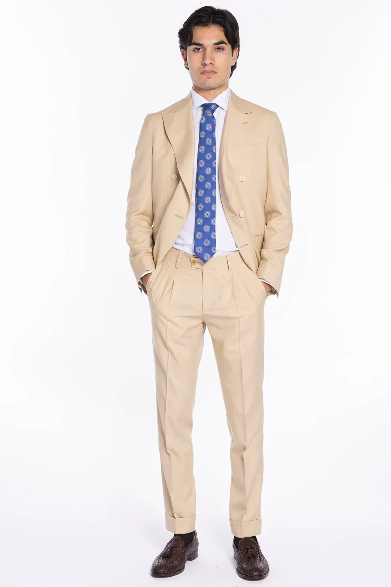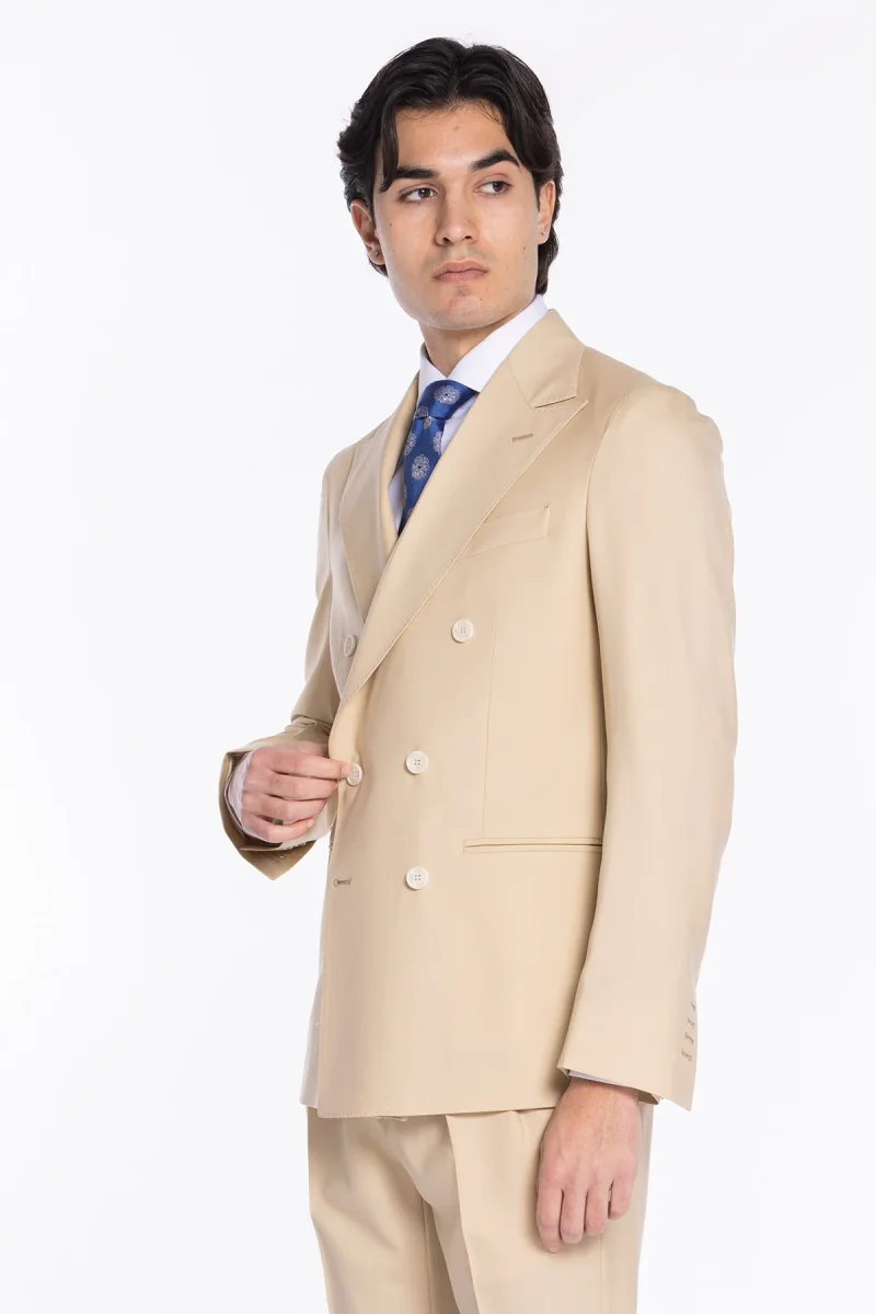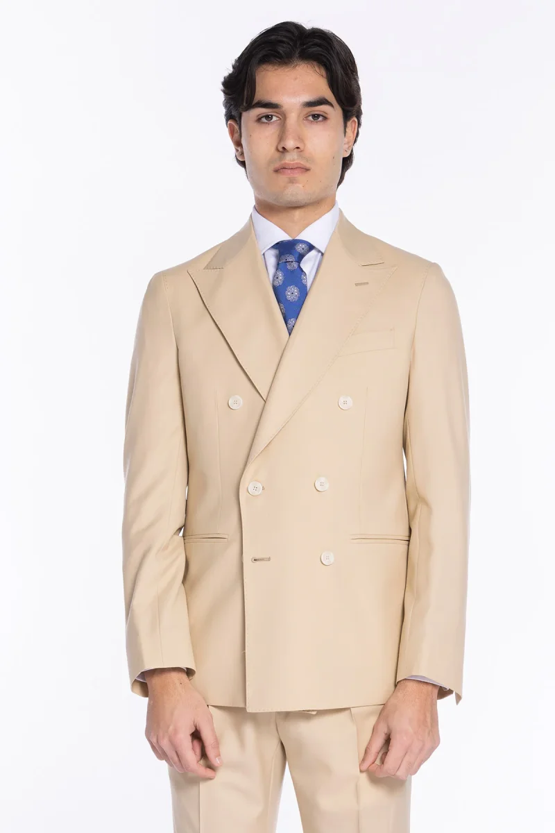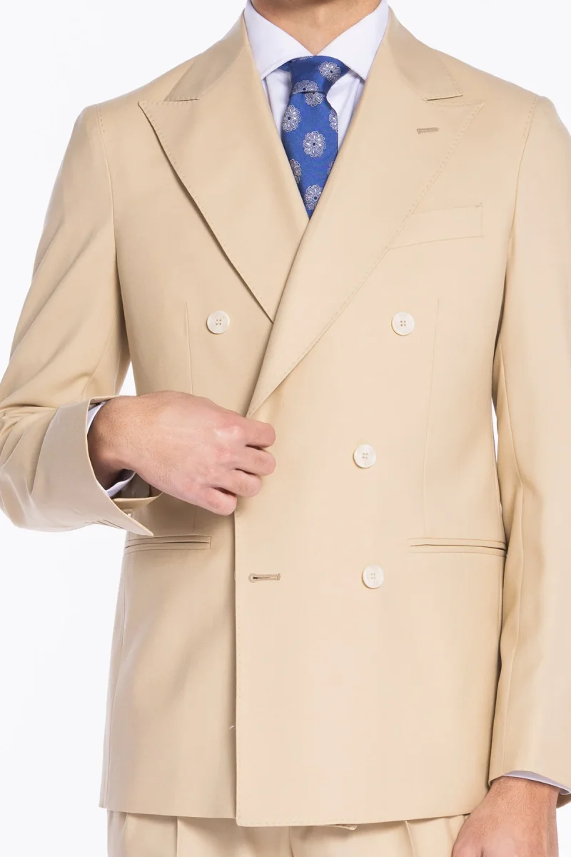 Giacca uomo doppiopetto Beige fresco lana super 140’s Holland & Sherry Rever a lancia