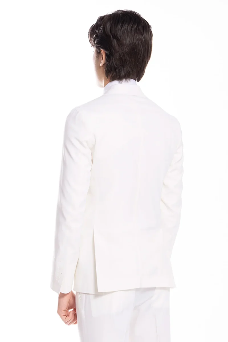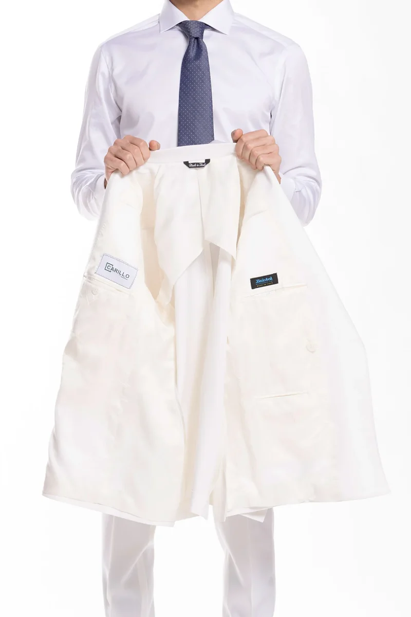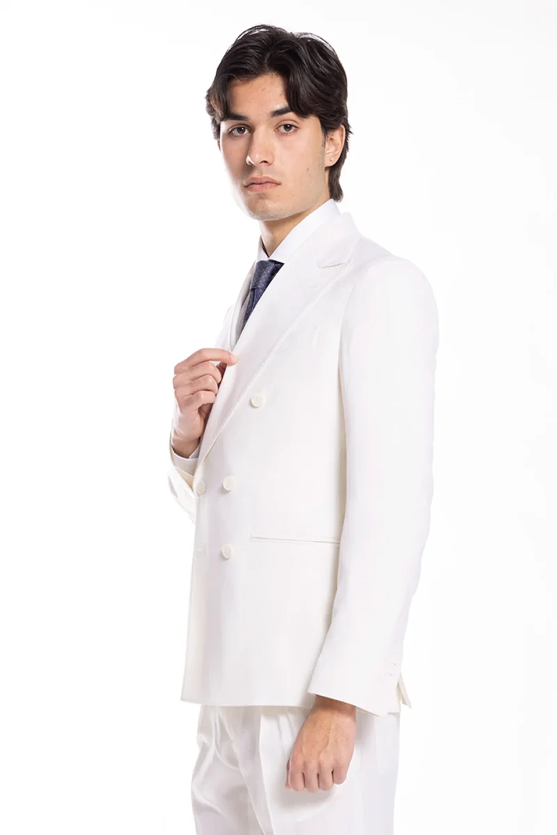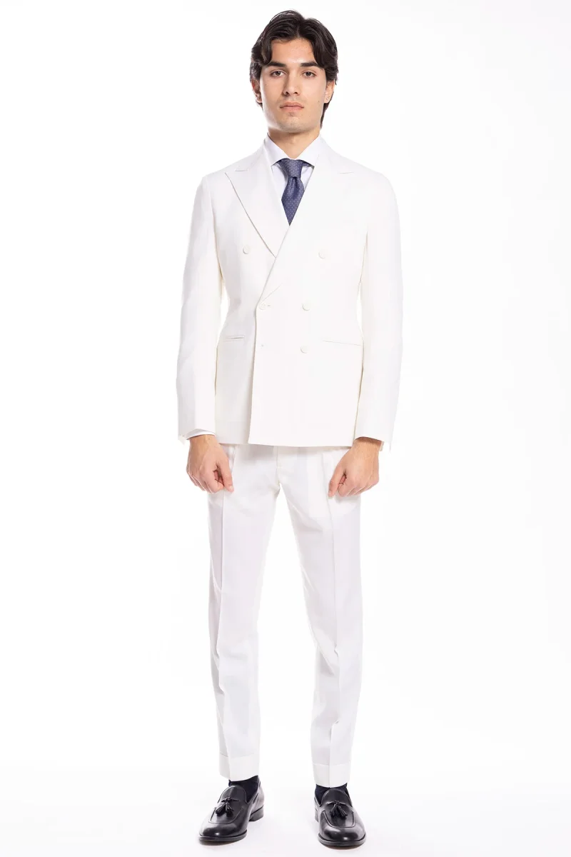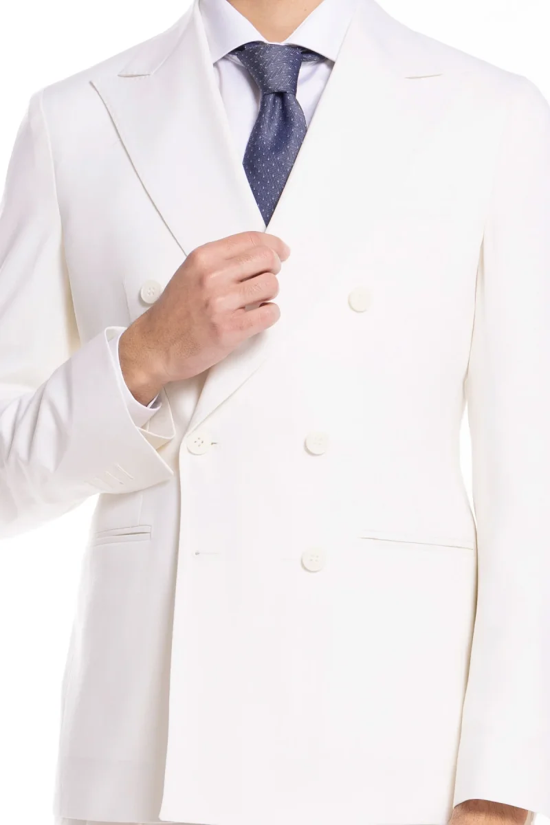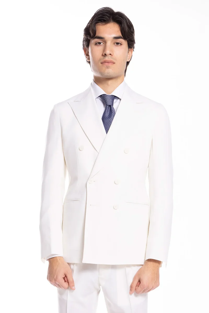GIACCA UOMO DOPPIOPETTO BIANCA IN FRESCO LANA SUPER 130’S BRISTOL TESSUTI NAPOLI CON REVER A LANCIA LARGO TASCHE A FILO