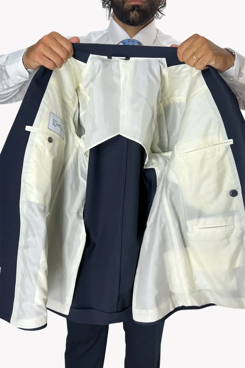 - Colore Blu Notte: Il blu notte è una tonalità profonda e sofisticata, versatile e facile da abbinare a camicie e cravatte di ogni colore. Perfetta per chi cerca un capo formale ma non troppo appariscente.