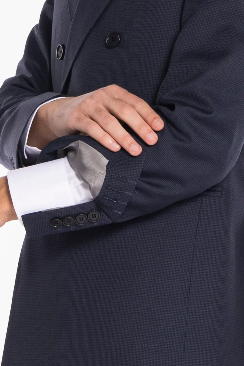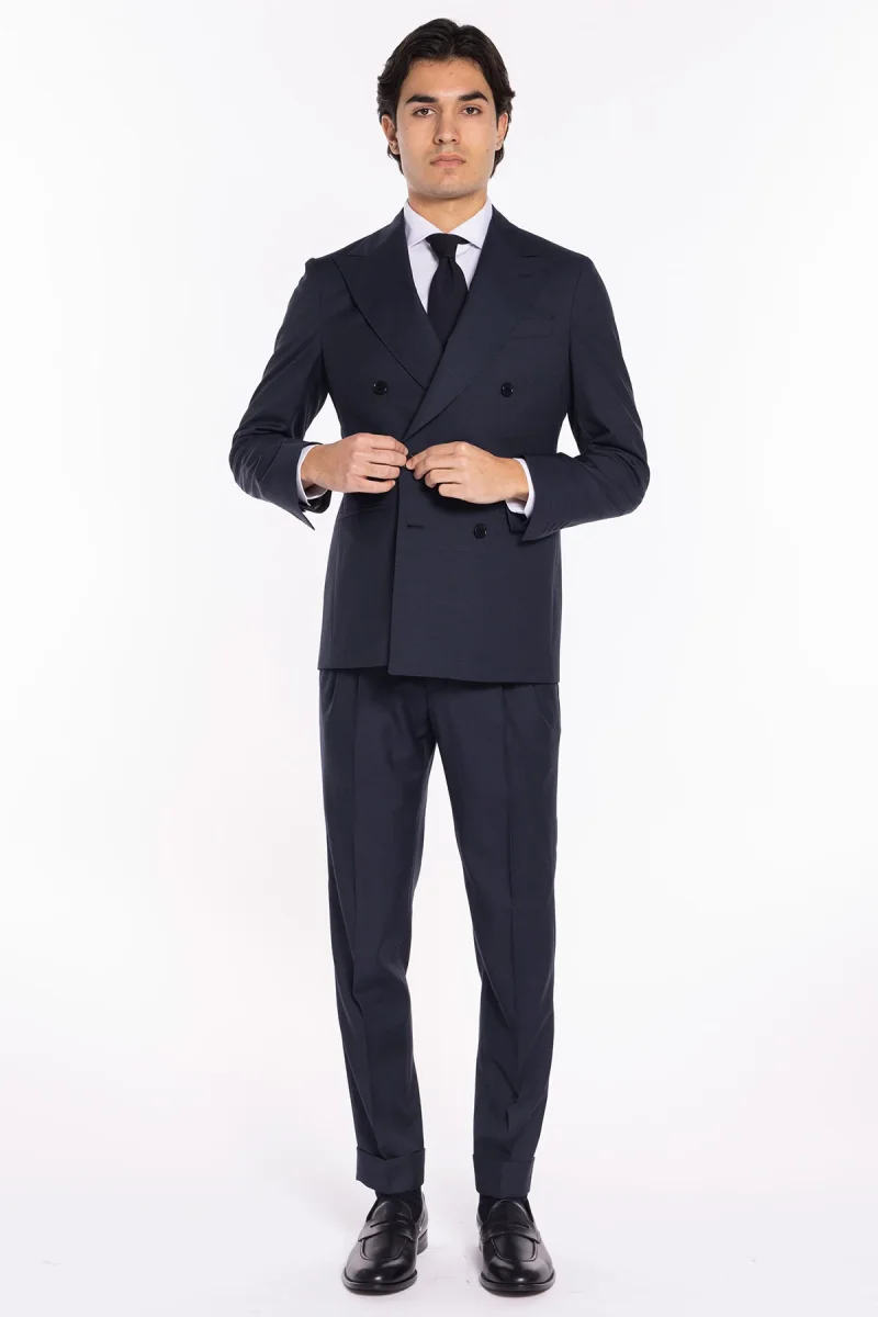 Giacca uomo doppiopetto blu pied de poule in fresco lana super 120’s Holland & Sherry rever a lancia larga