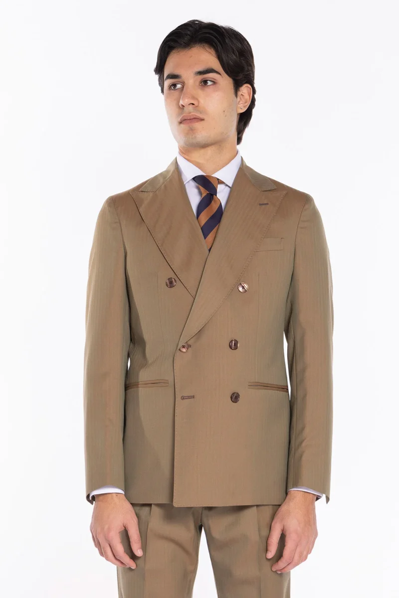 GIACCA UOMO DOPPIOPETTO FANGO SOLARO FRESCO LANA SUPER 100’S E SETA HOLLAND & SHERRY REVER A LANCIA