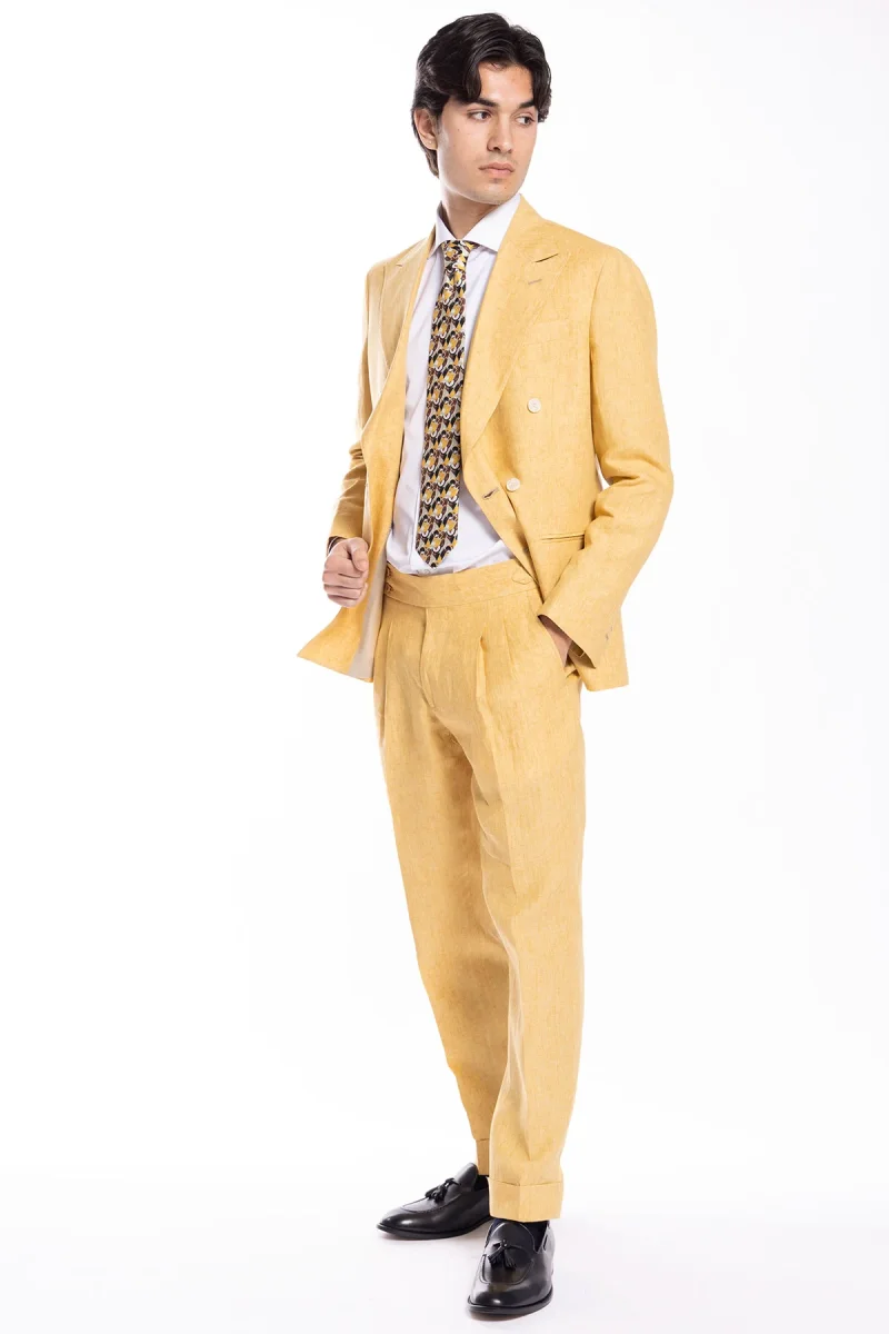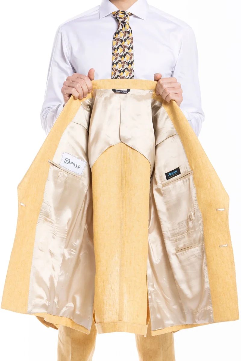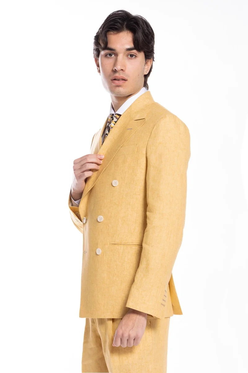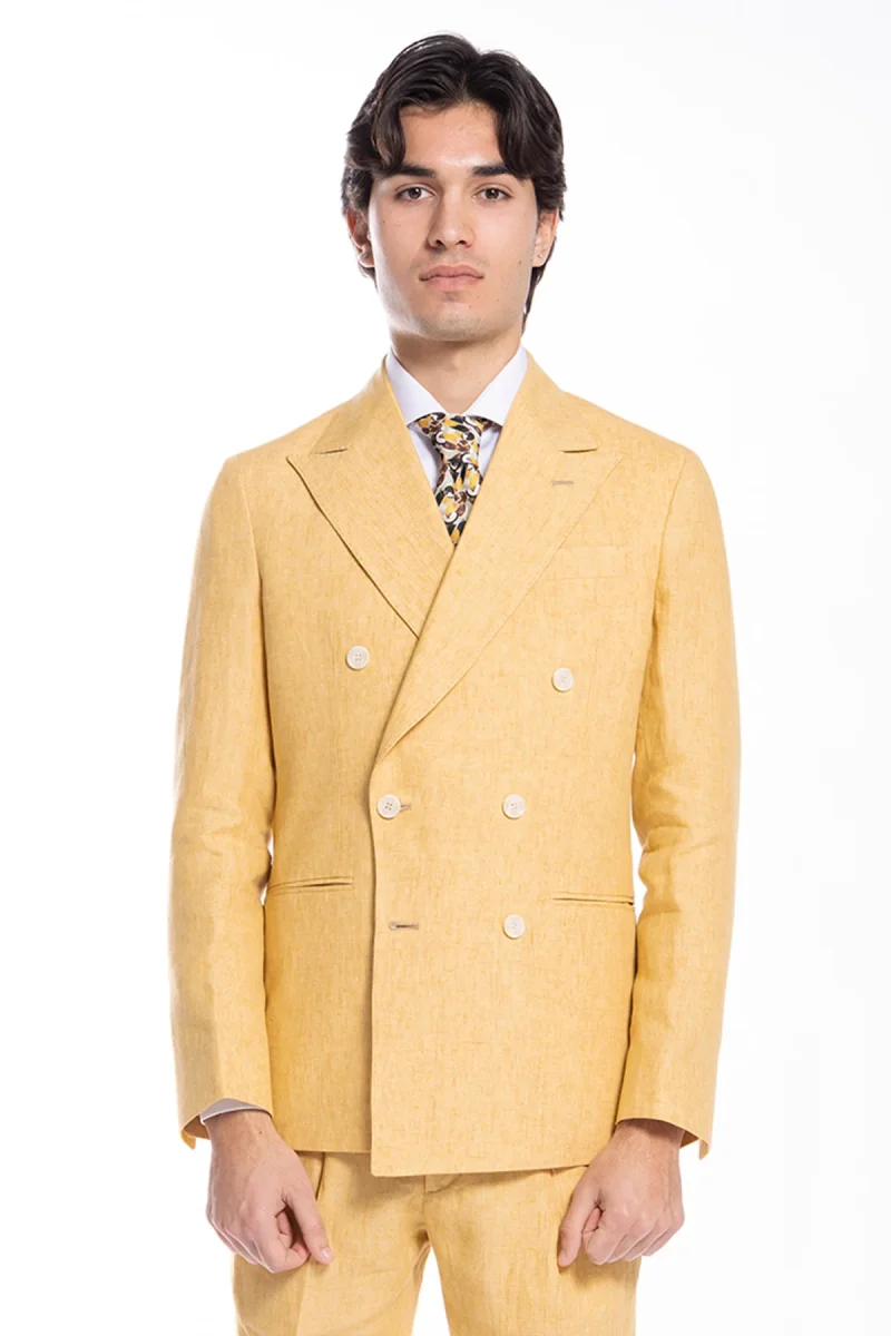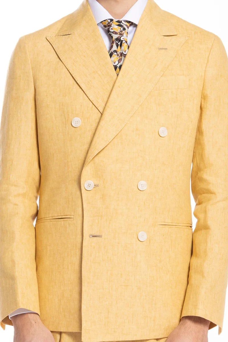 Giacca uomo doppiopetto gialla 100% lino Bristol Tessuti Napoli rever a lancia