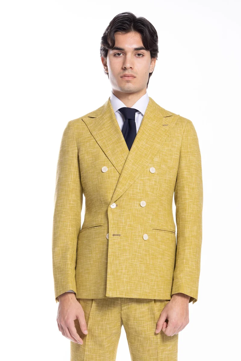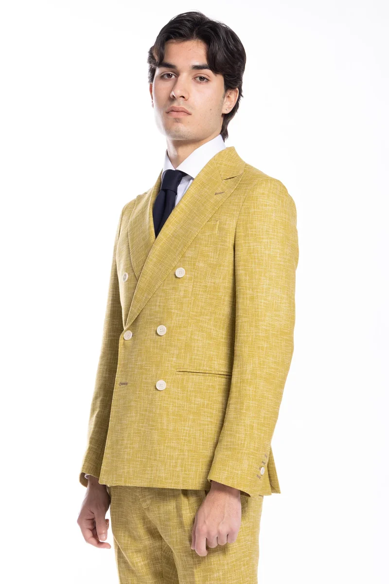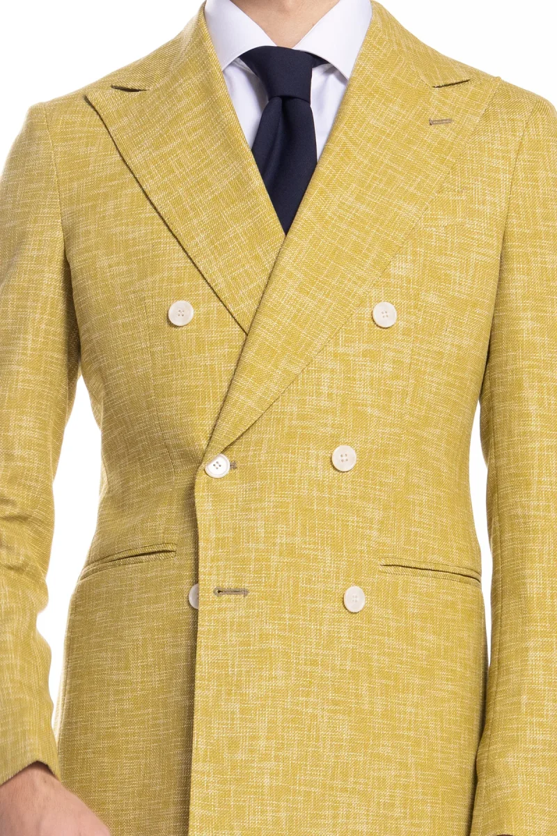 Giacca uomo doppiopetto gialla effetto melange misto lana e cotone Bristol Tessuti Napoli rever a lancia