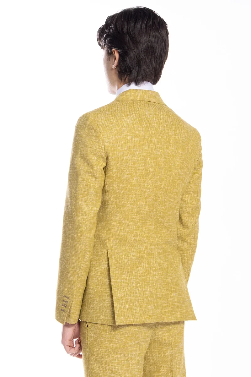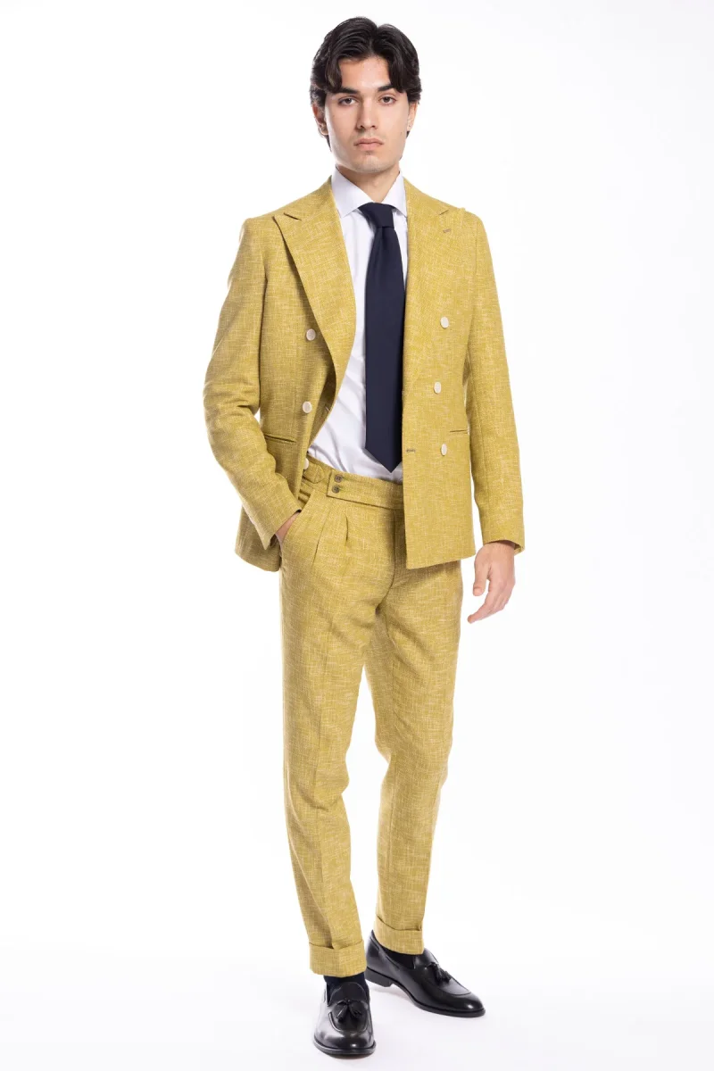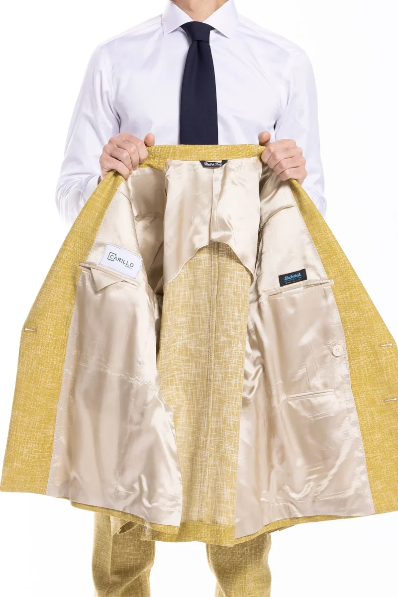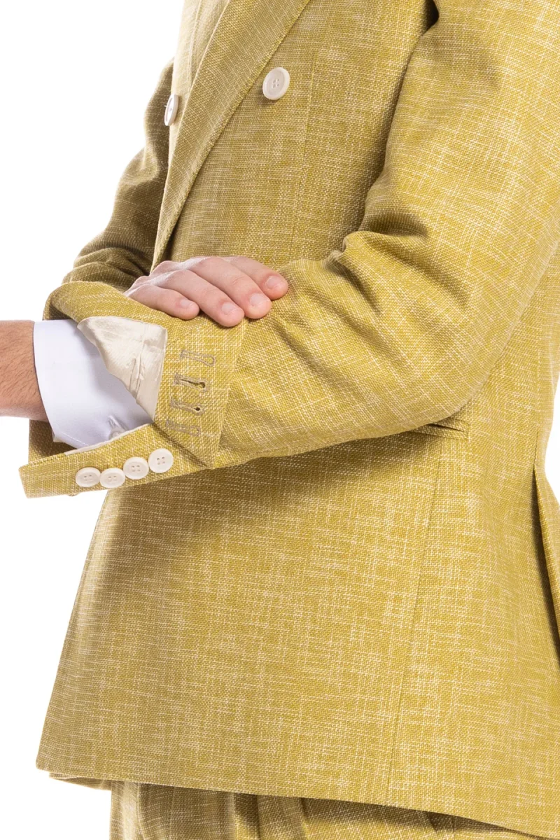 Giacca uomo doppiopetto gialla effetto melange misto lana e cotone Bristol Tessuti Napoli rever a lancia