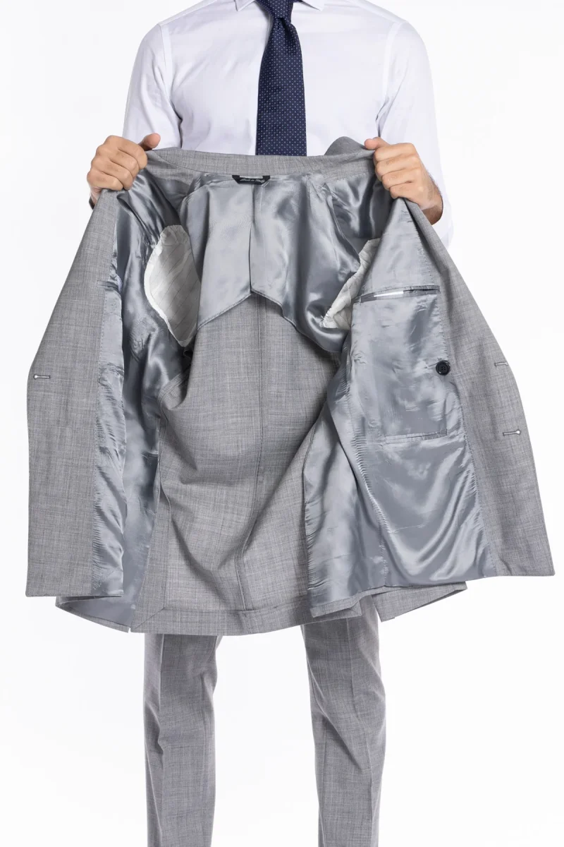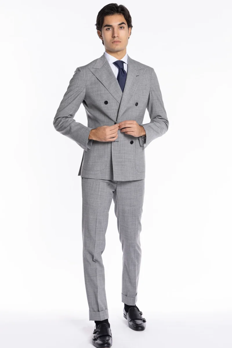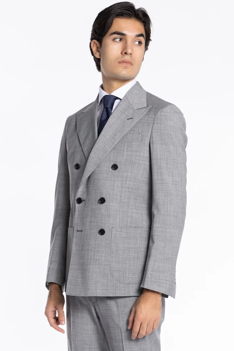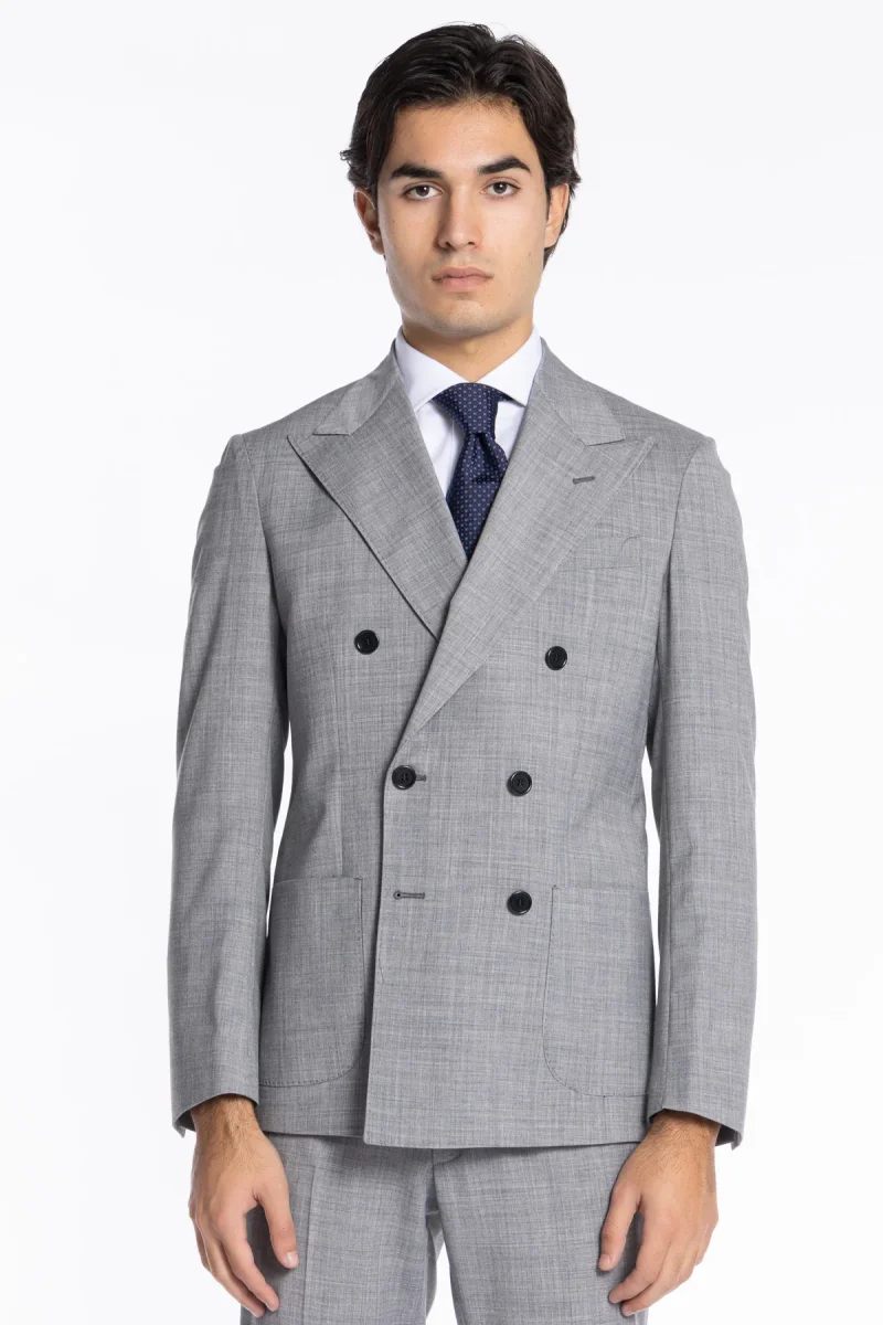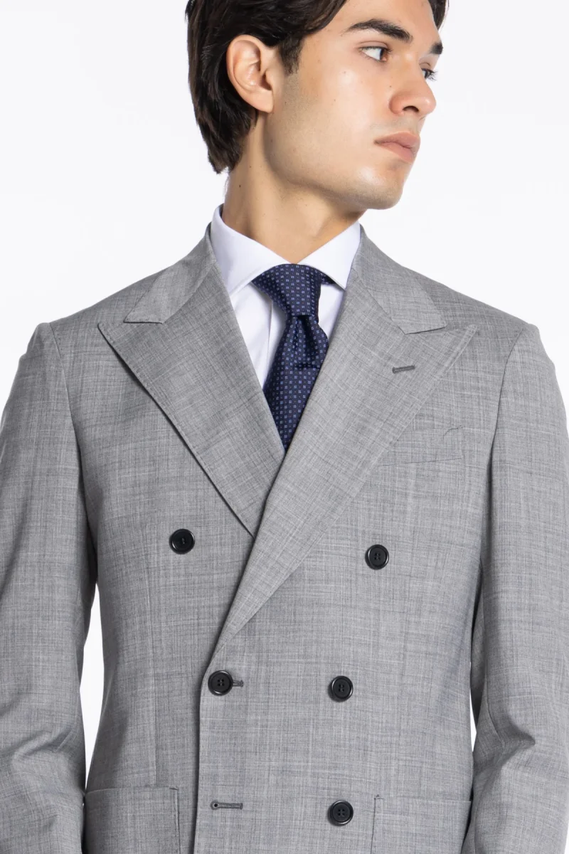 Giacca uomo Doppiopetto grigio chiaro fresco lana mista Rever a lancia