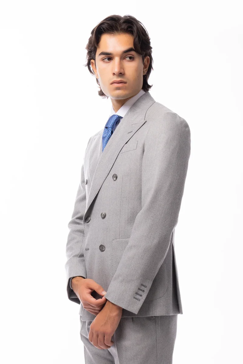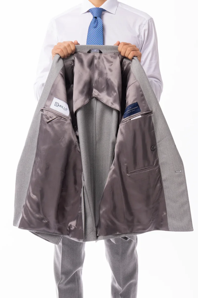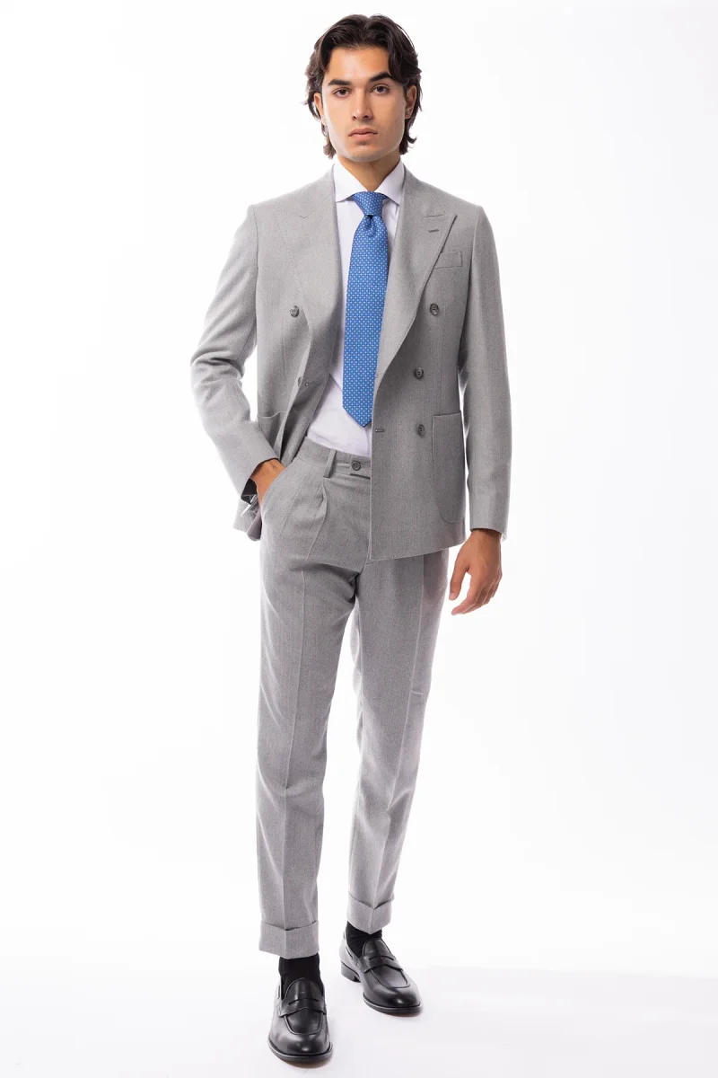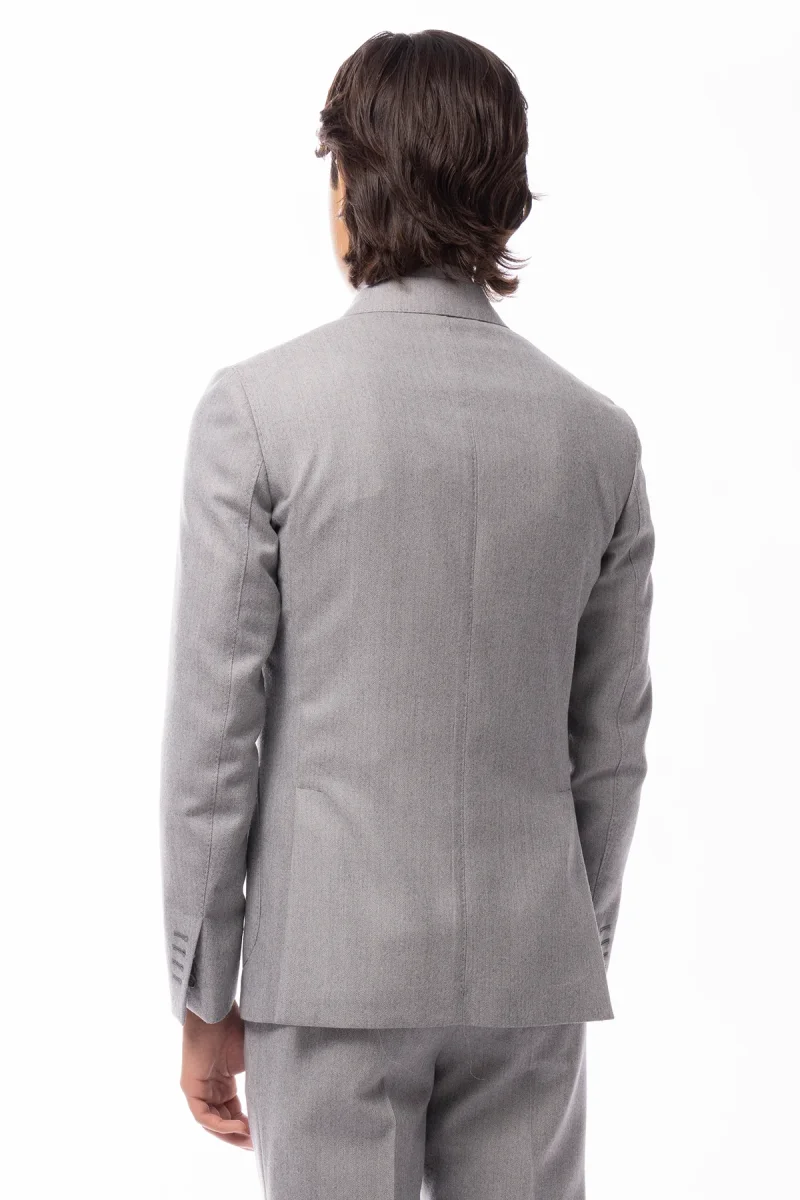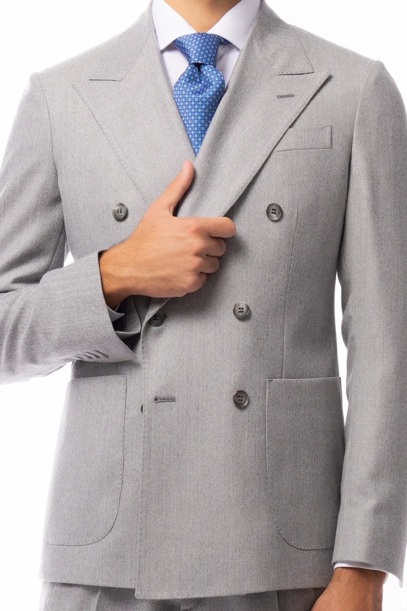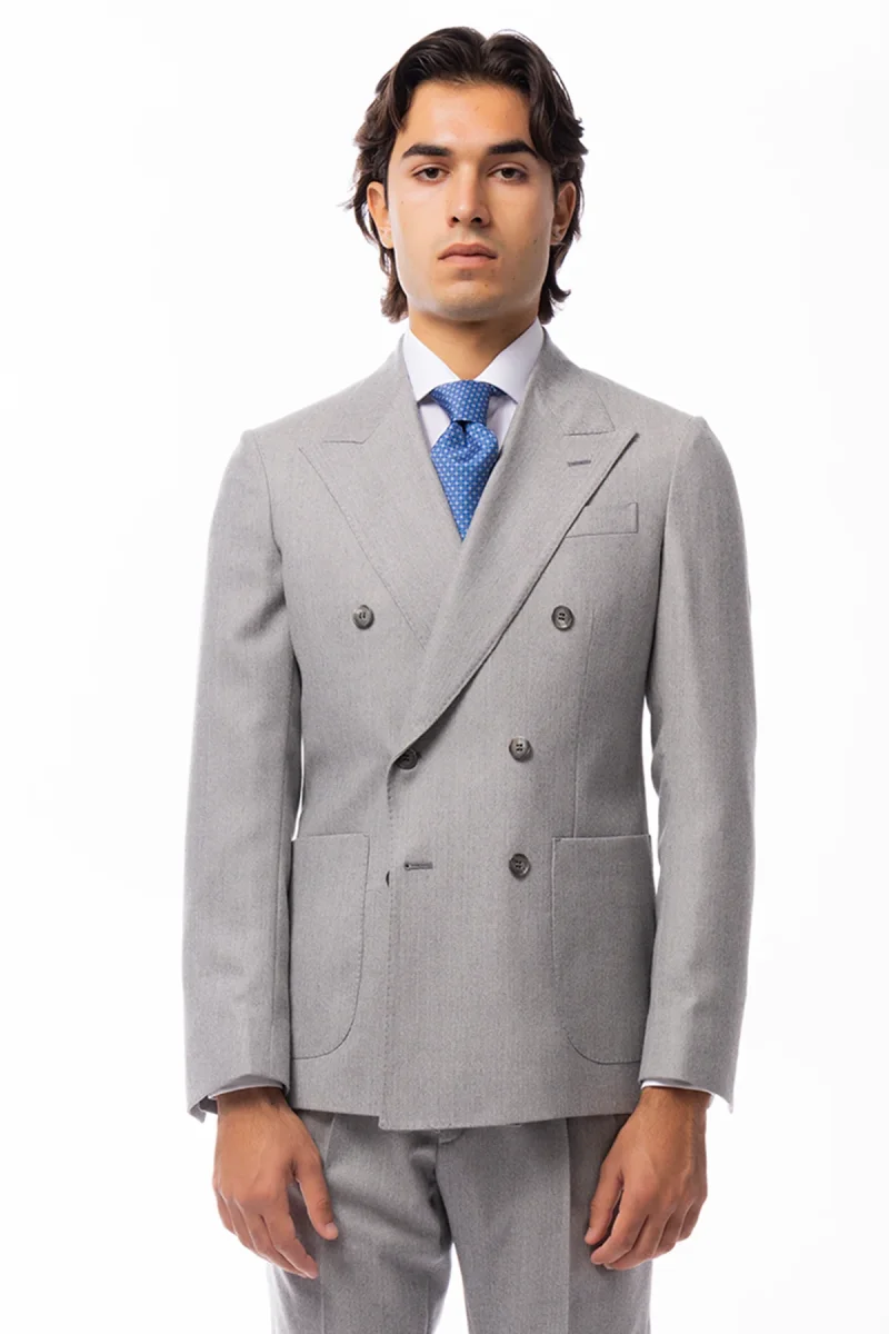 Giacca uomo doppiopetto grigio chiaro spigata in pura lana Holland & Sherry Rever a lancia e tasche a toppe