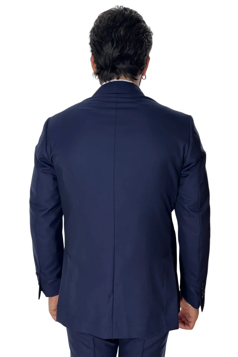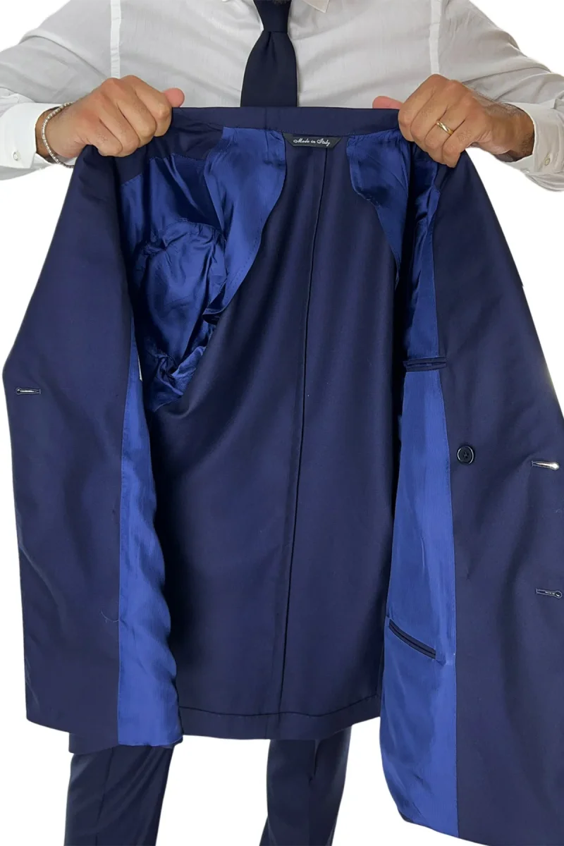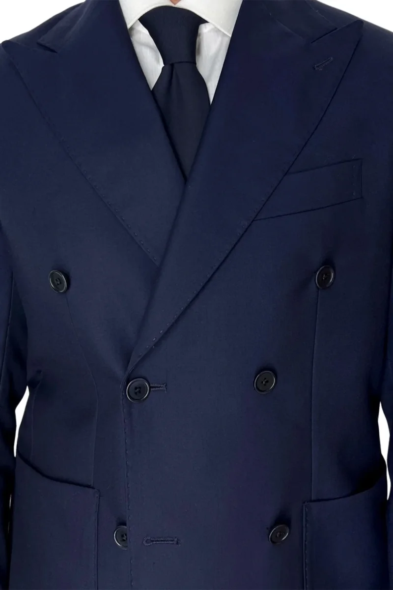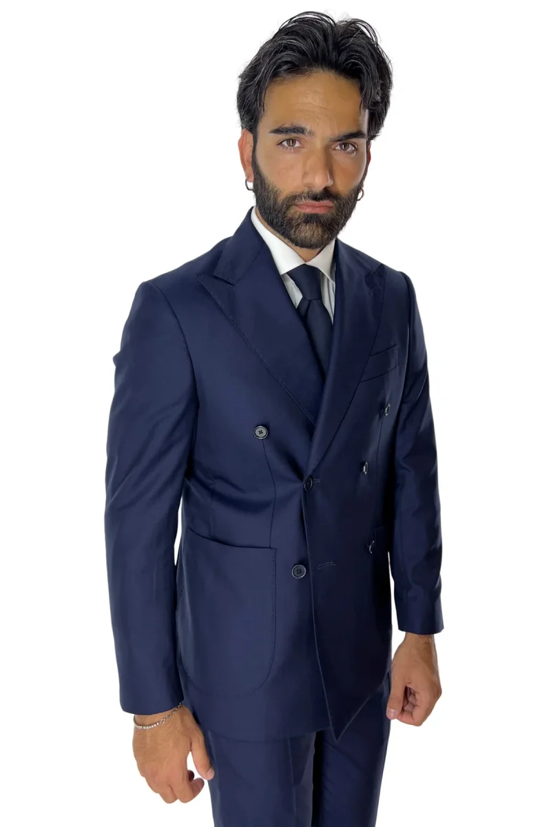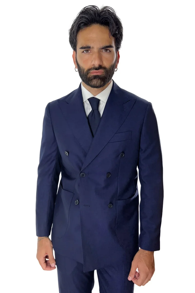 Giacca uomo doppiopetto navy blu in fresco lana super 140’s Rever a lancia tasche a toppe Holland & Sherry