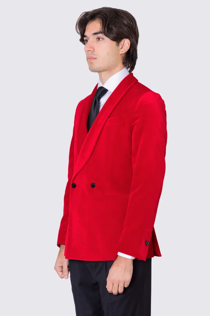 GIACCA DA UOMO DOPPIOPETTO ROSSA IN VELLUTO LISCIO