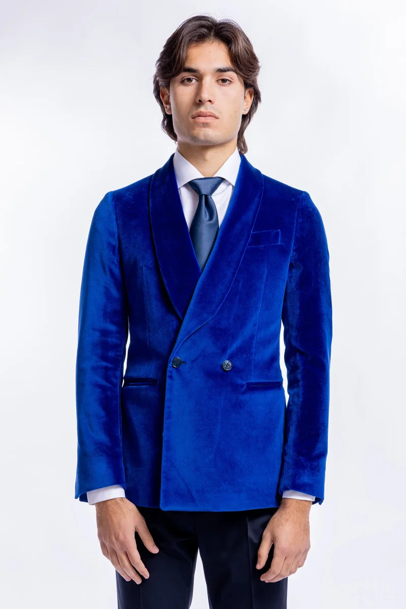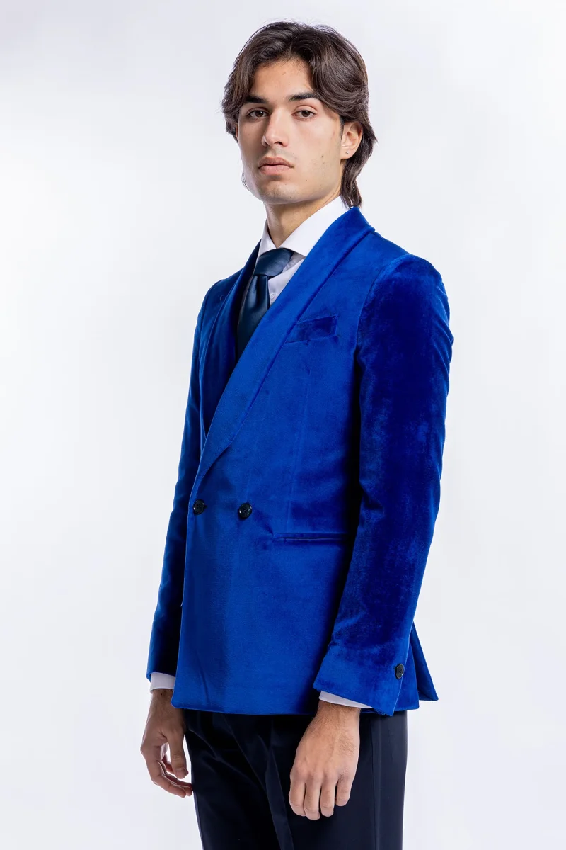 GIACCA DA UOMO DOPPIOPETTO ROYAL BLU IN VELLUTO LISCIO