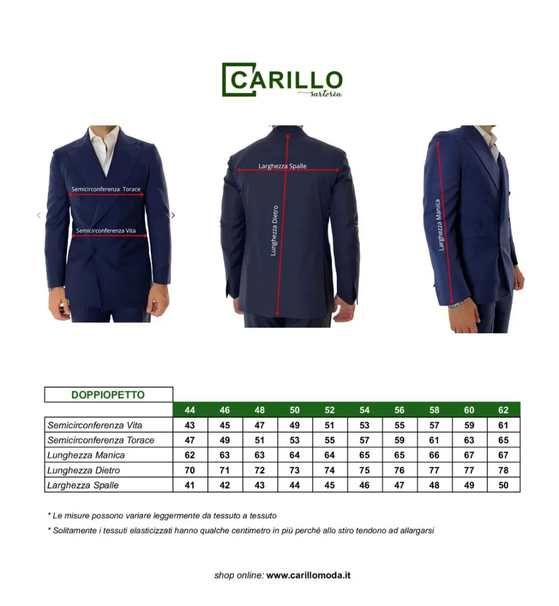 – Il Modello: veste una taglia 46 ha un altezza di 1,83 e pesa 75kg (puo indossare anche la 48 se vuole una vestibilità più comoda).