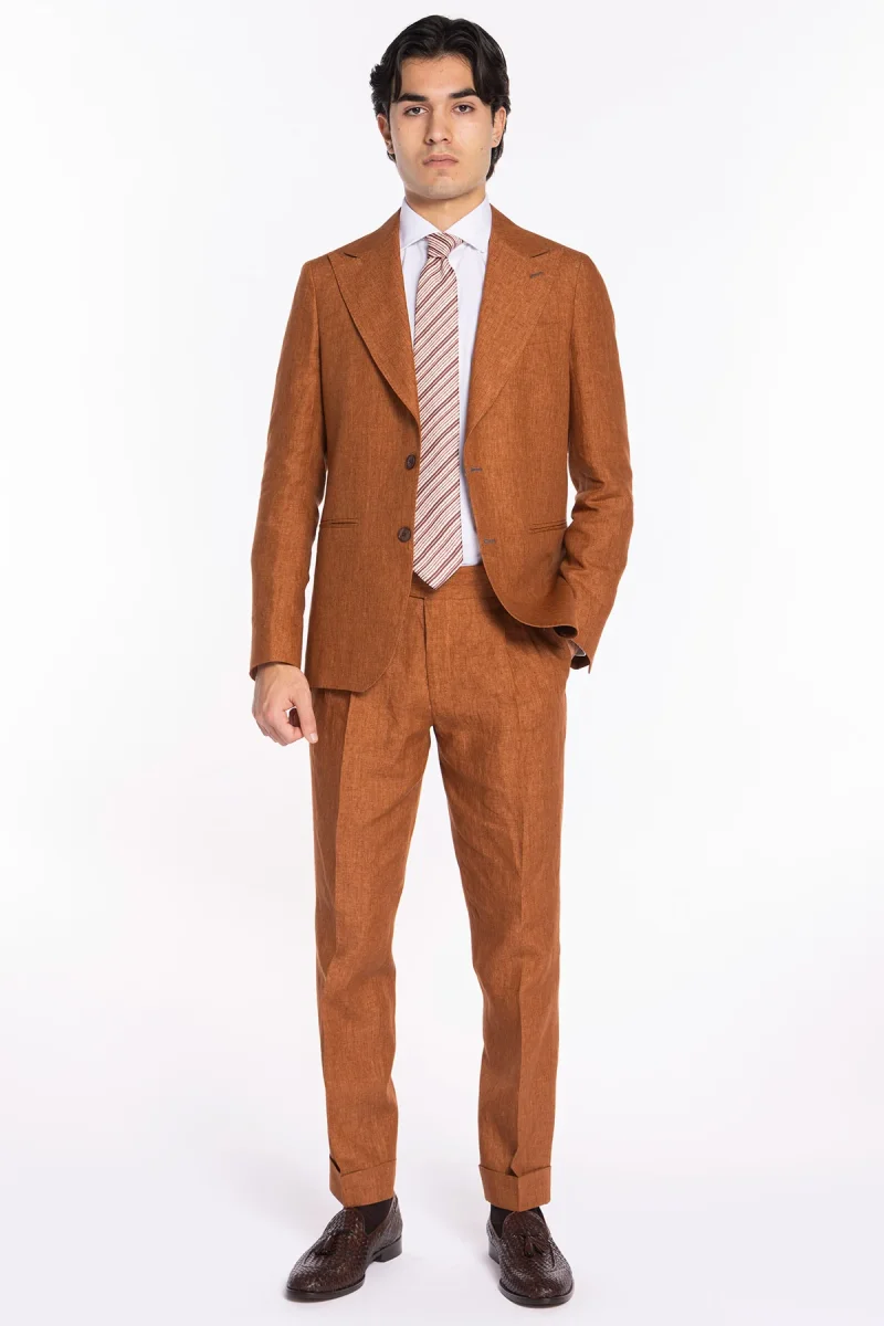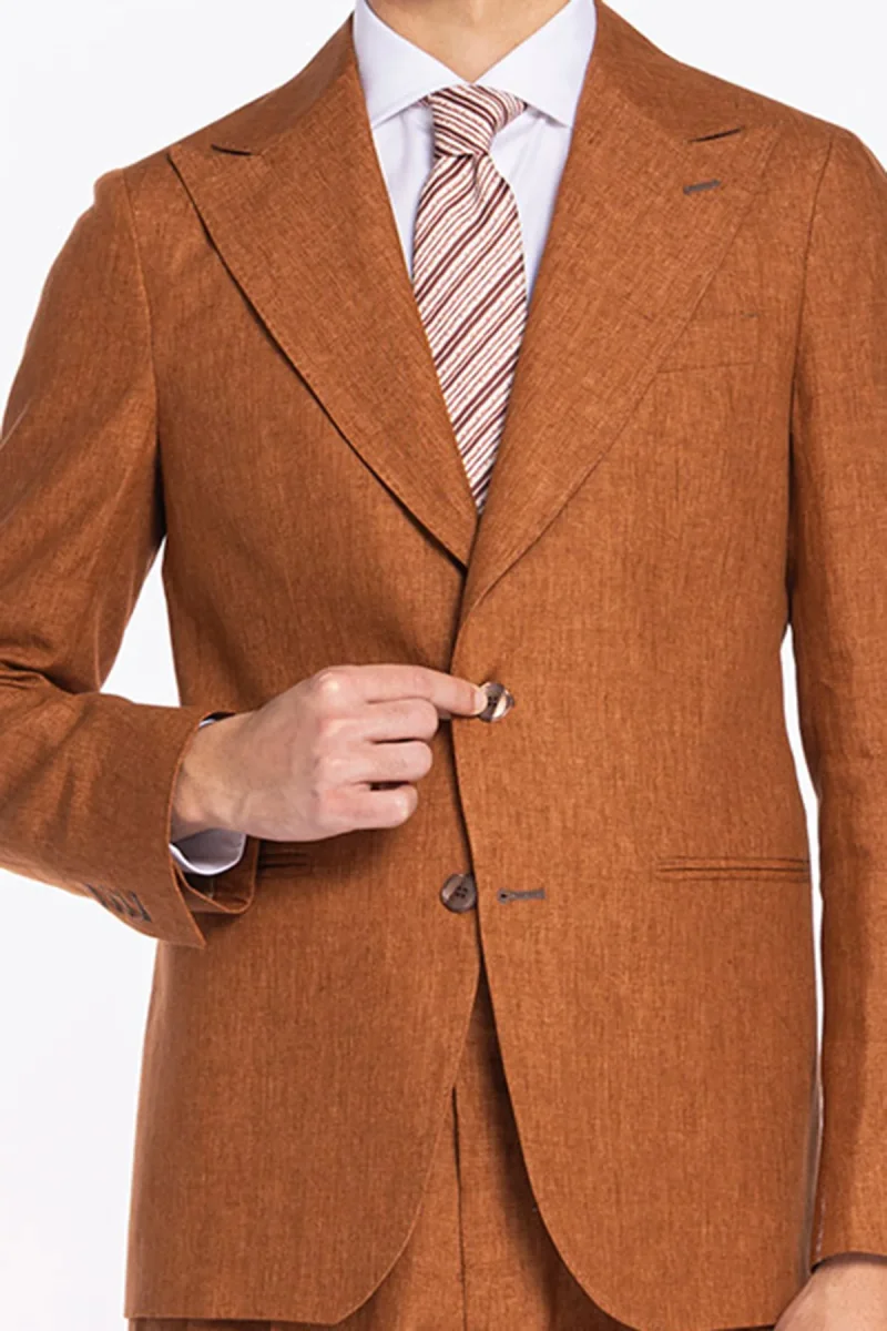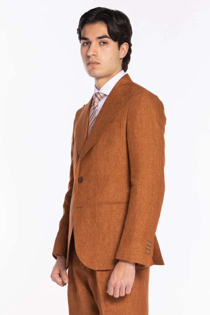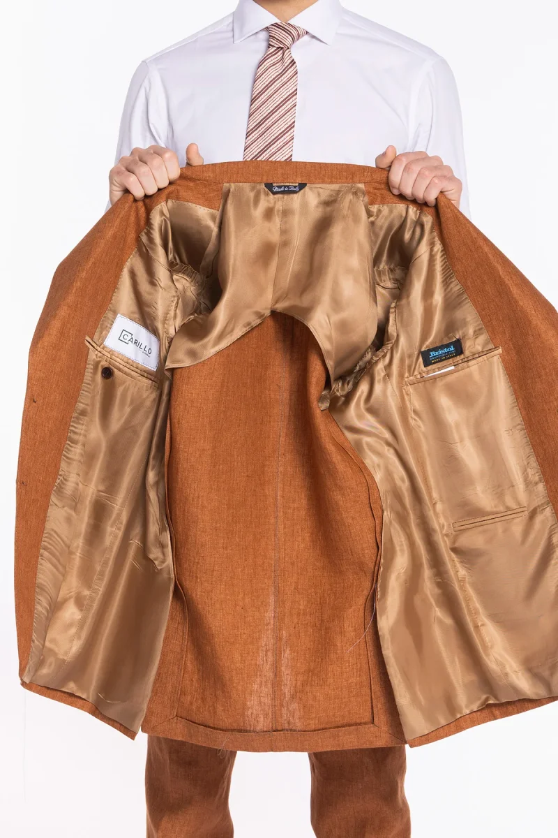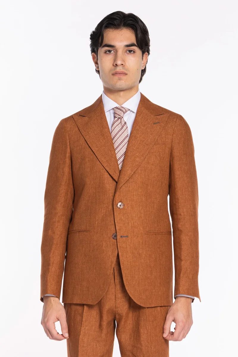 GIACCA UOMO MONOPETTO ARANCIO 100% LINO BRISTOL TESSUTI NAPOLI REVER A LANCIA