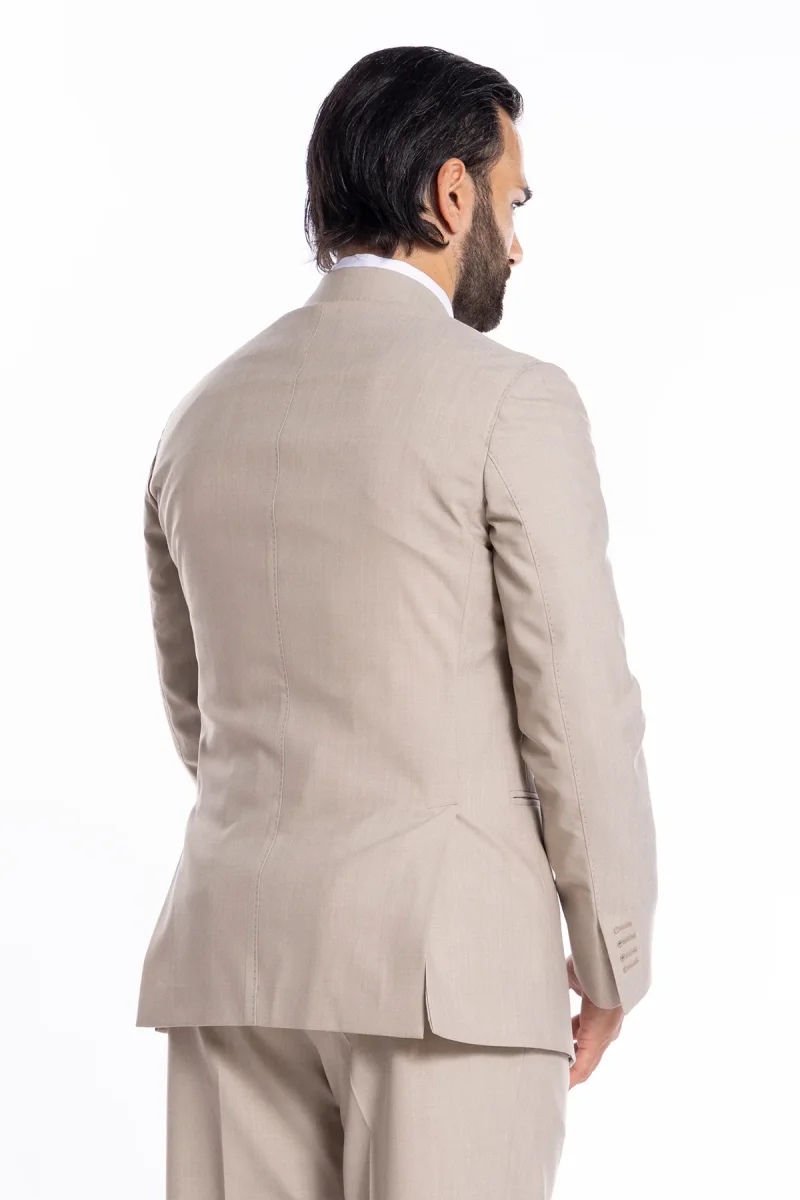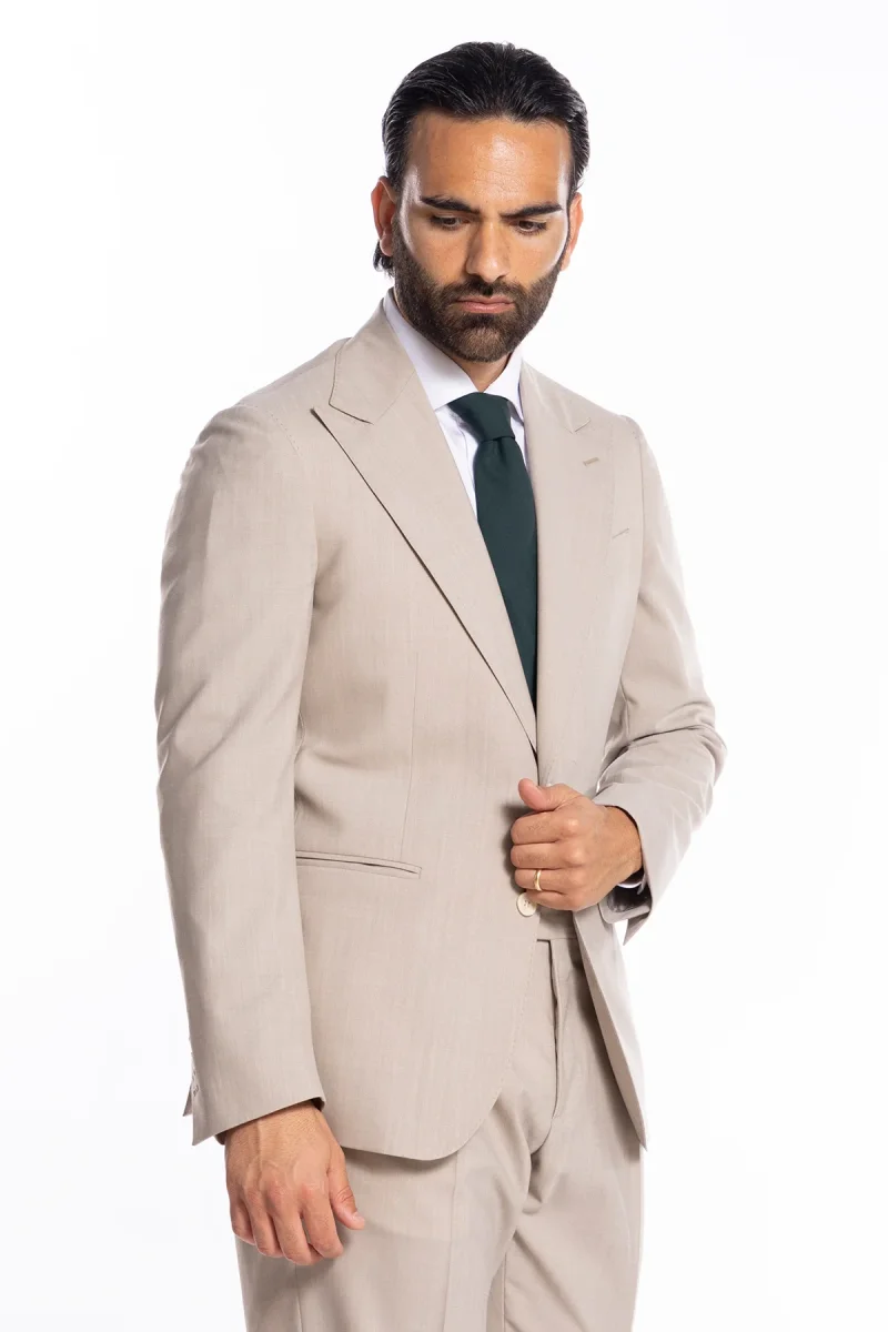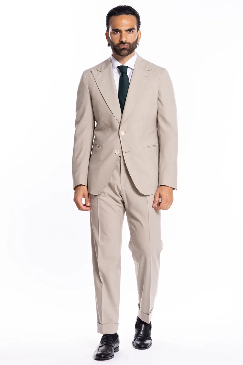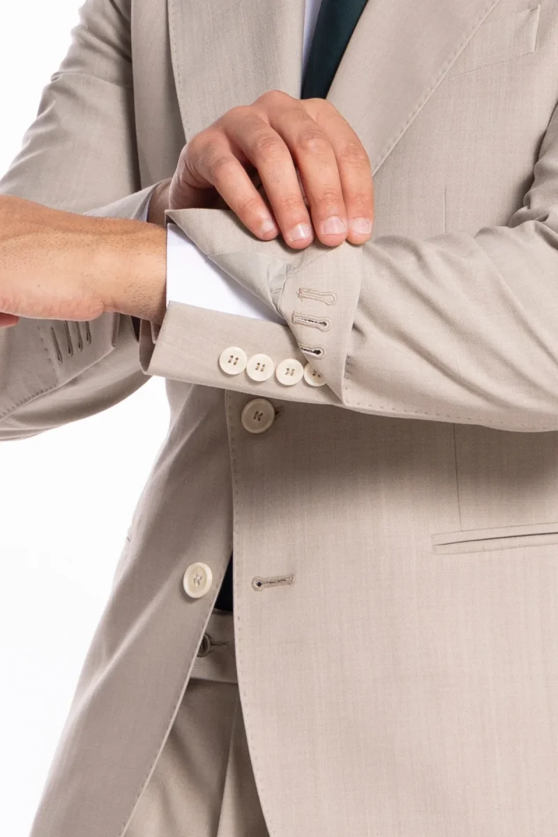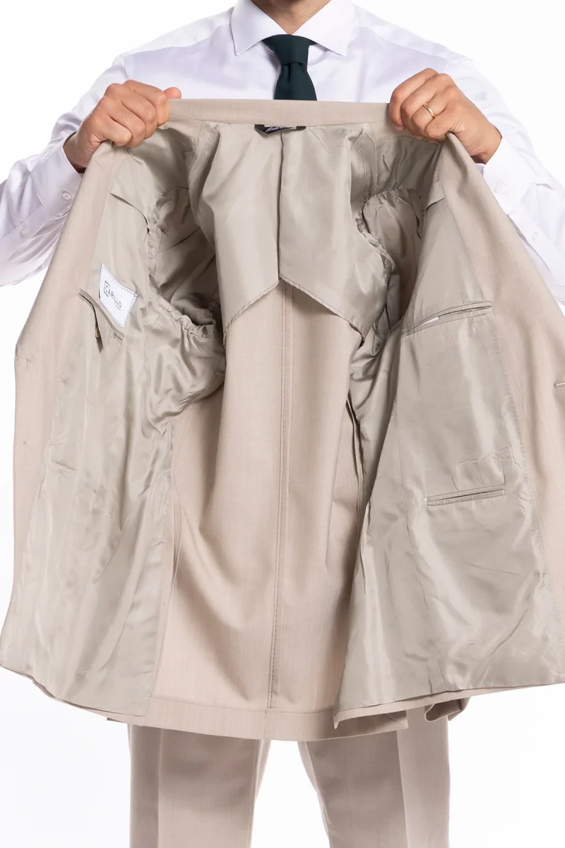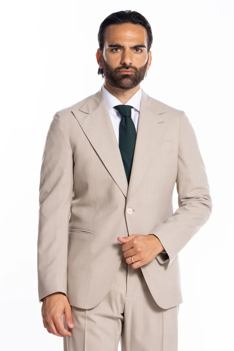GIACCA UOMO MONOPETTO BEIGE FRESCO LANA MISTA REVER A LANCIA 13CM TASCHE A TOPPE