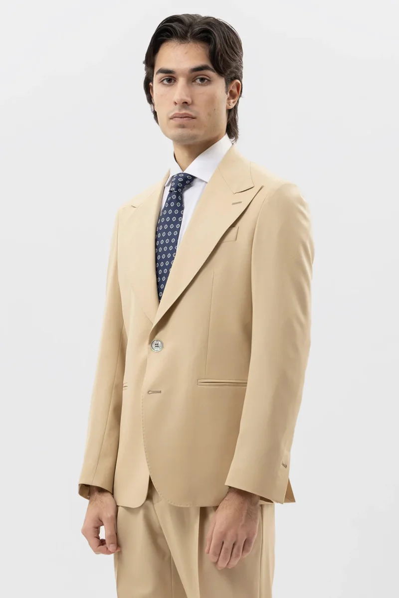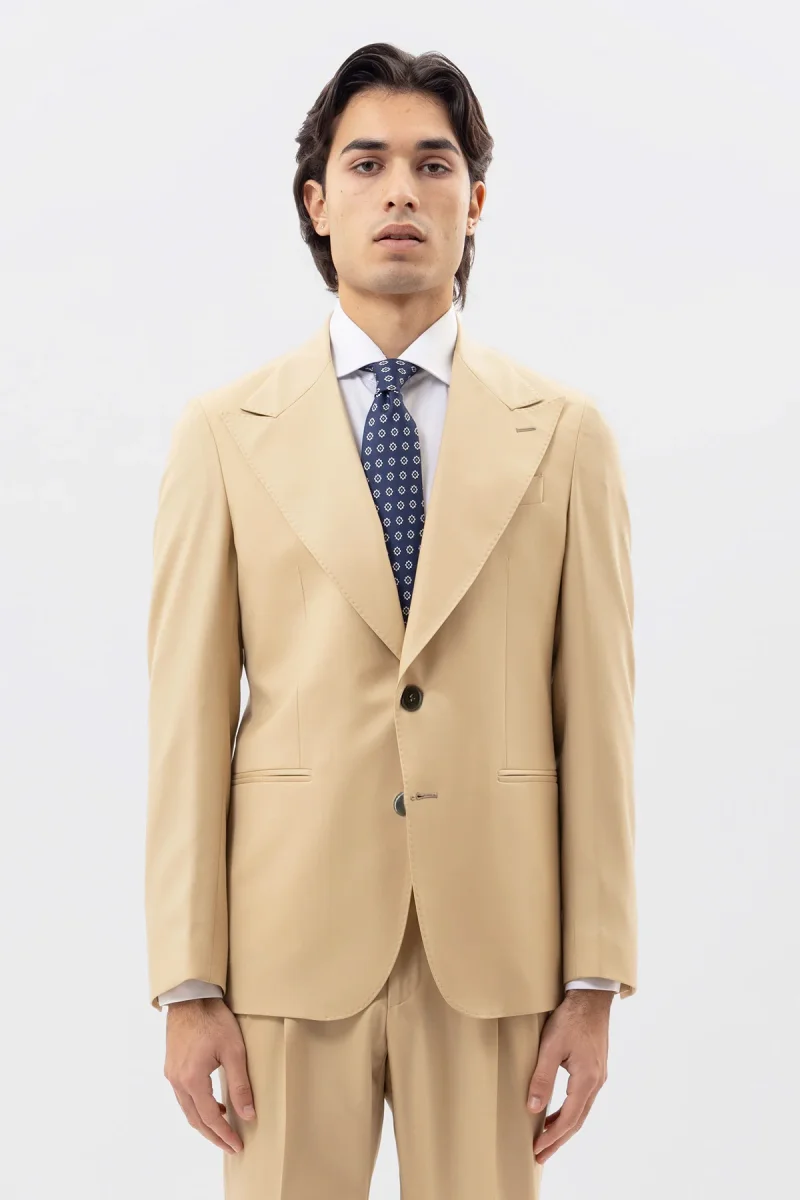 GIACCA UOMO MONOPETTO BEIGE FRESCO LANA SUPER 140’S