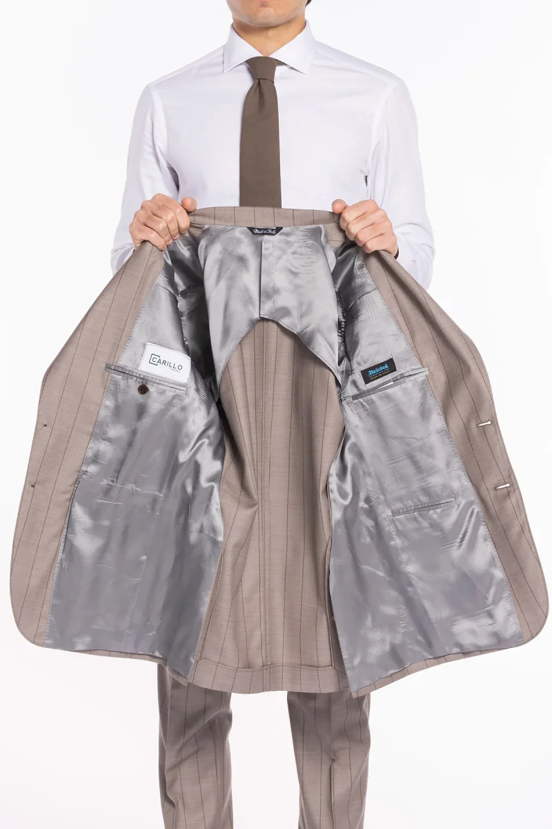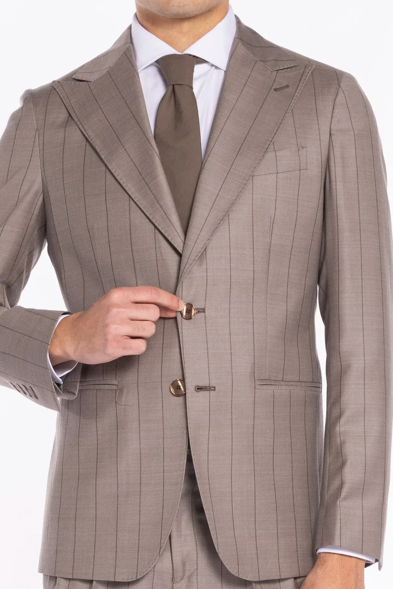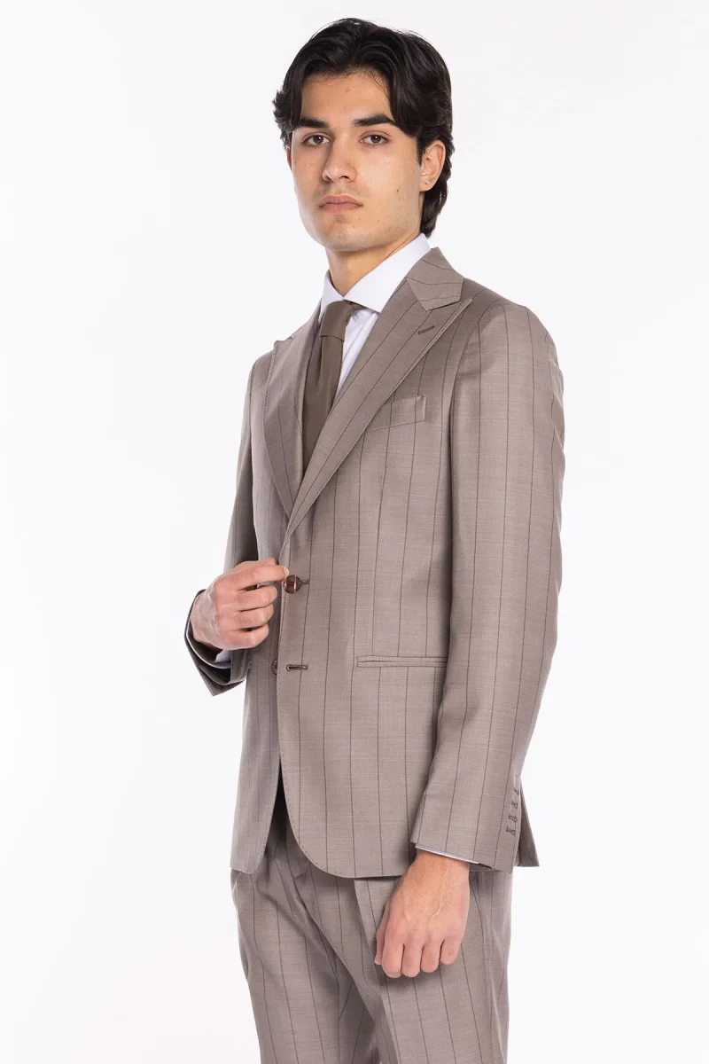 GIACCA UOMO MONOPETTO BEIGE GESSATA MARRONE FRESCO LANA SUPER 150’S BRISTOL TESSUTI NAPOLI REVER A LANCIA