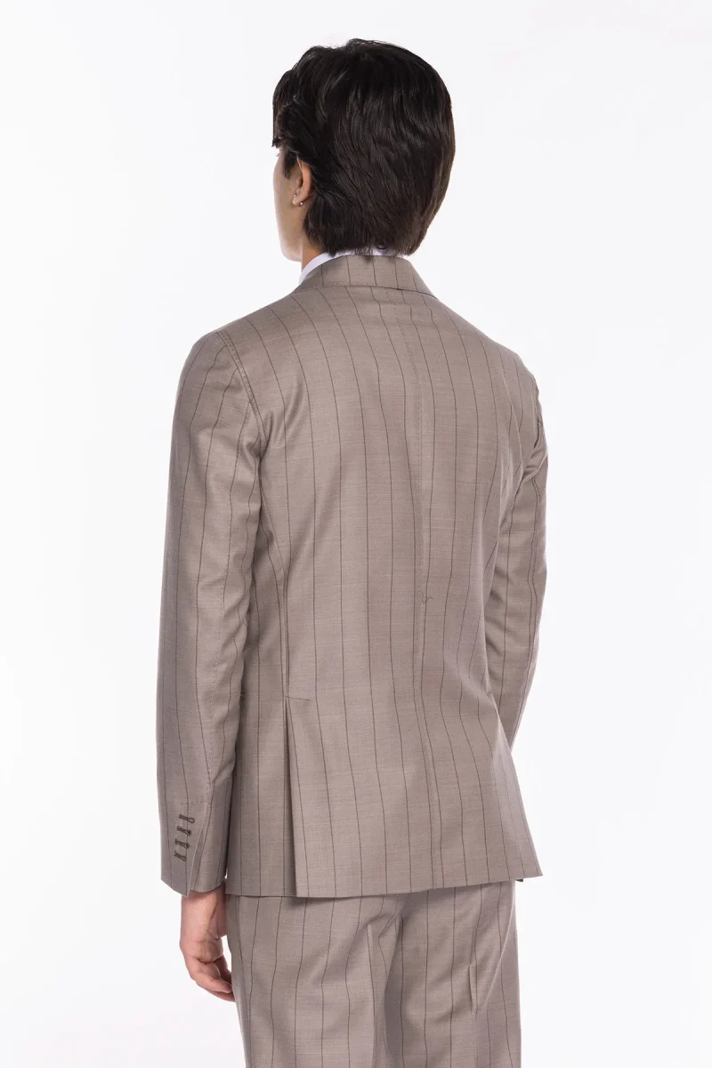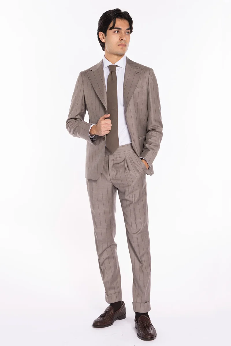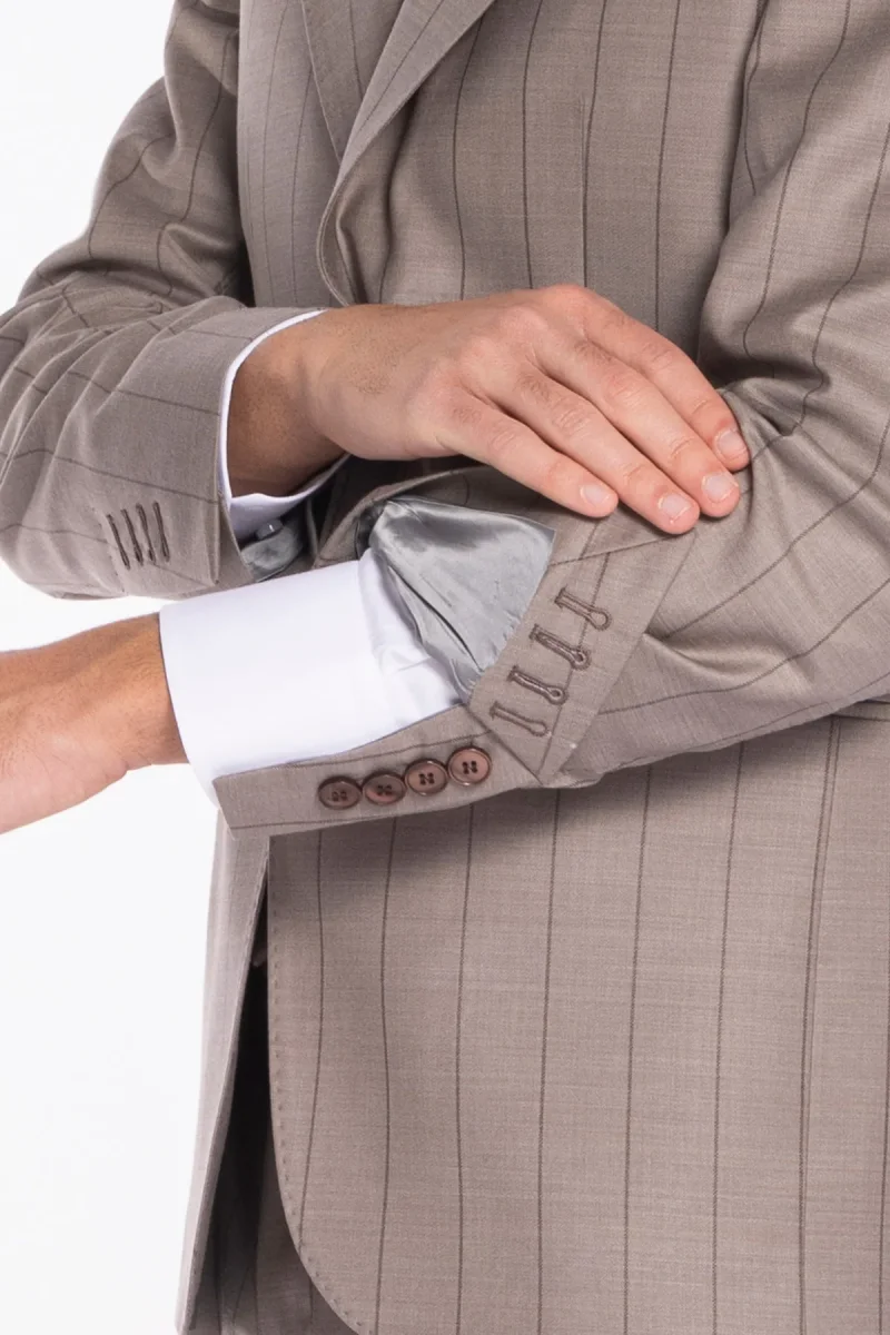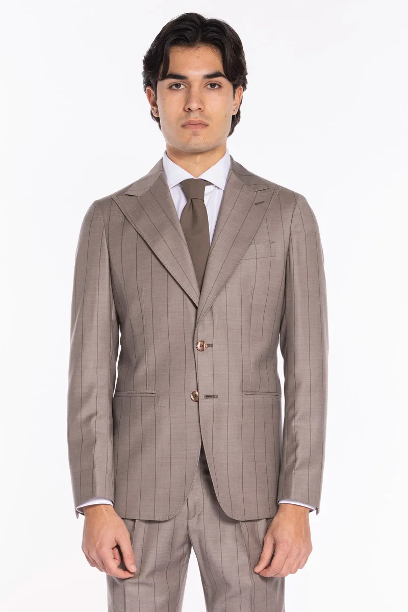 GIACCA UOMO MONOPETTO BEIGE GESSATA MARRONE FRESCO LANA SUPER 150’S BRISTOL TESSUTI NAPOLI REVER A LANCIA