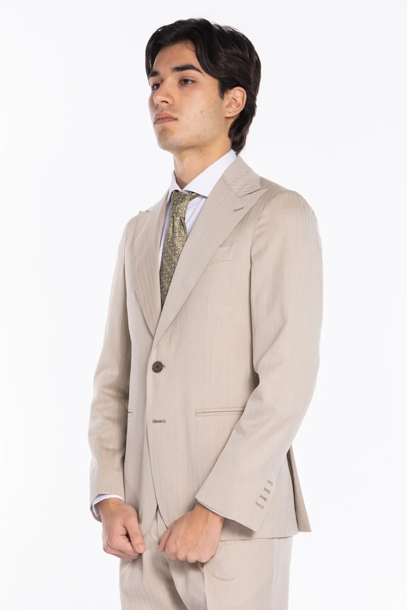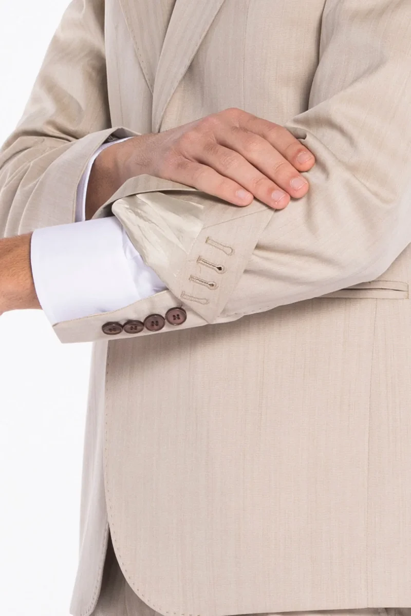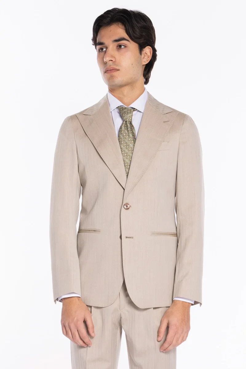 Giacca uomo monopetto Beige solaro fresco lana Bristol Tessuti Napoli rever a lancia