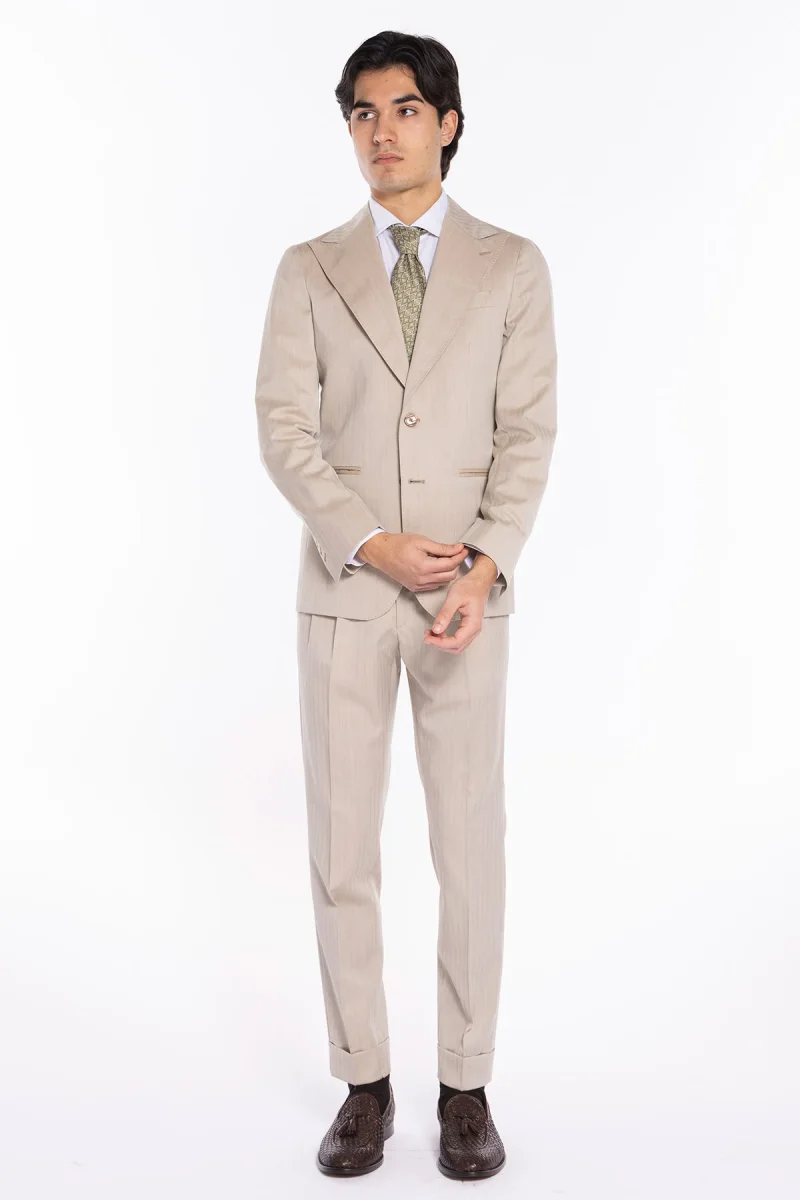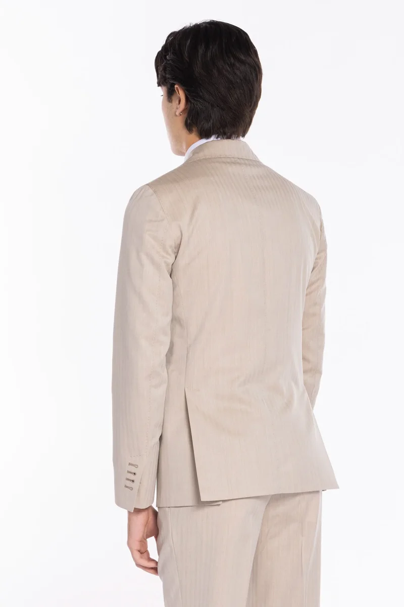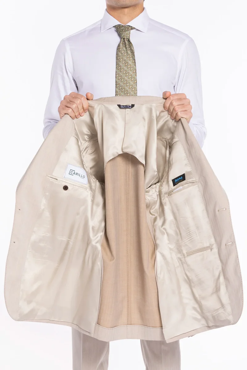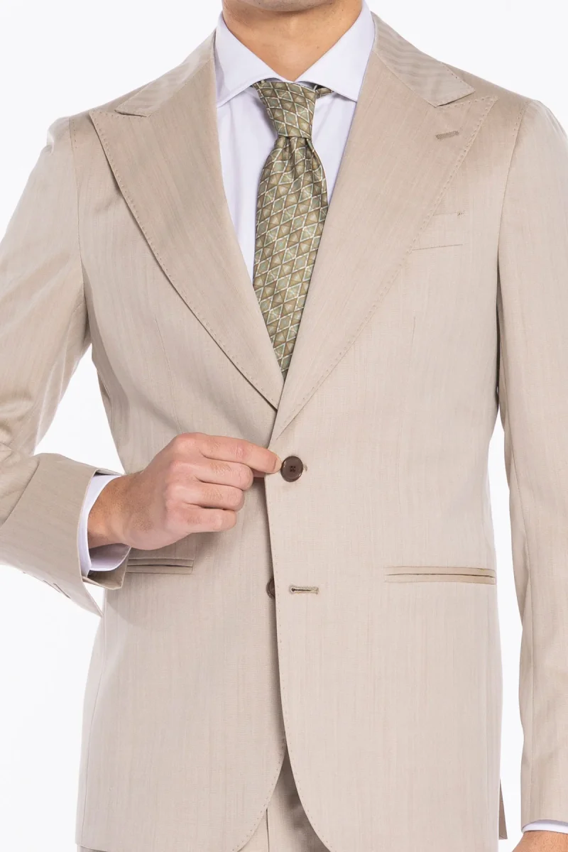 Giacca uomo monopetto Beige solaro fresco lana Bristol Tessuti Napoli rever a lancia