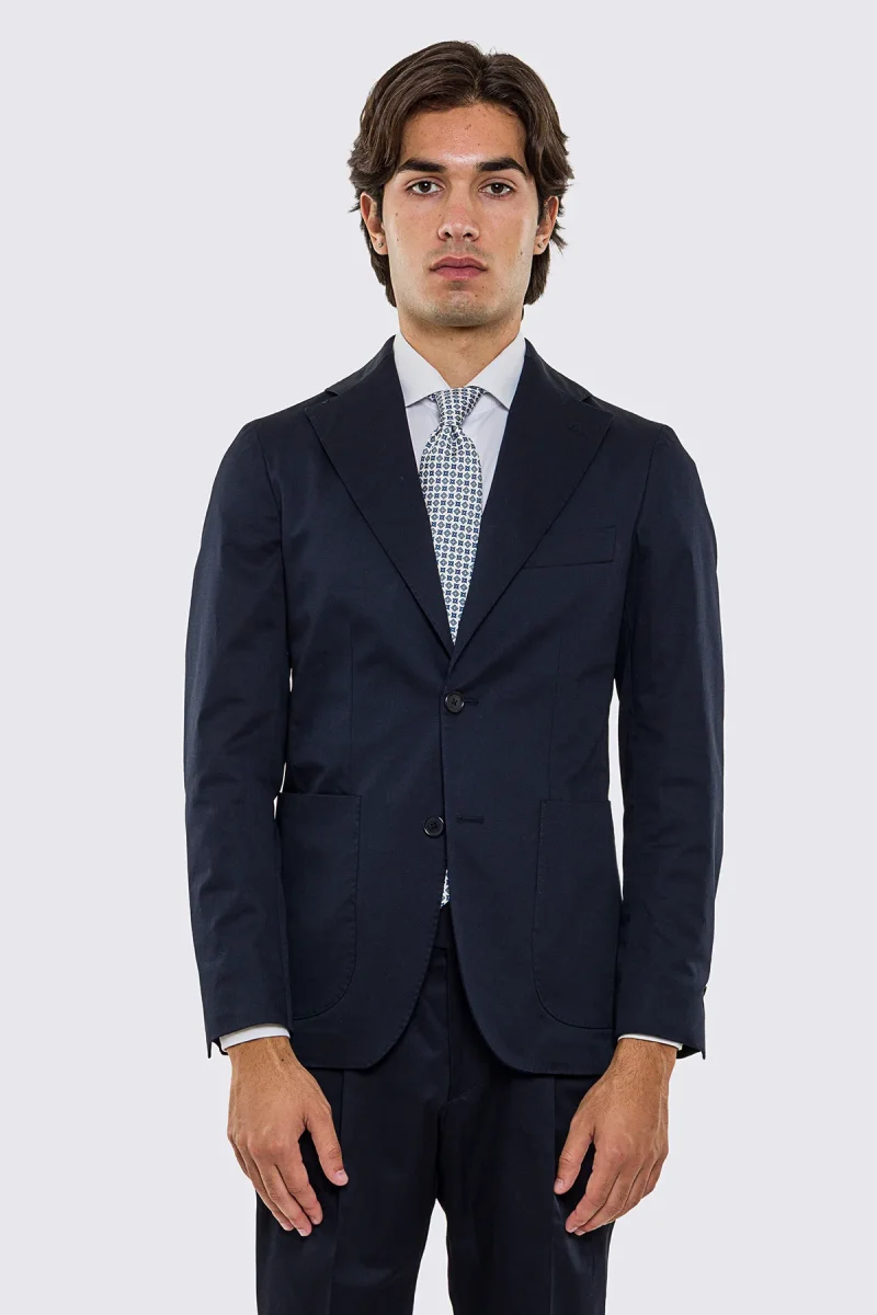Giacca Uomo Monopetto Blu in Cotone Leggermente Elastico Sfoderata