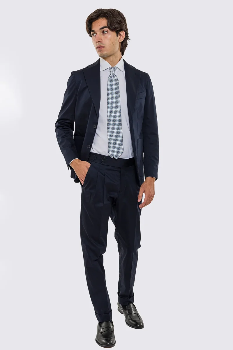 - Design: monopetto a 2 bottoni con rever a lancia da 11 cm.